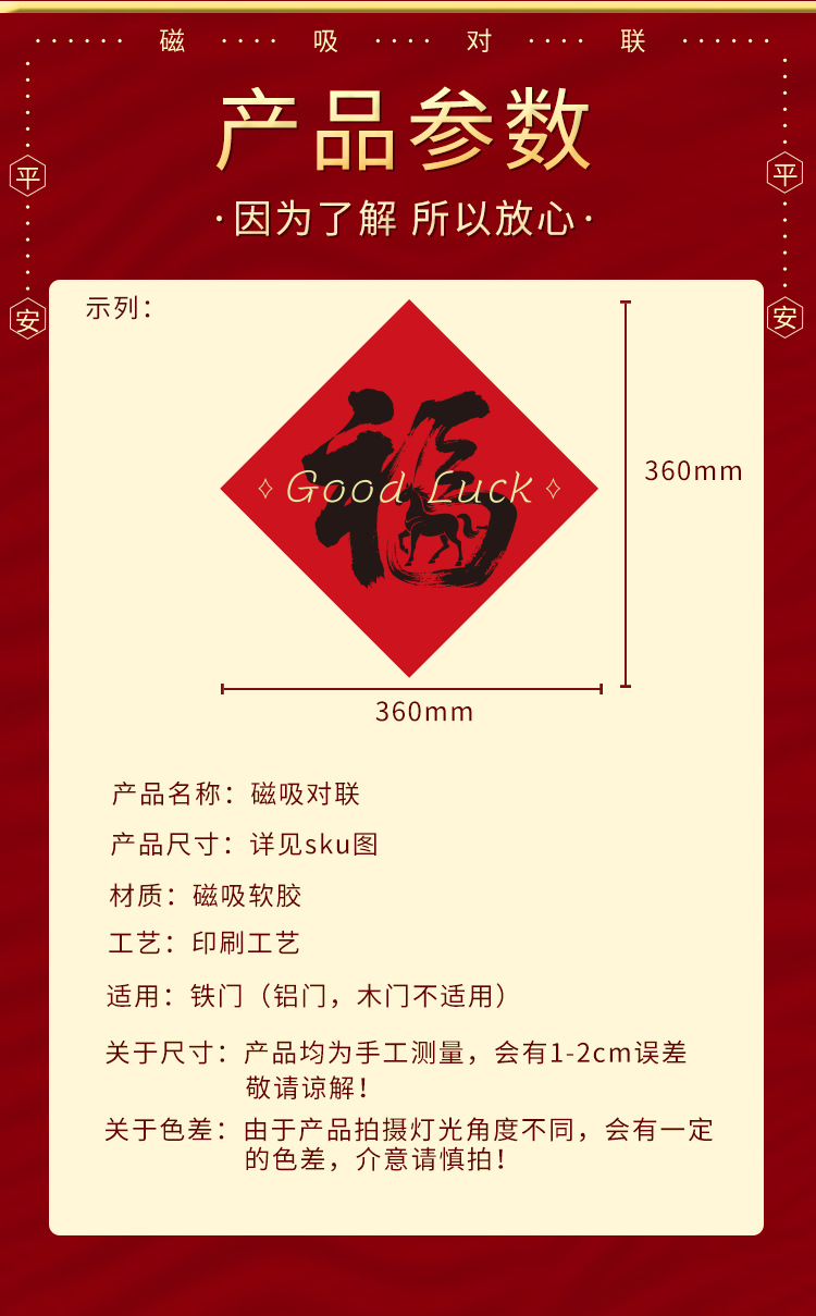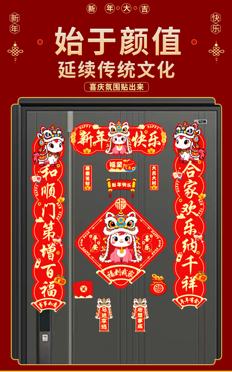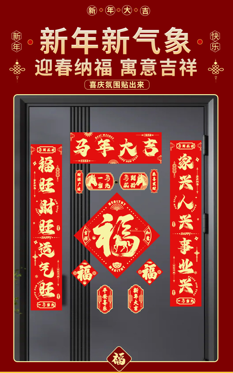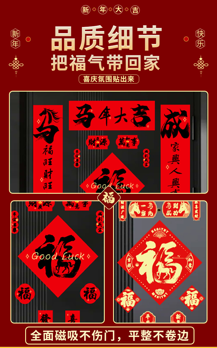 2026植绒磁吸对联春联批发新年门贴马年福字新款贴新年装饰过年