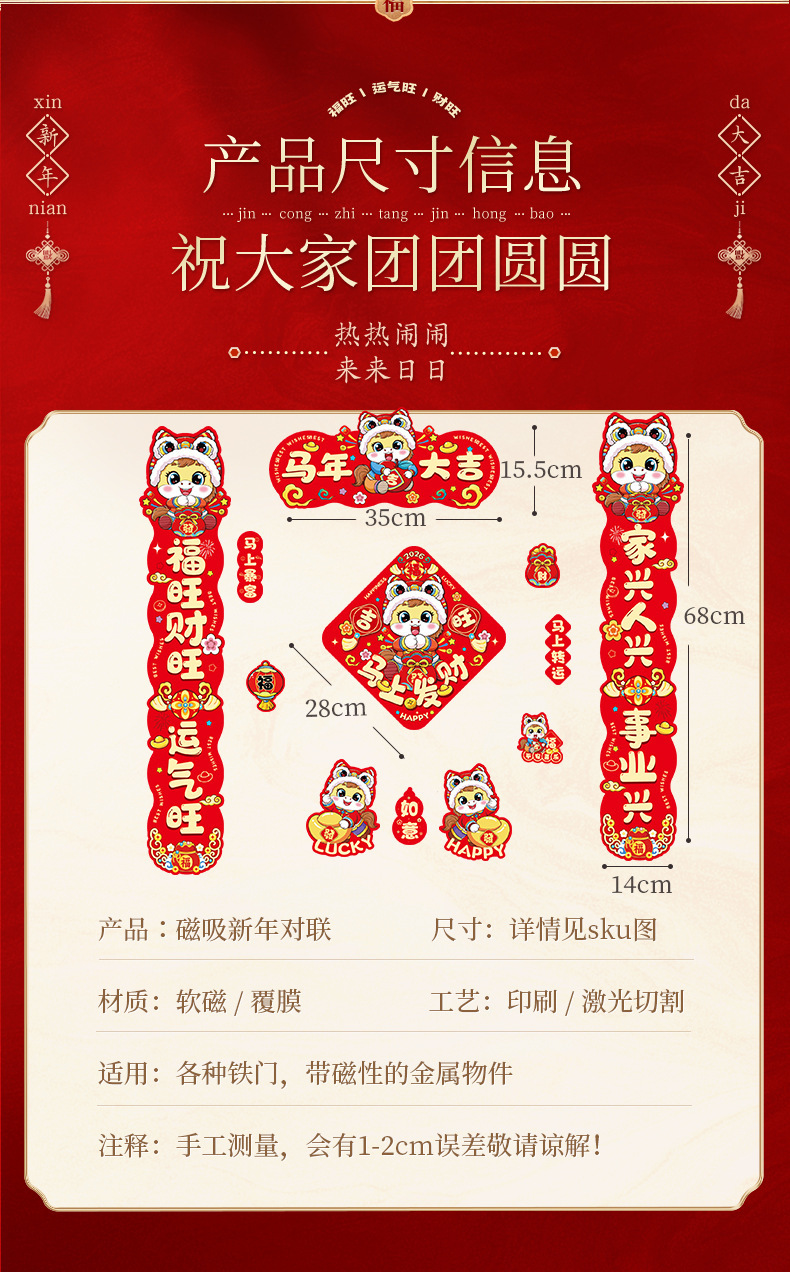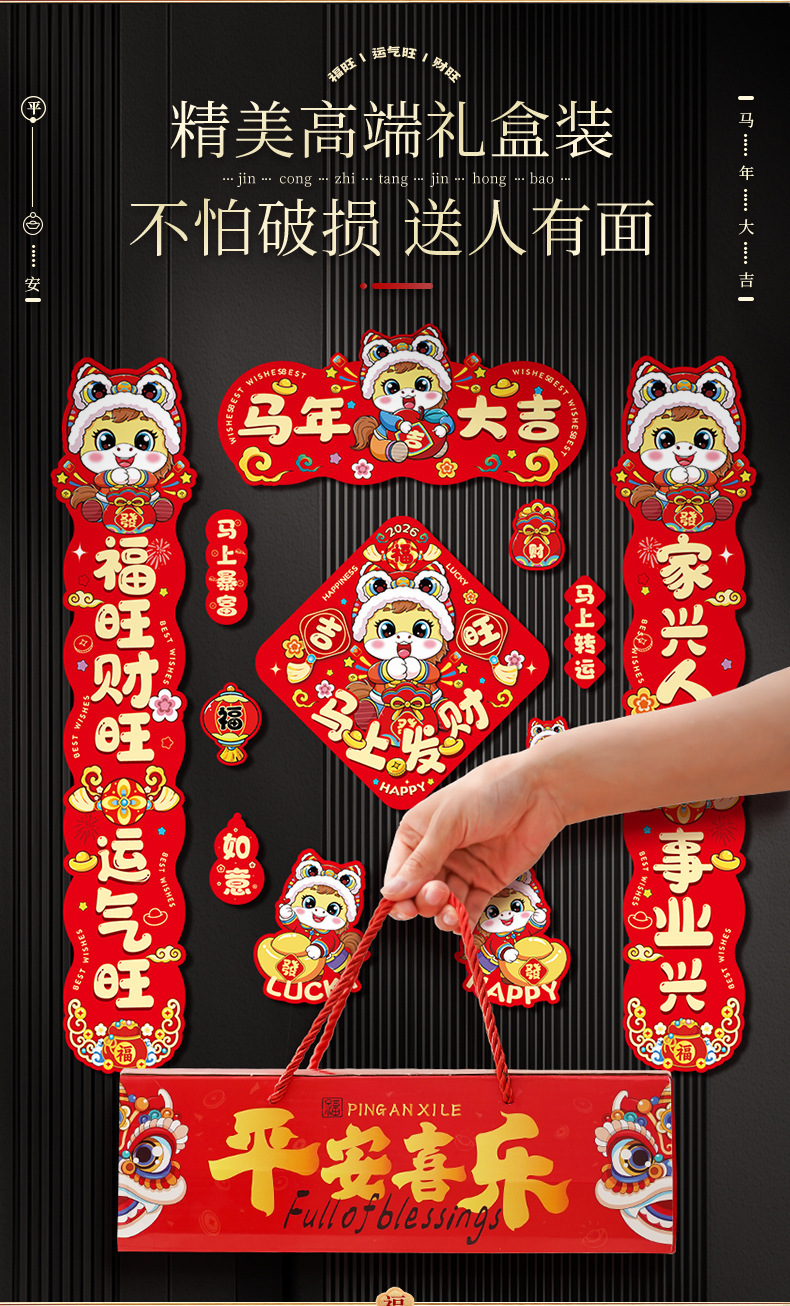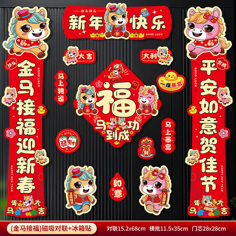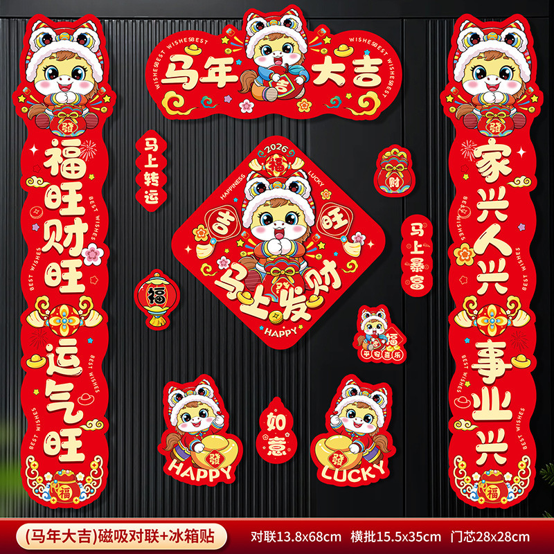 2026新款马年全磁吸对联入户大门贴福字春节过年新年装饰礼盒春联