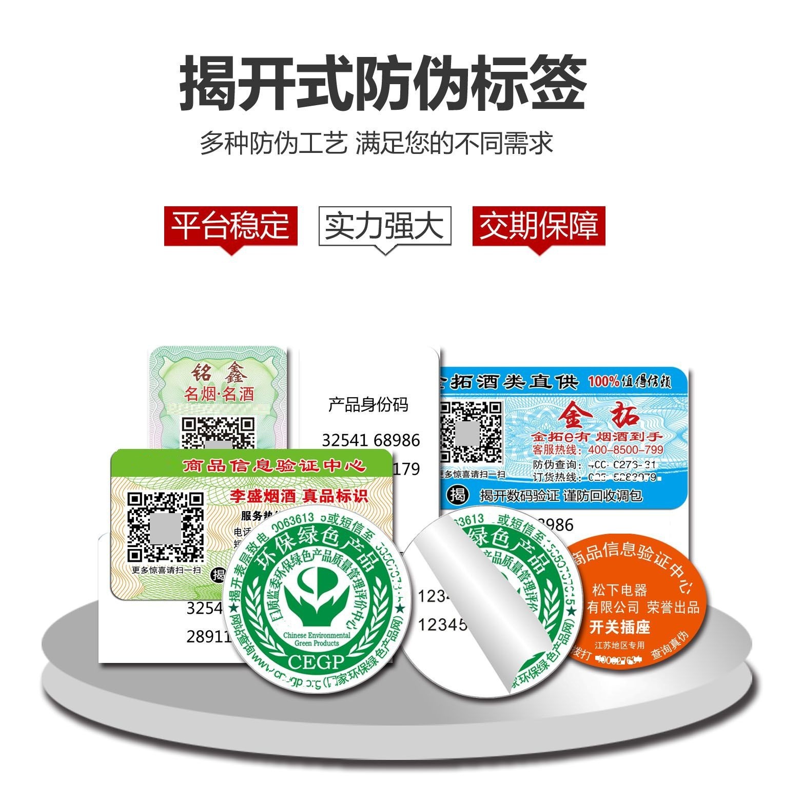 专业自制防伪标签定制厂家正品标识一溯源标签防窜货系统定做激光