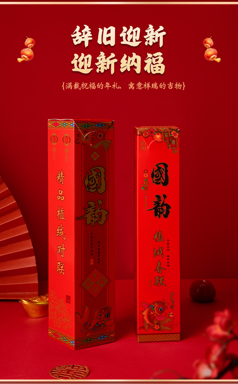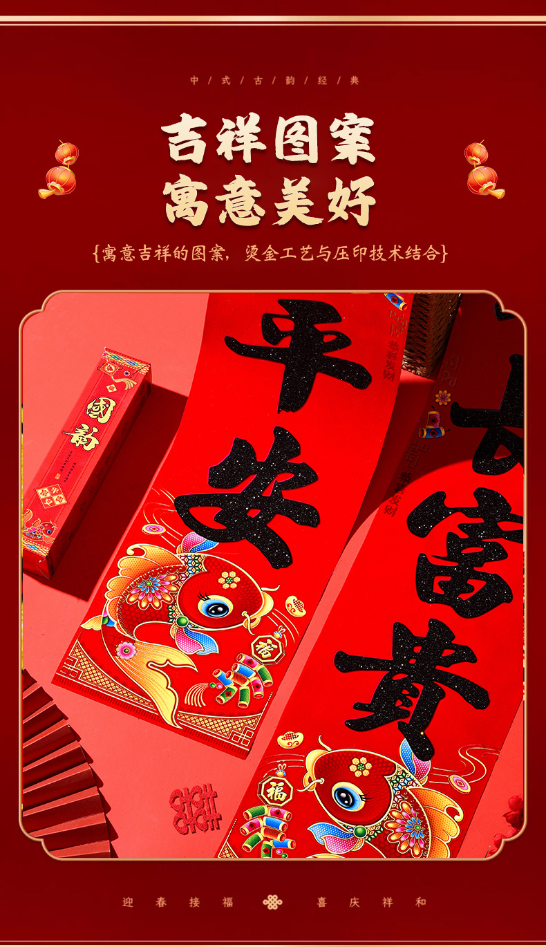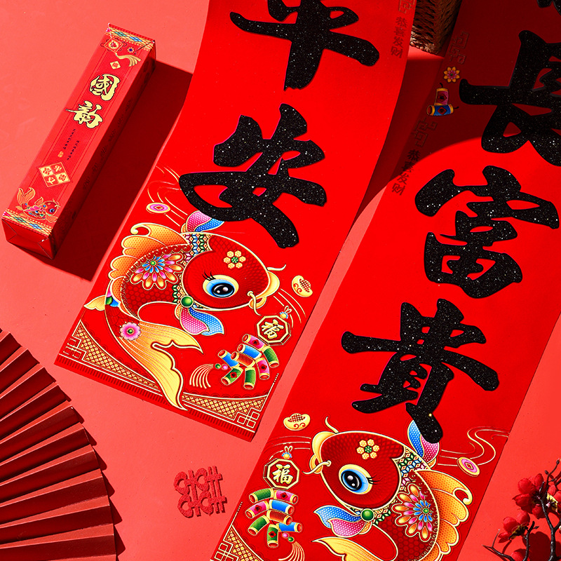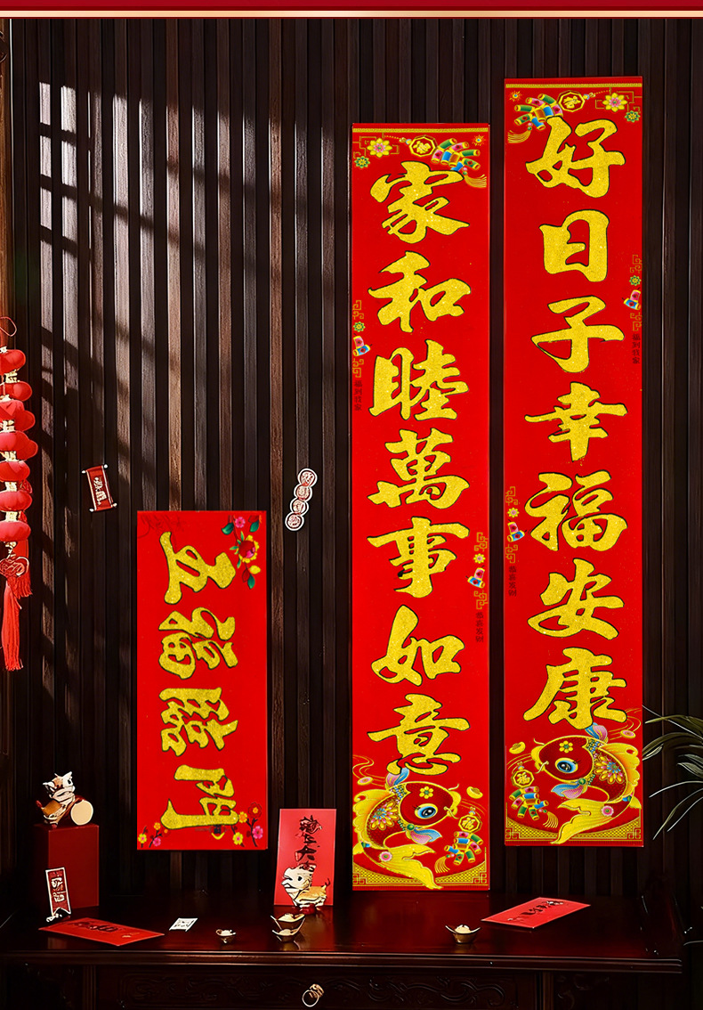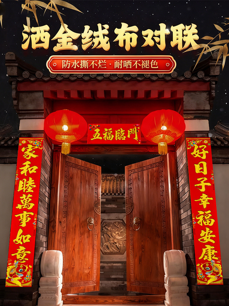植绒带背胶对联2026马年春联春联新年大门门贴春节装饰过年用品