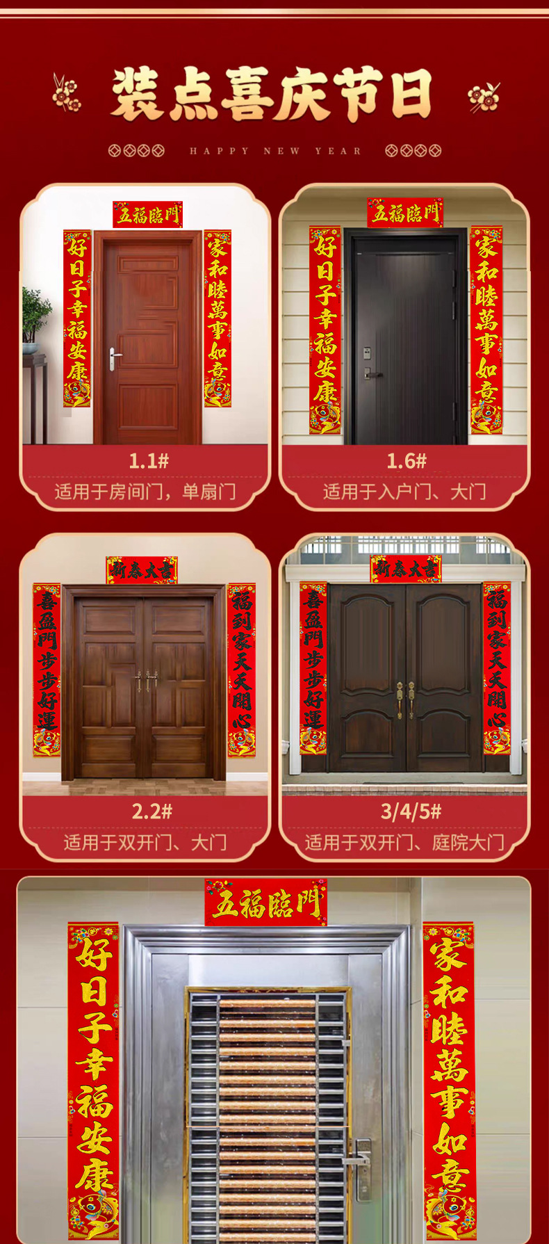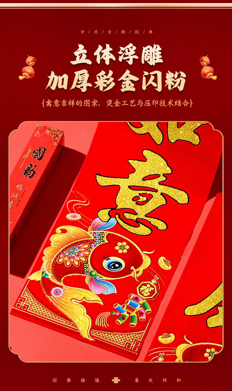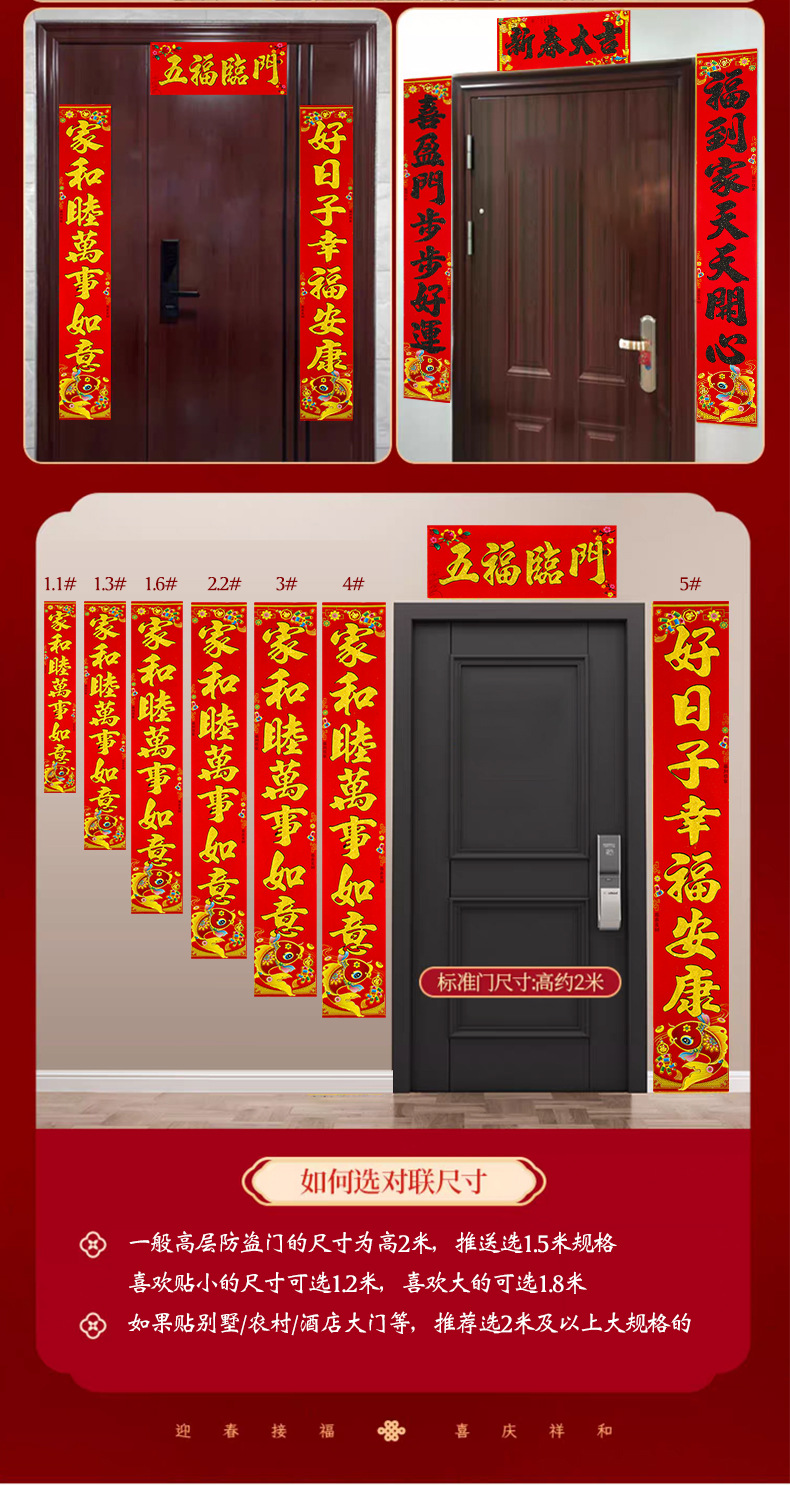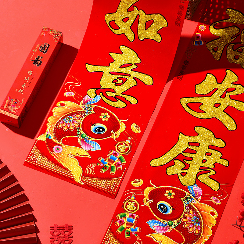 植绒带背胶对联2026马年春联春联新年大门门贴春节装饰过年用品