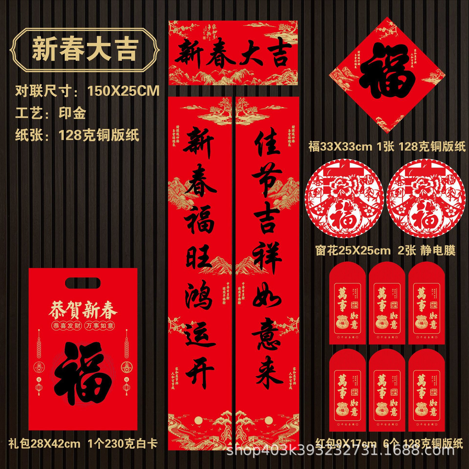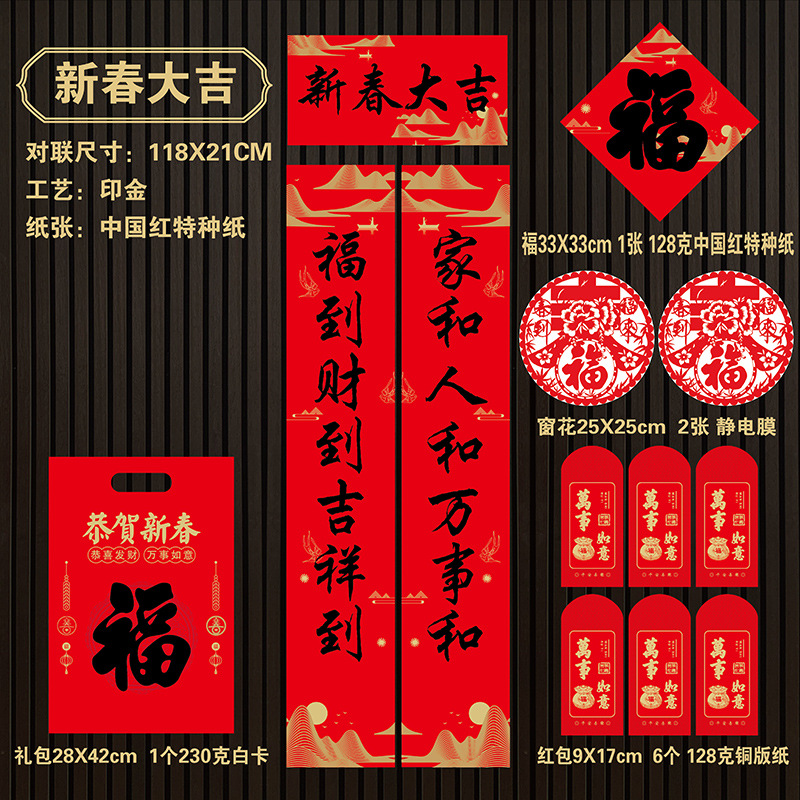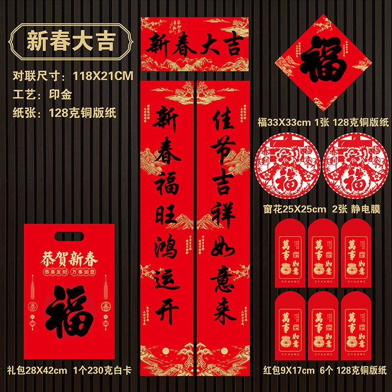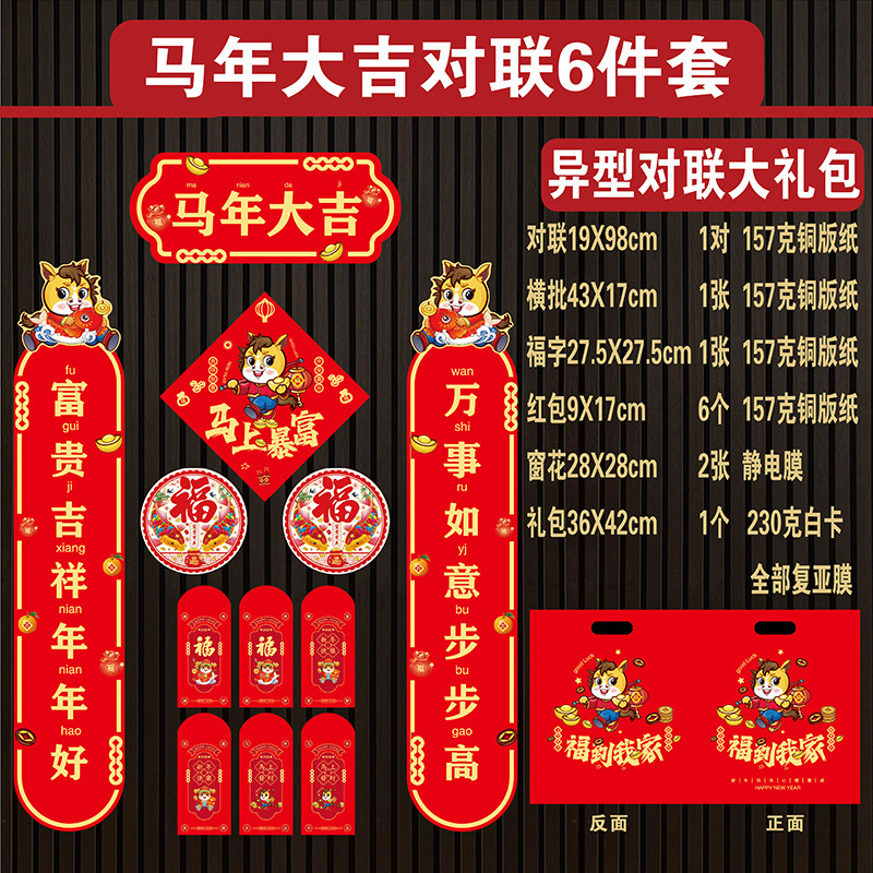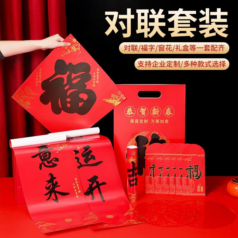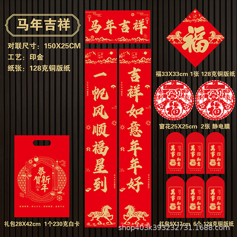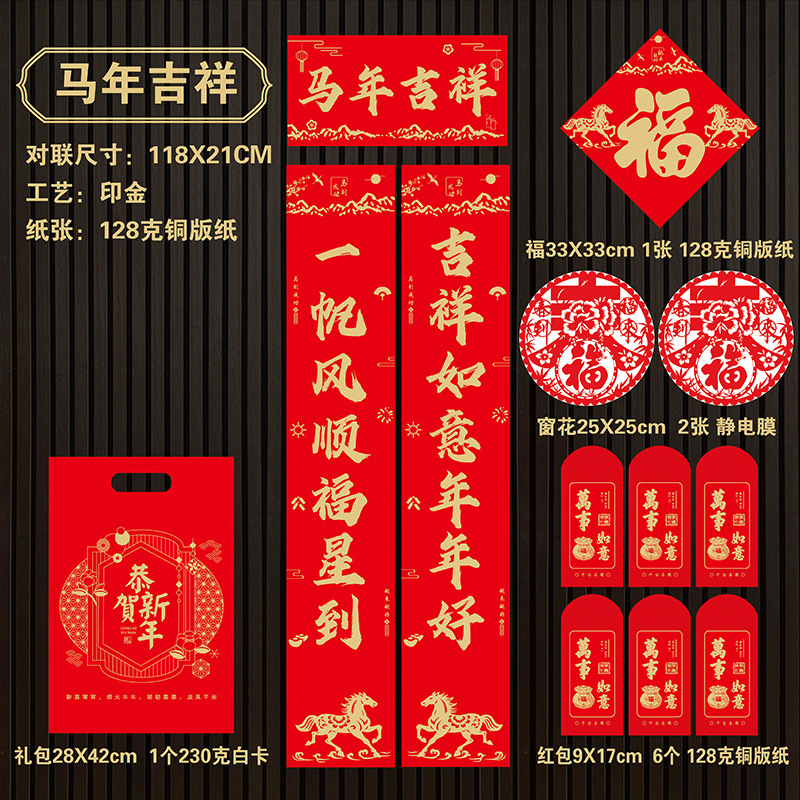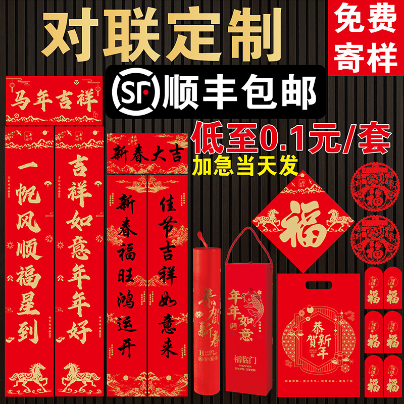 2026马年广告对联定制印logo春联大礼包新年春节福字植绒定做烫金