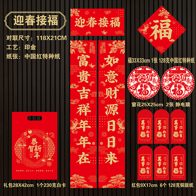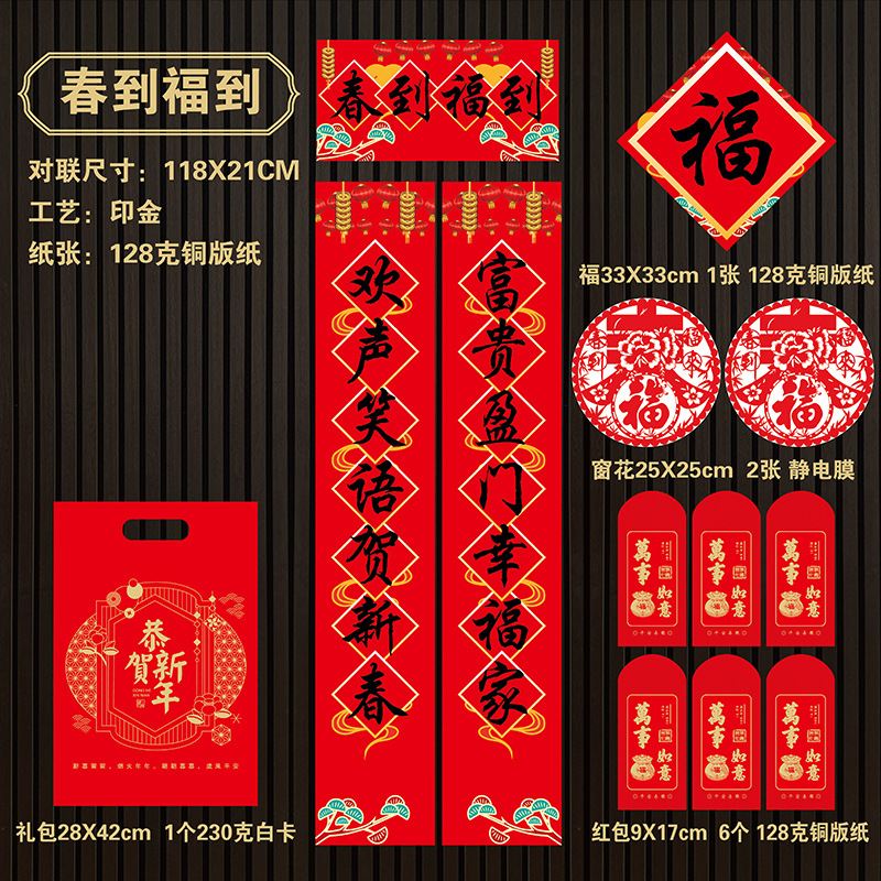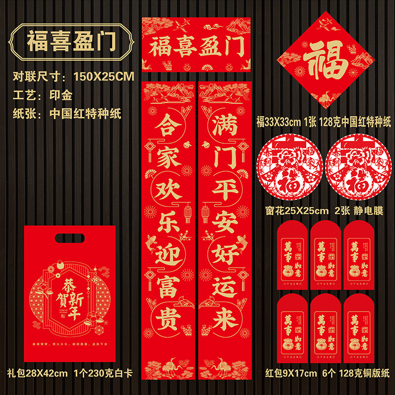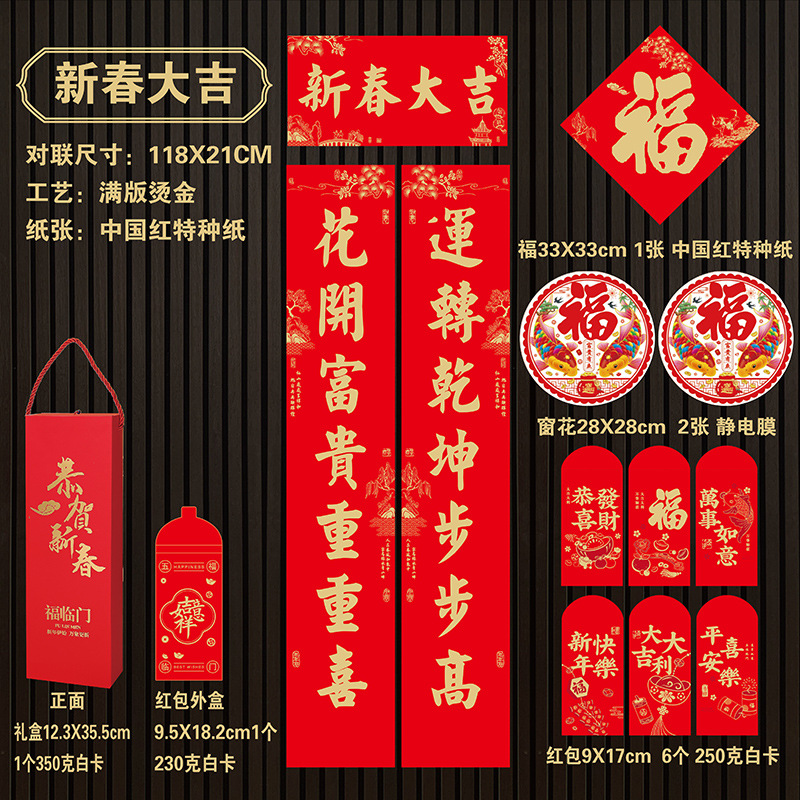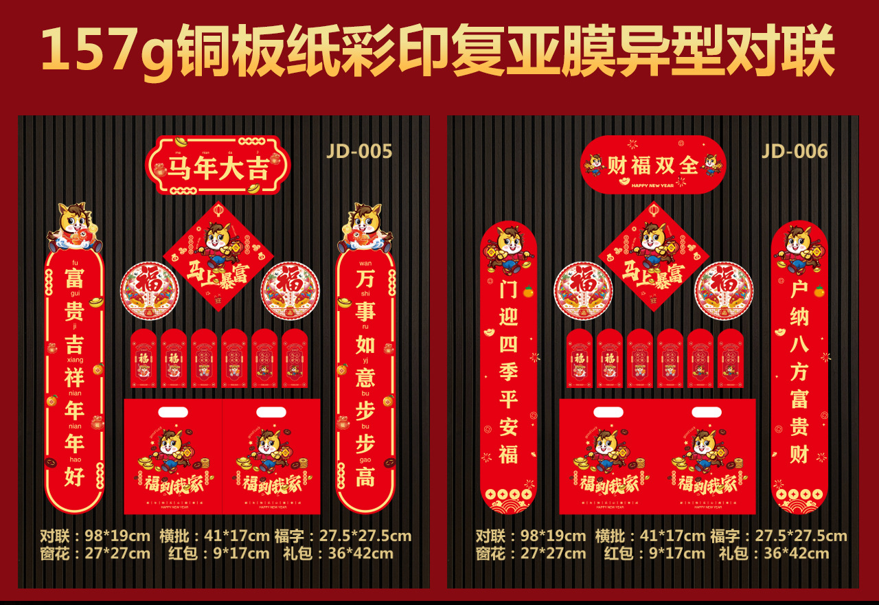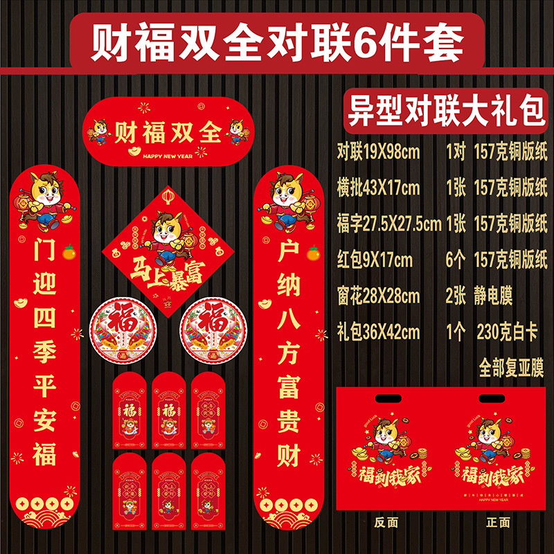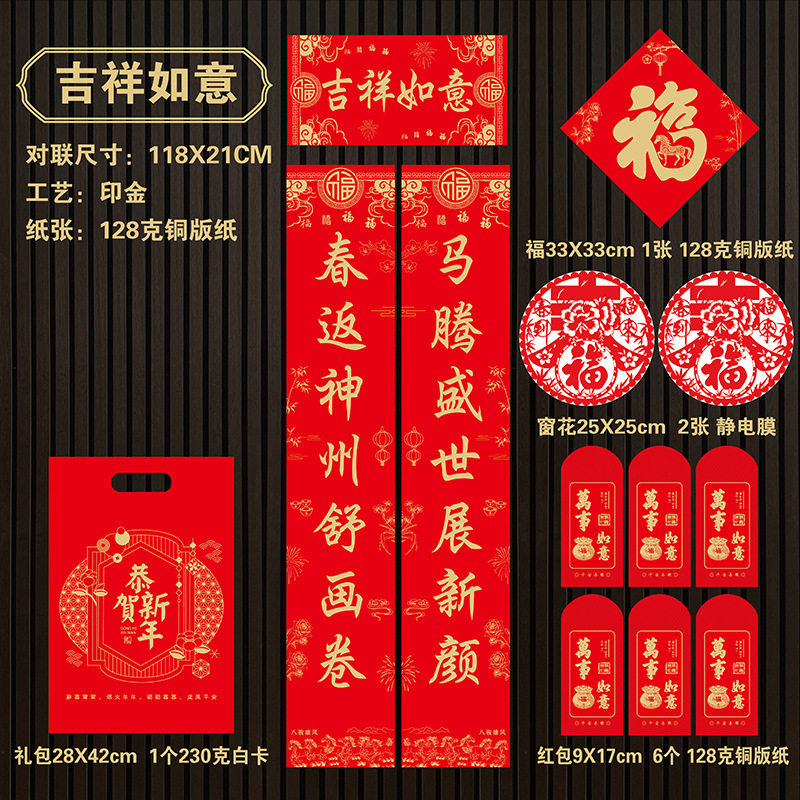 2026马年广告对联定制印logo春联大礼包新年春节福字植绒定做烫金