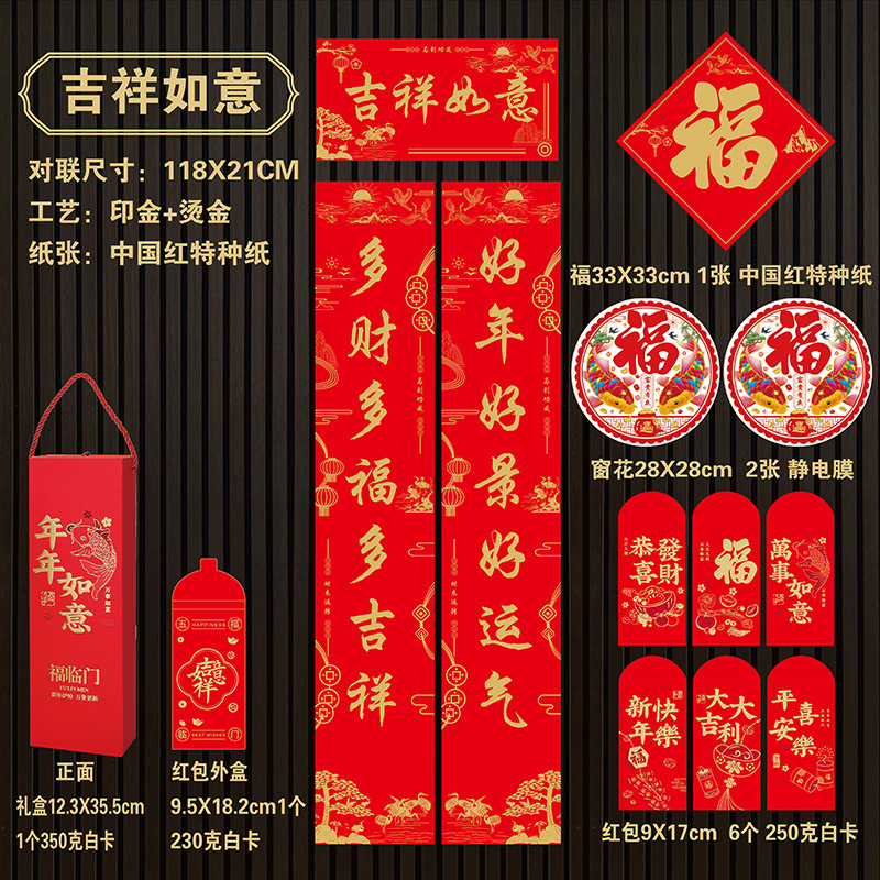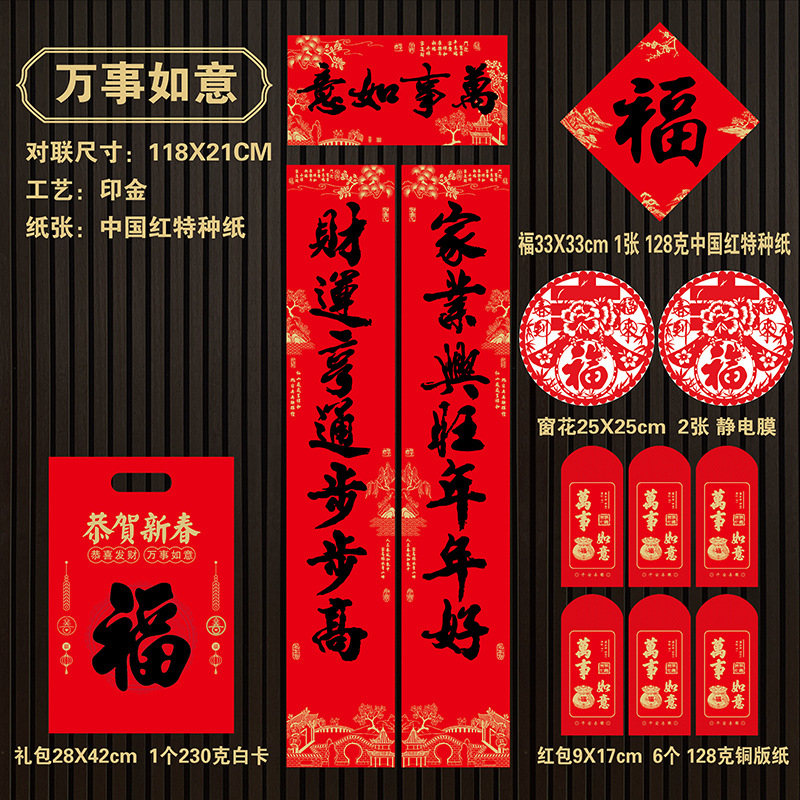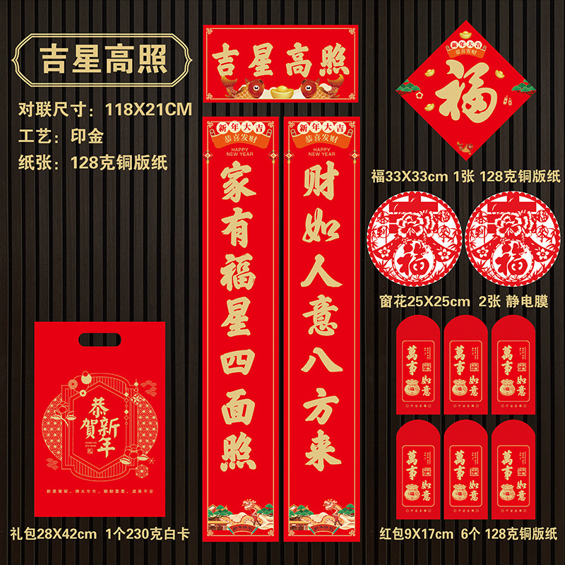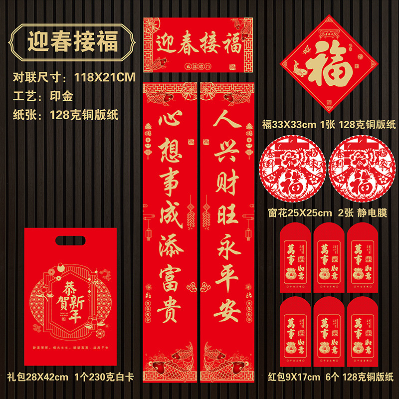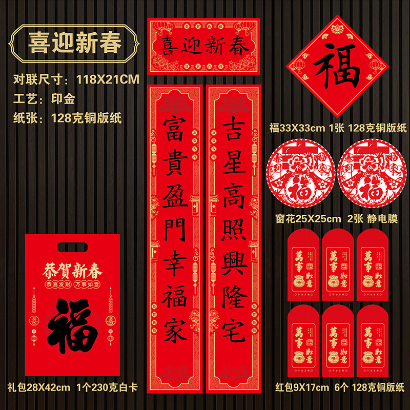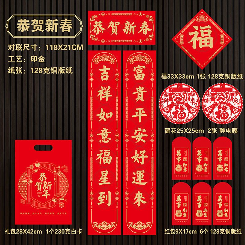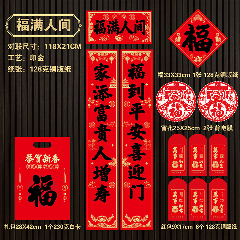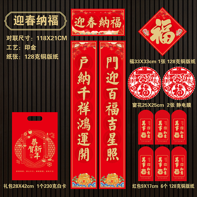 2026马年广告对联定制印logo春联大礼包新年春节福字植绒定做烫金