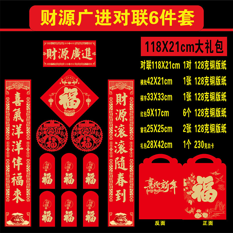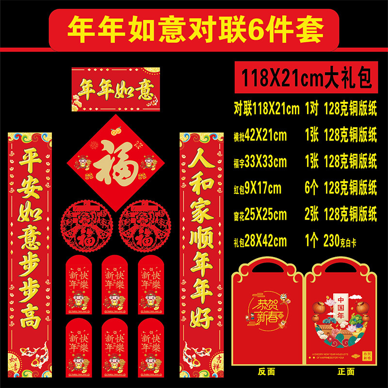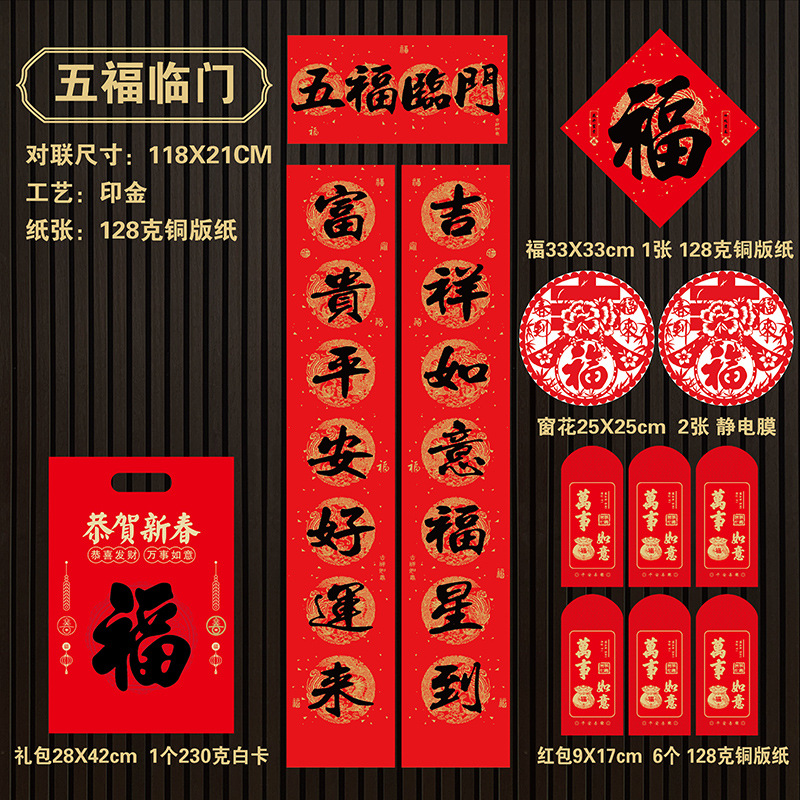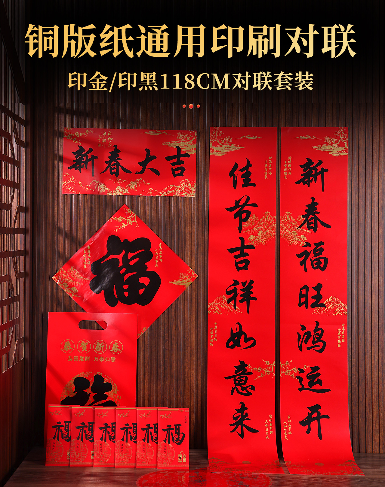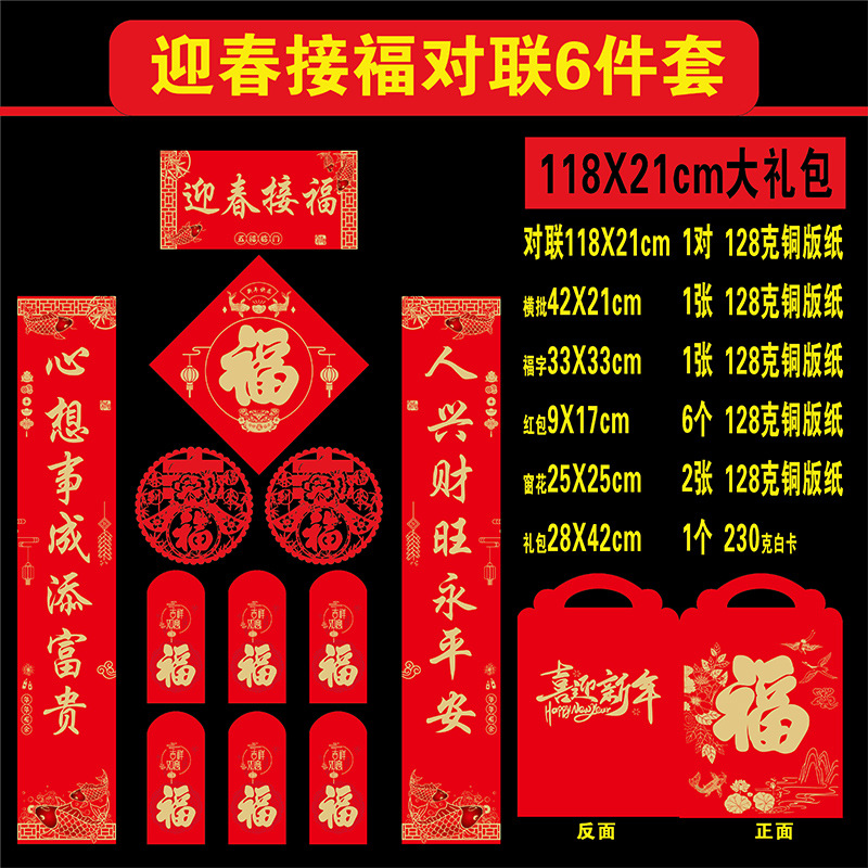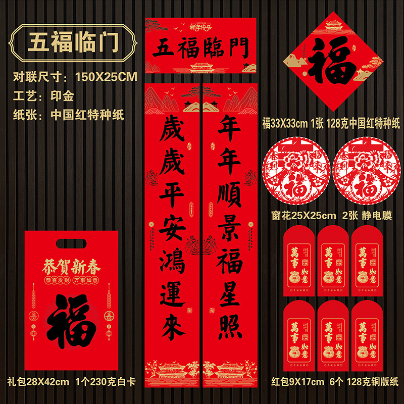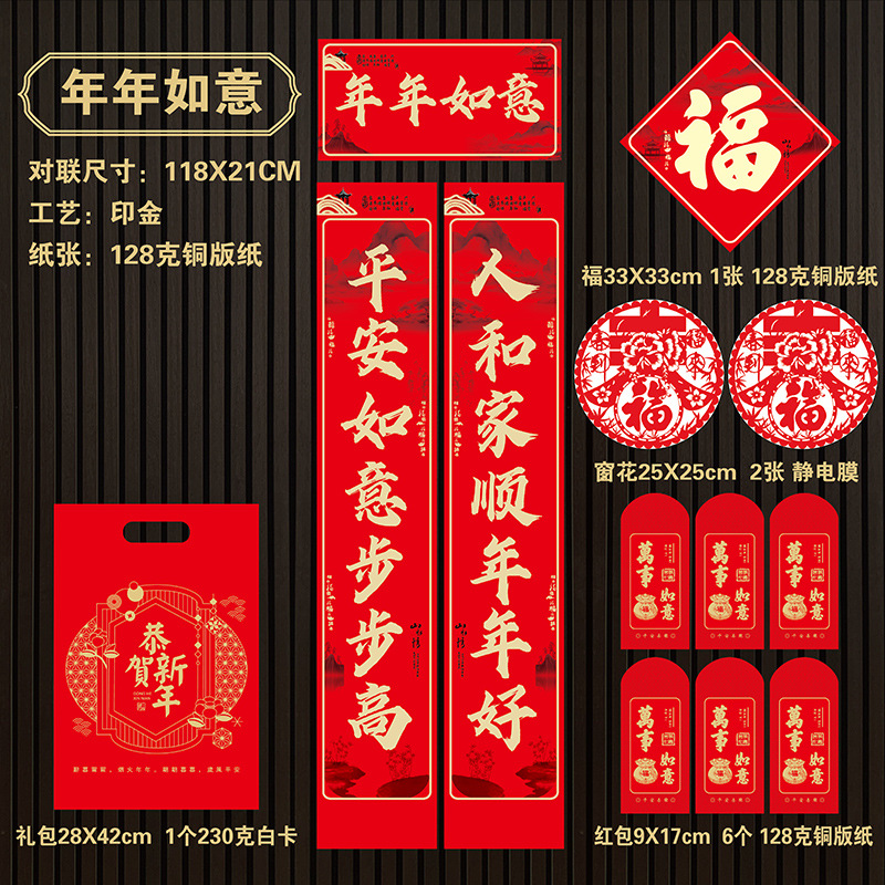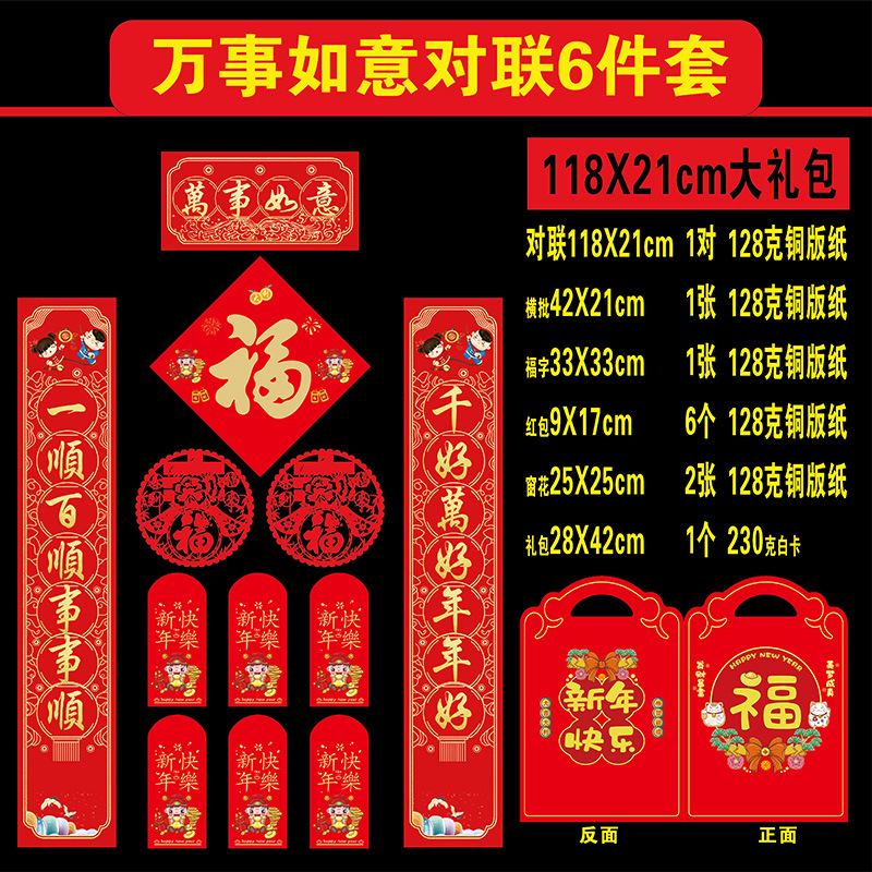 2026马年广告对联定制印logo春联大礼包新年春节福字植绒定做烫金