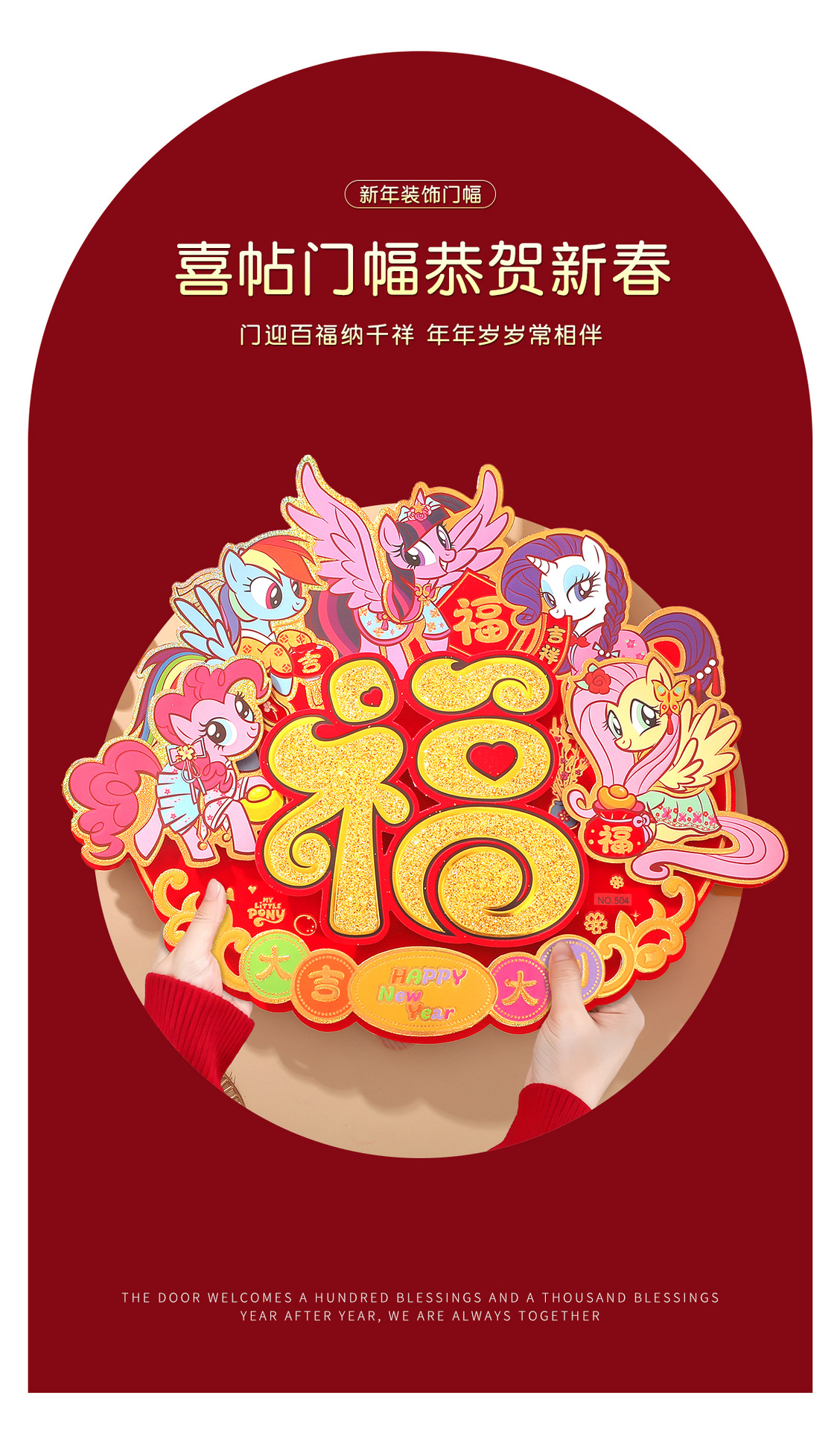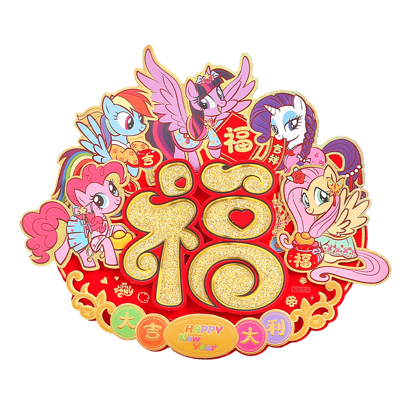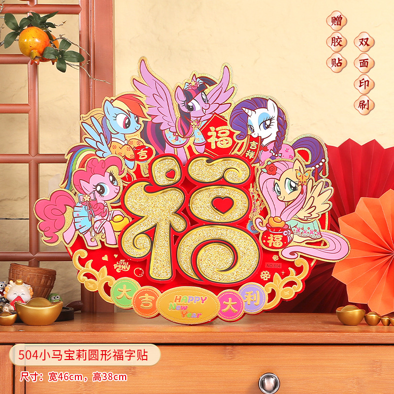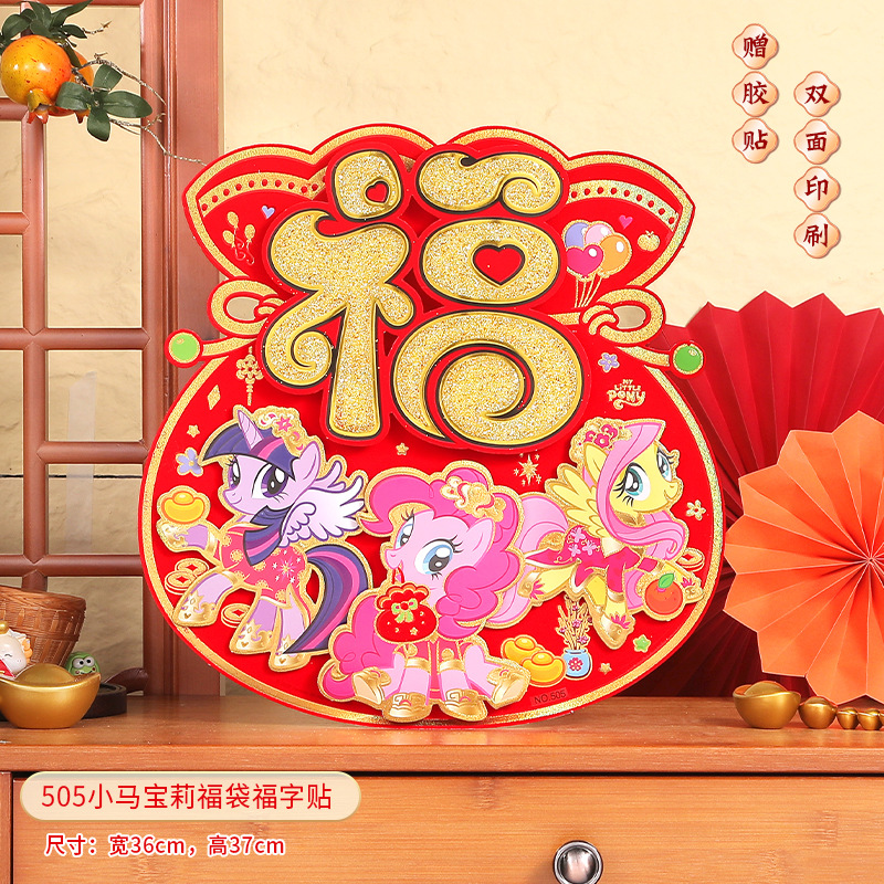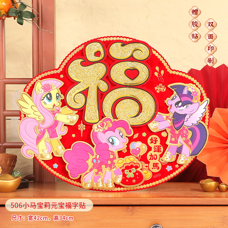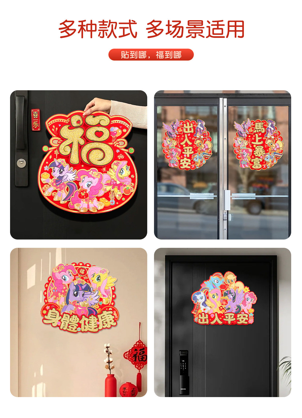 新年福字门贴2026马年新款小马宝莉植绒斗方春节元旦装饰贴纸