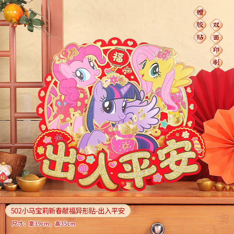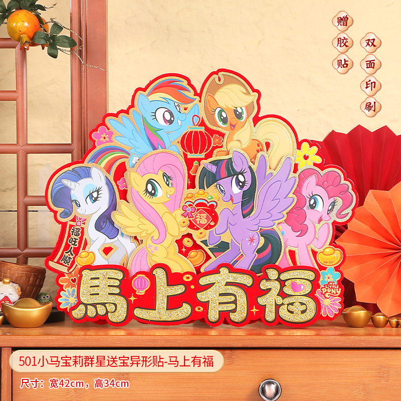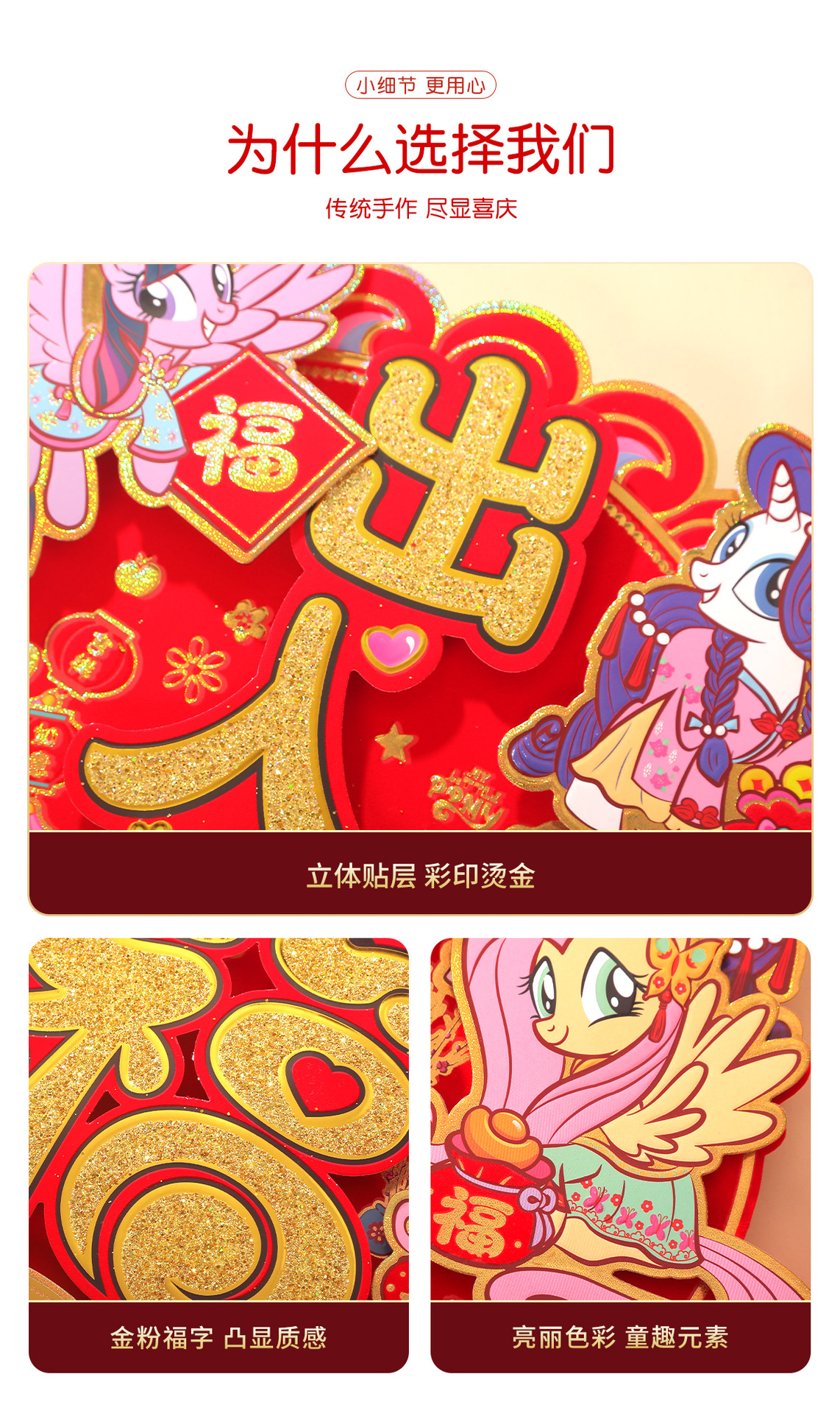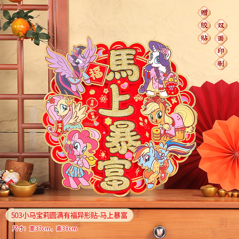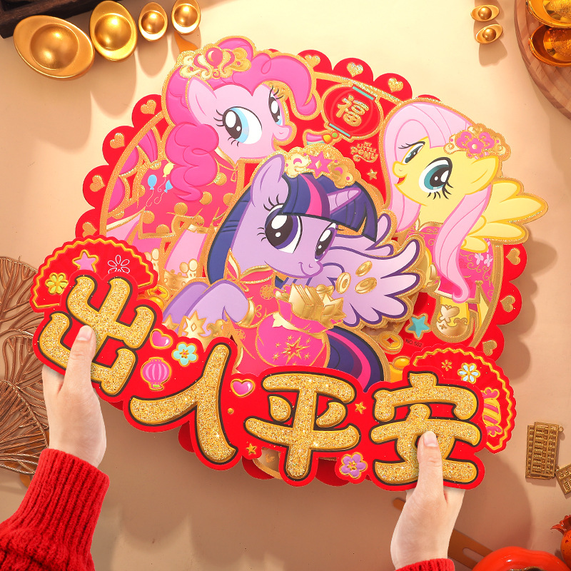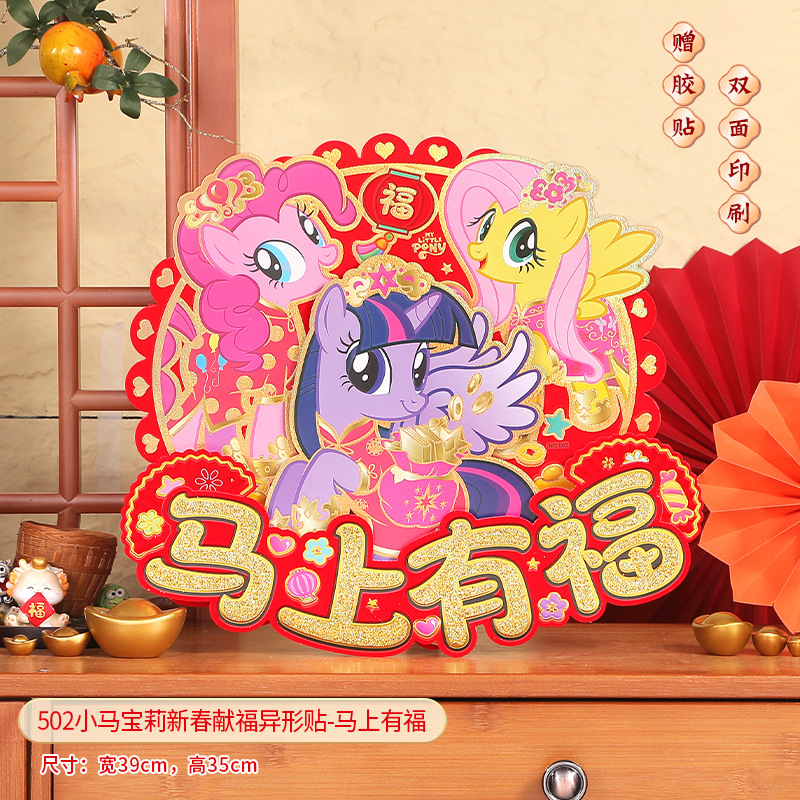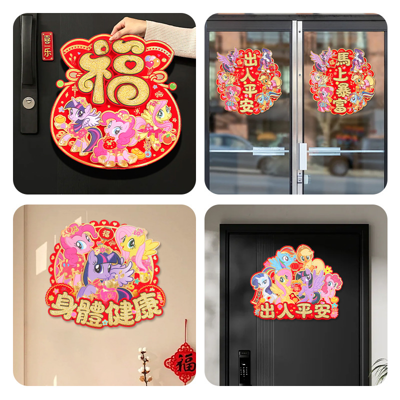 新年福字门贴2026马年新款小马宝莉植绒斗方春节元旦装饰贴纸