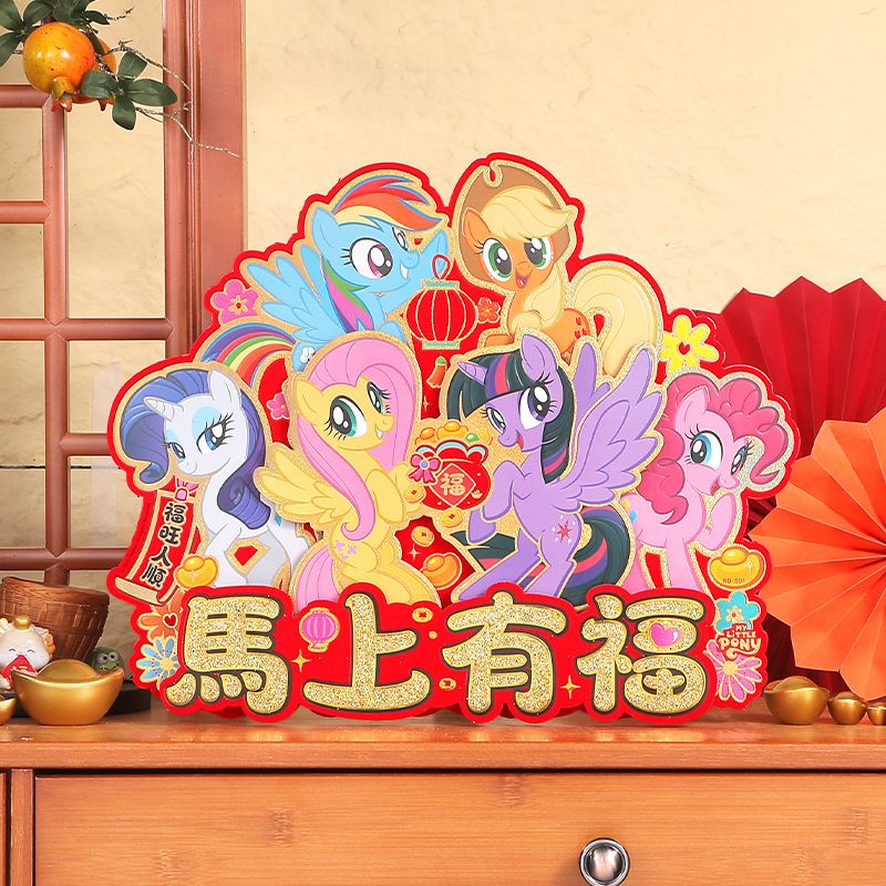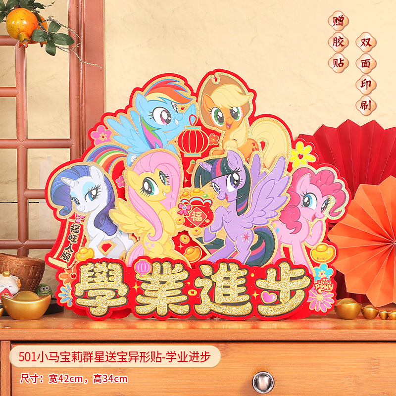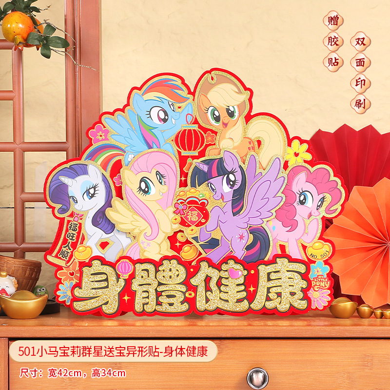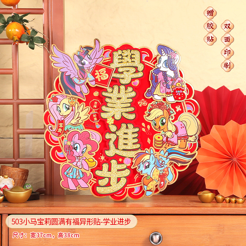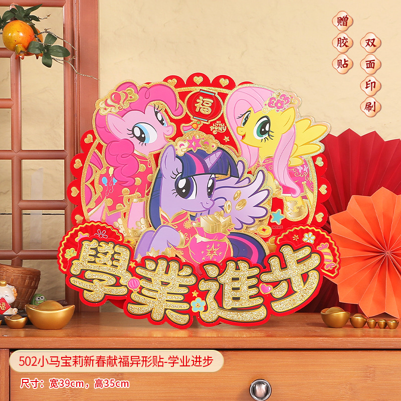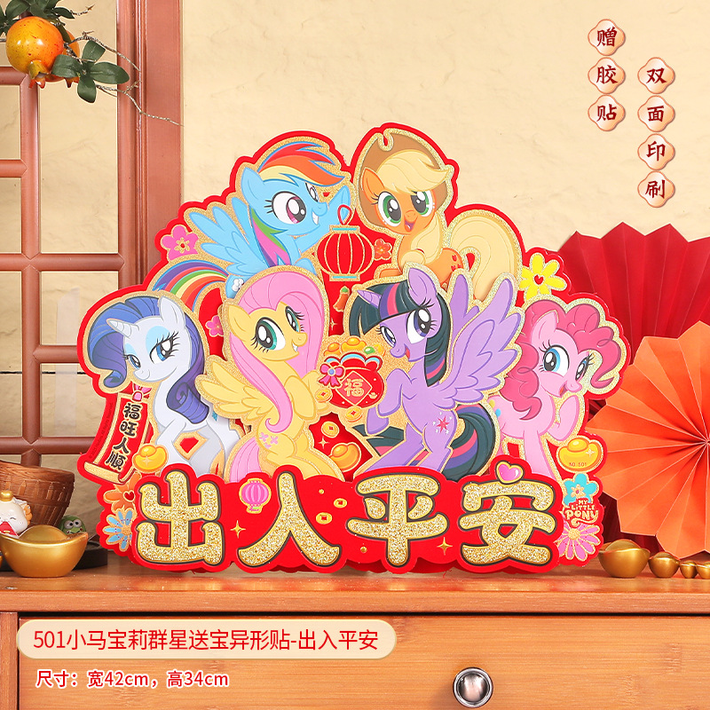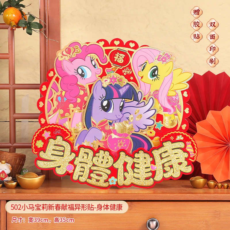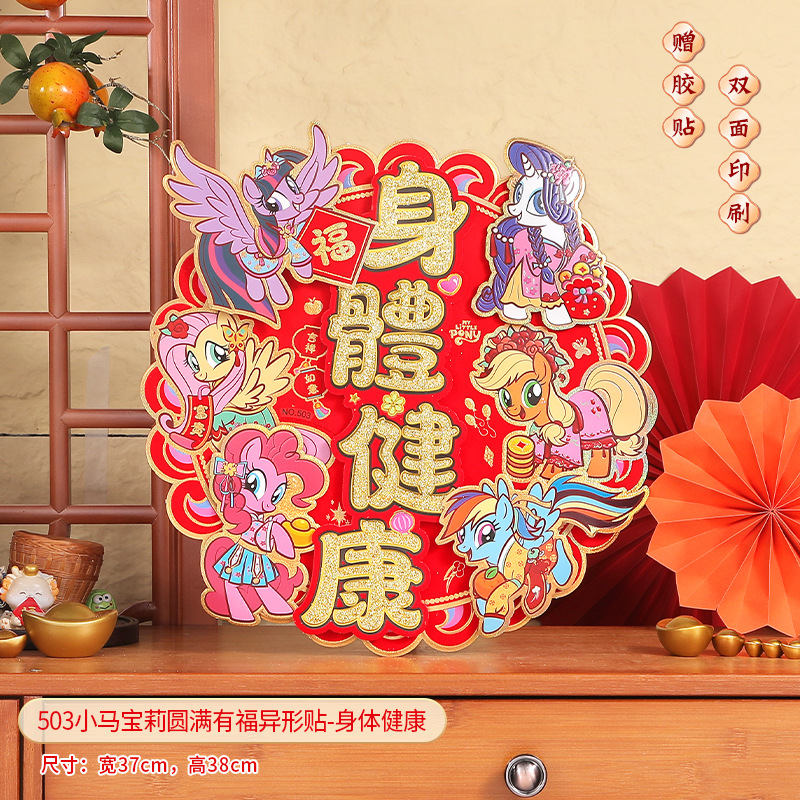 新年福字门贴2026马年新款小马宝莉植绒斗方春节元旦装饰贴纸
