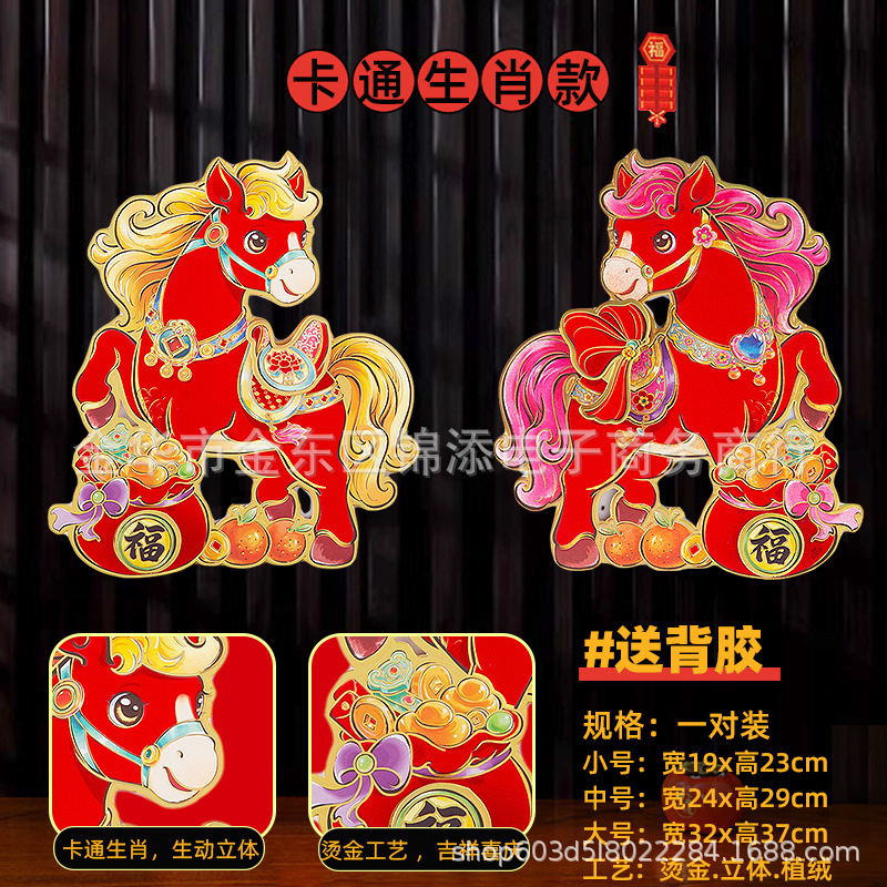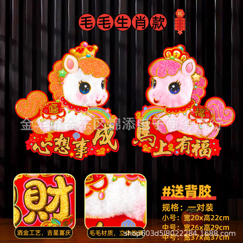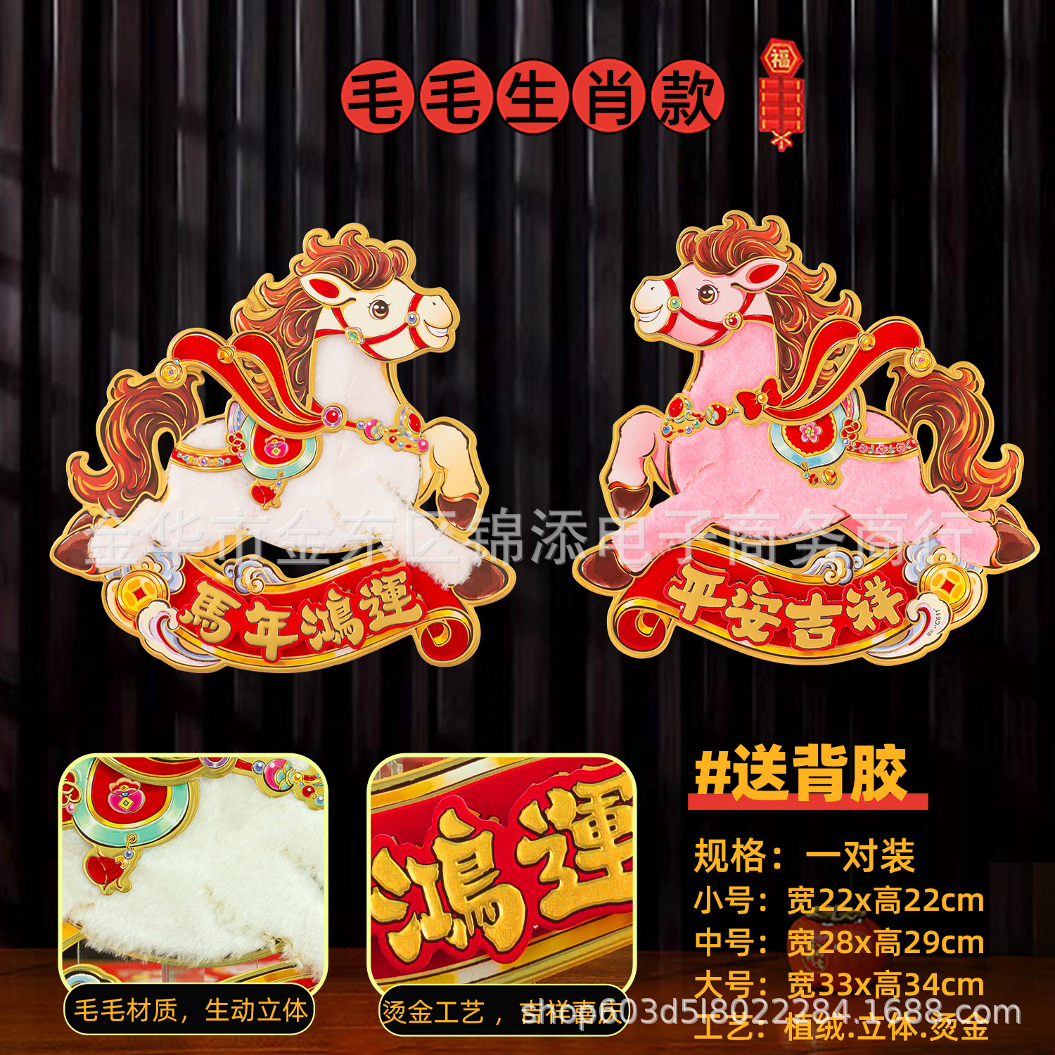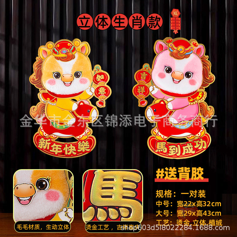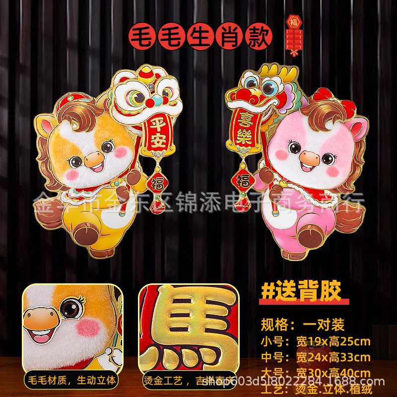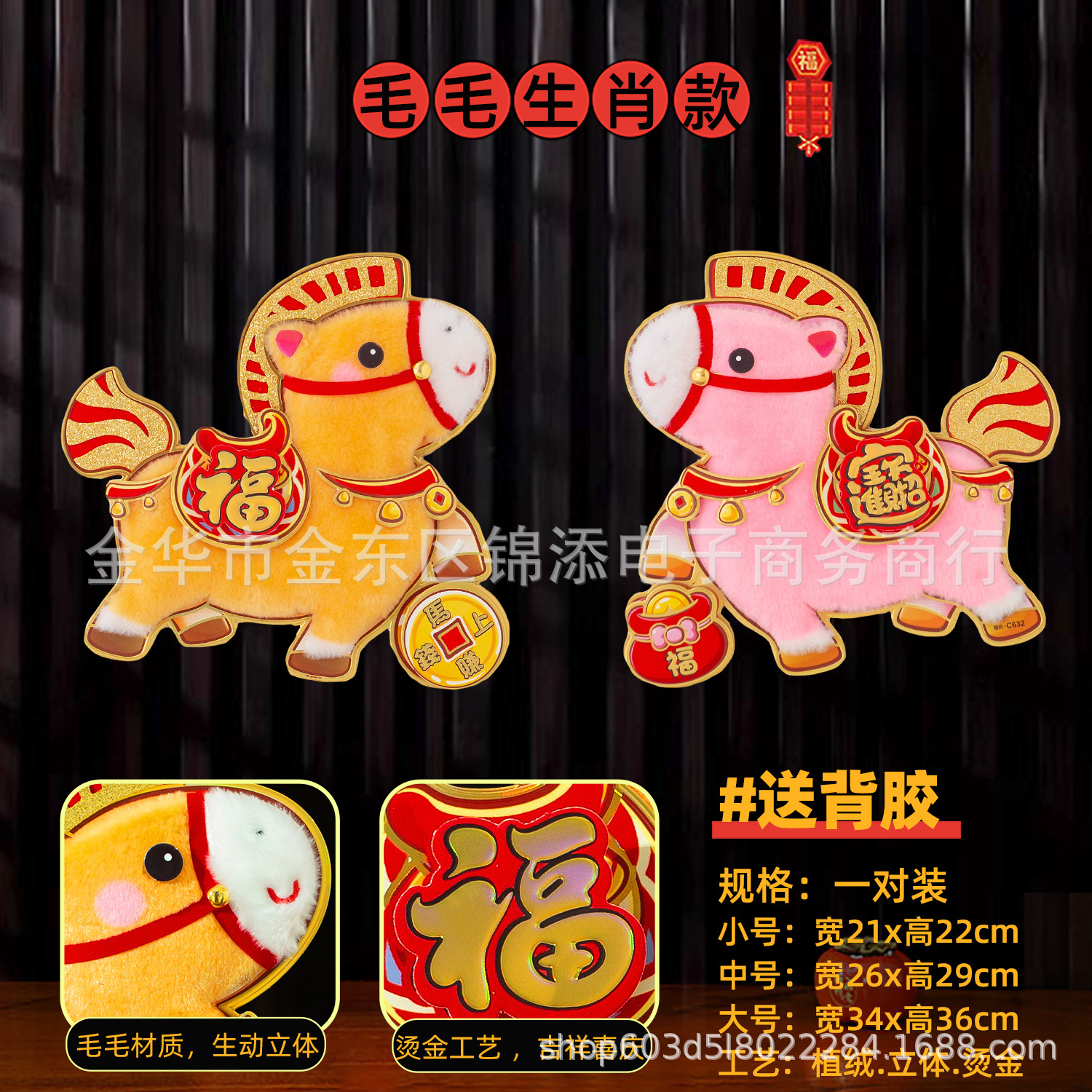 2026马年春节过年福字贴新年生肖大门门贴植绒对贴春节装饰布置品