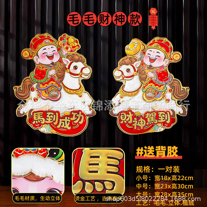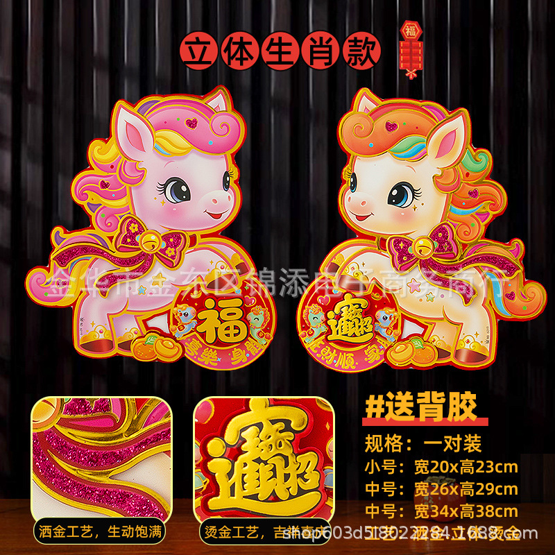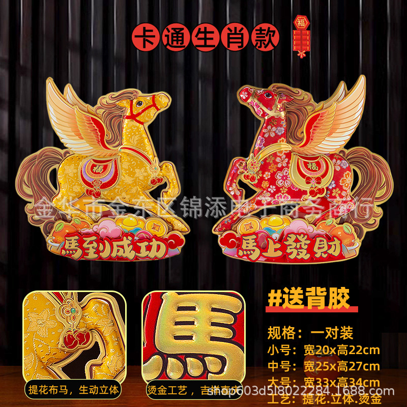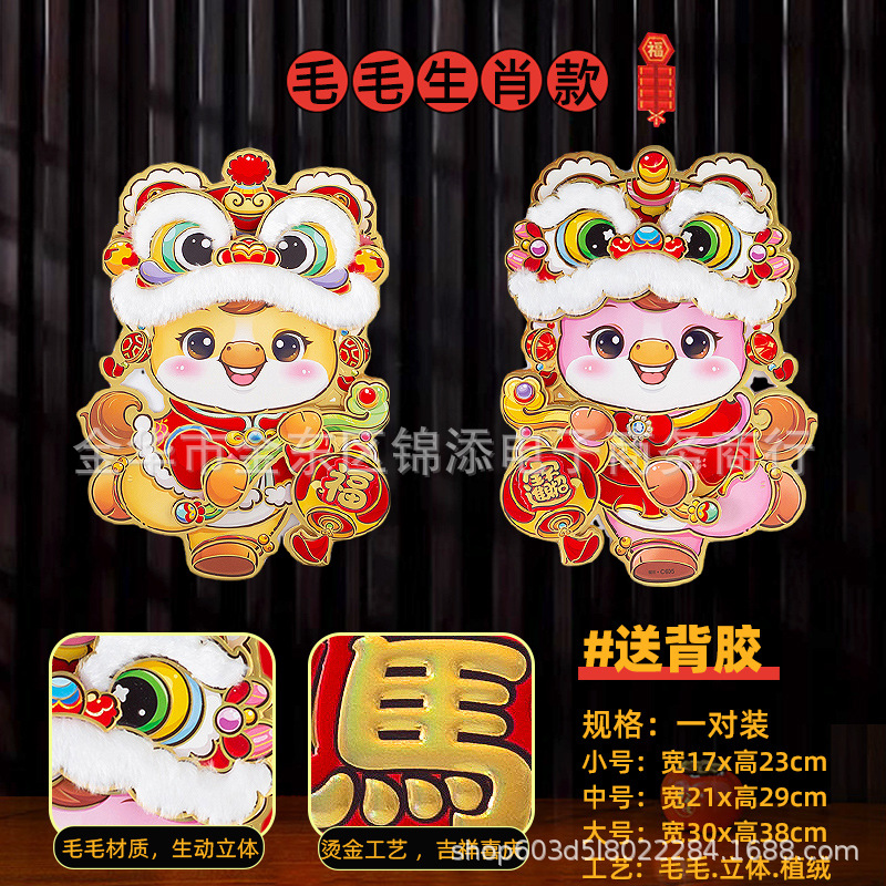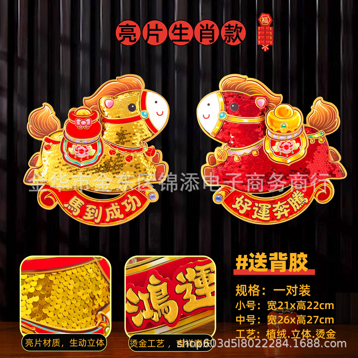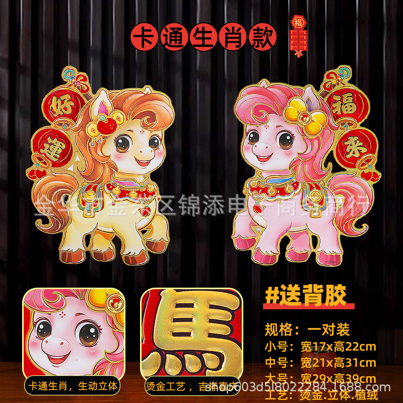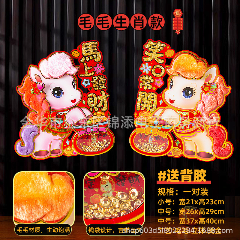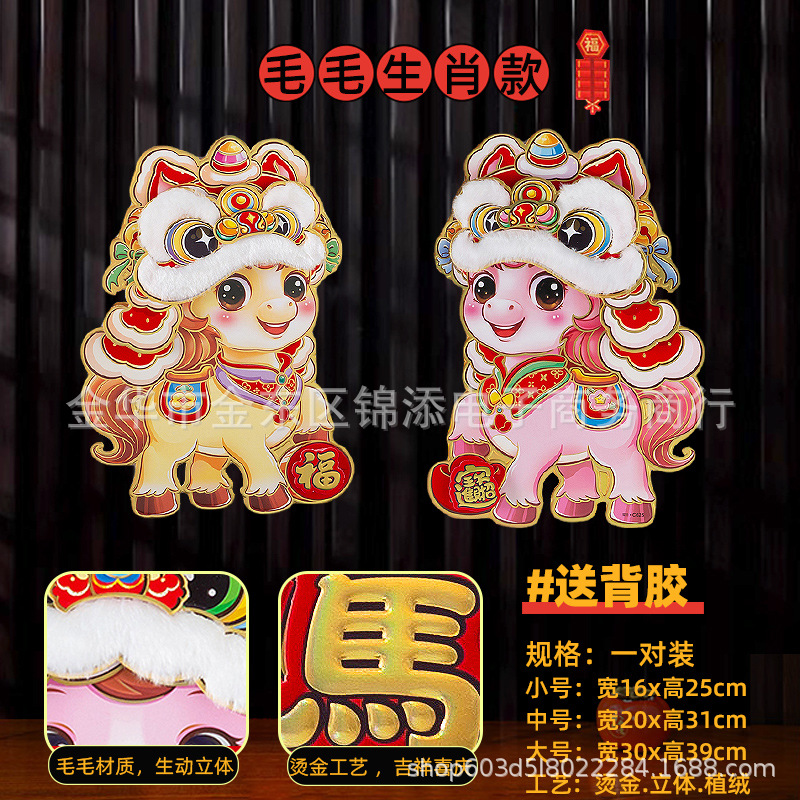 2026马年春节过年福字贴新年生肖大门门贴植绒对贴春节装饰布置品