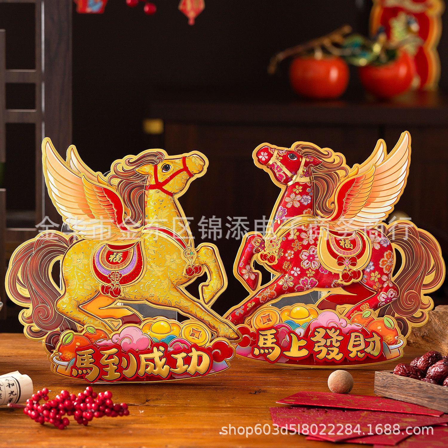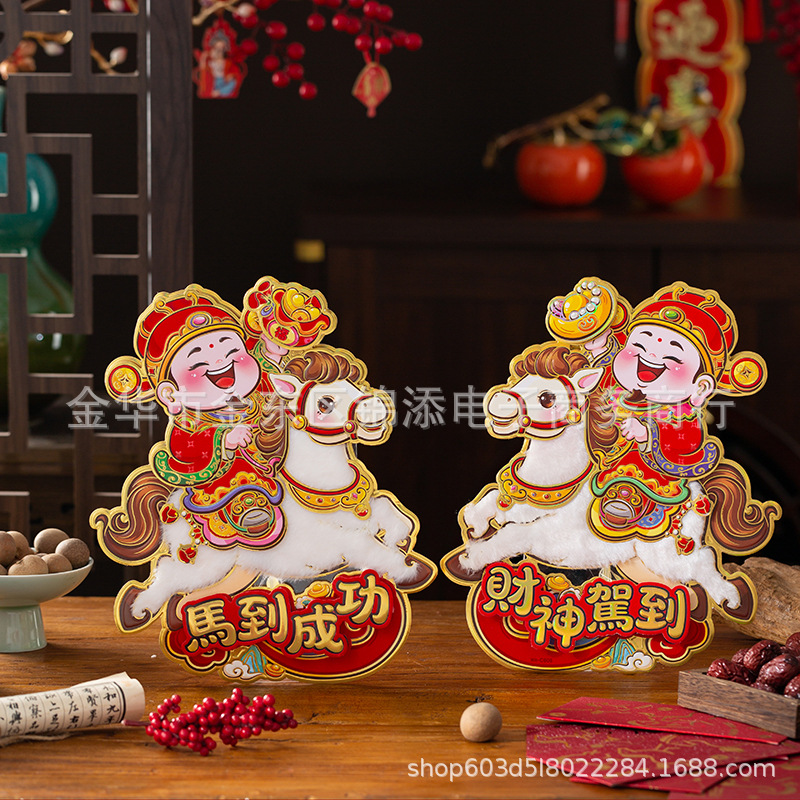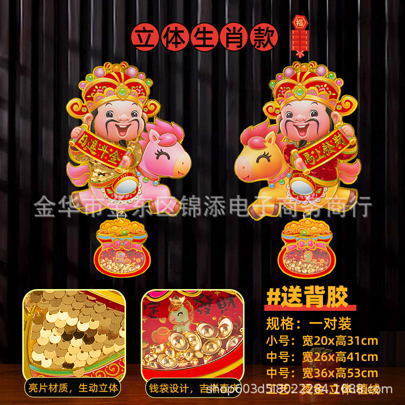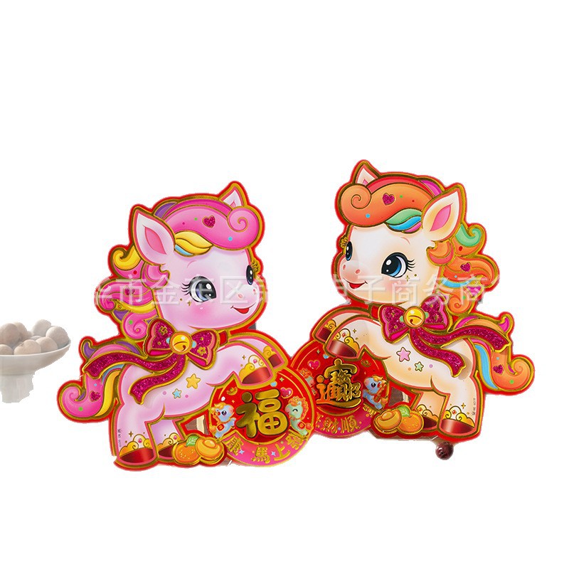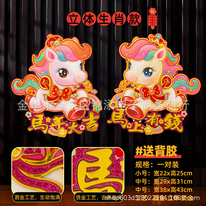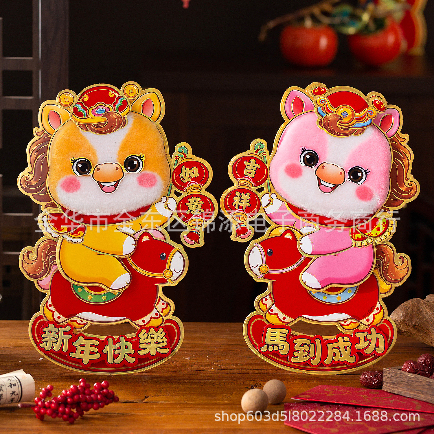 2026马年春节过年福字贴新年生肖大门门贴植绒对贴春节装饰布置品