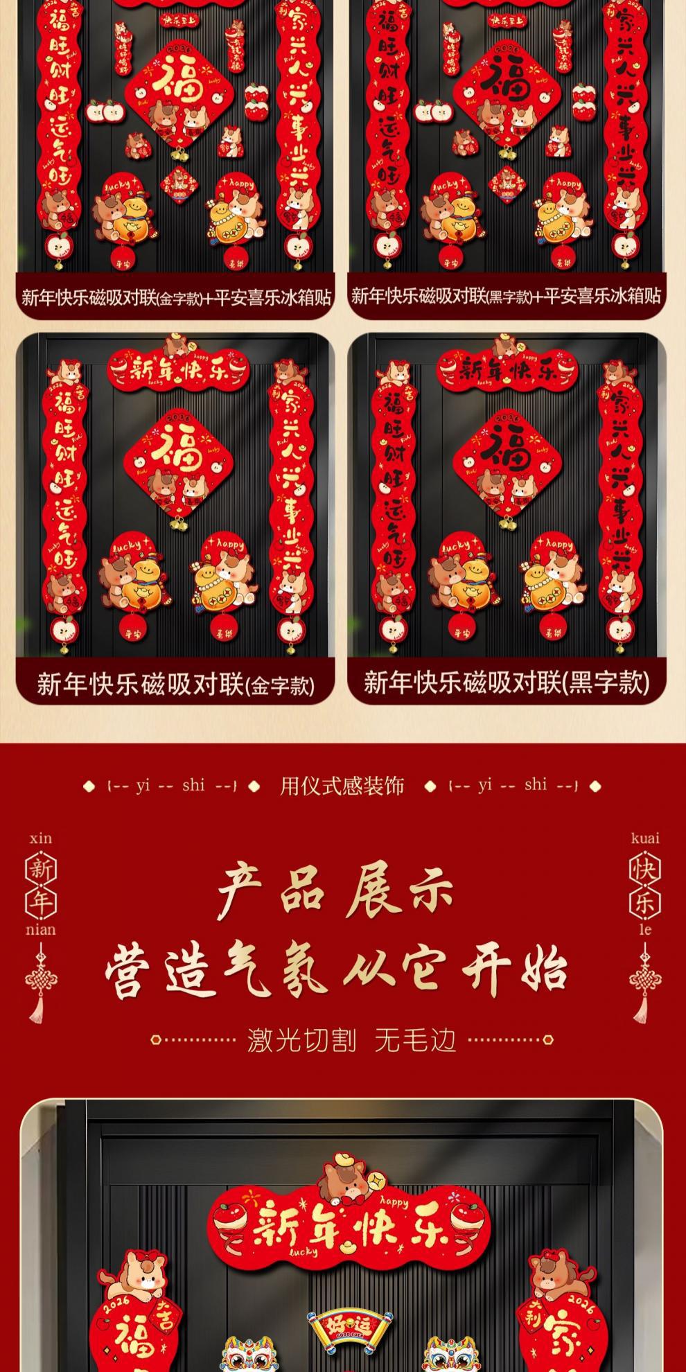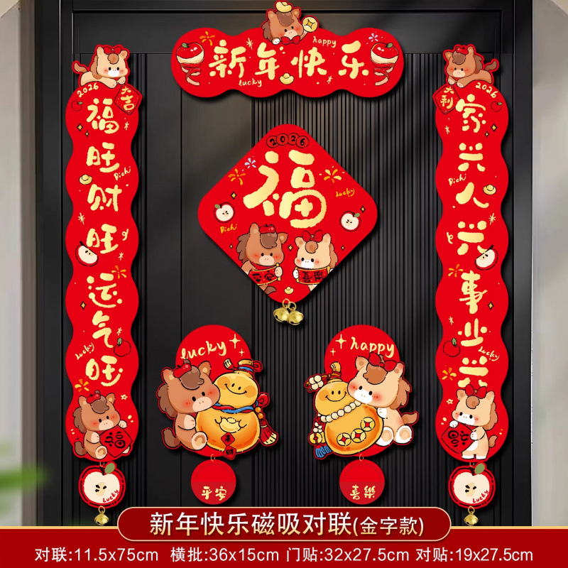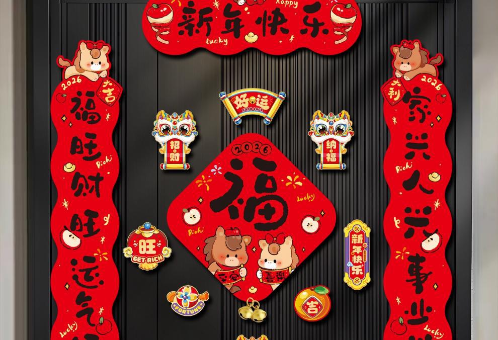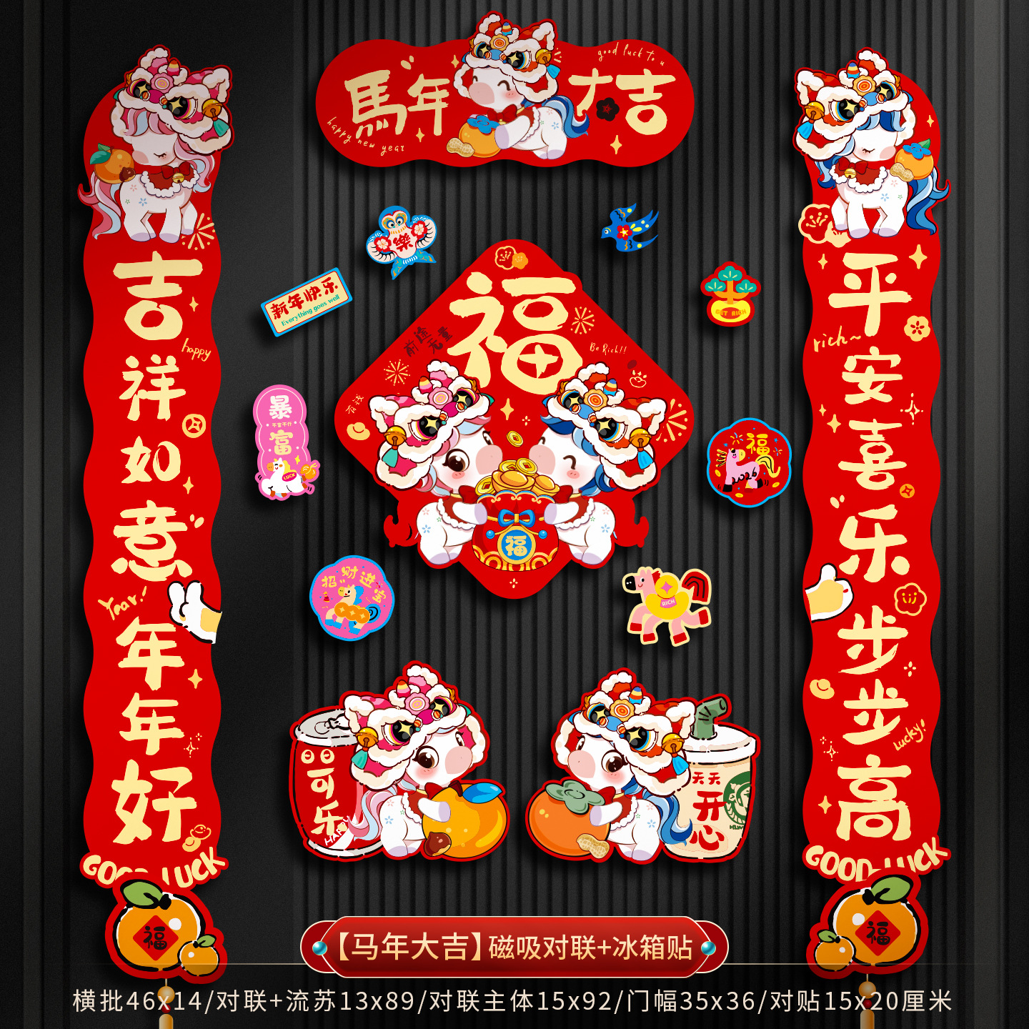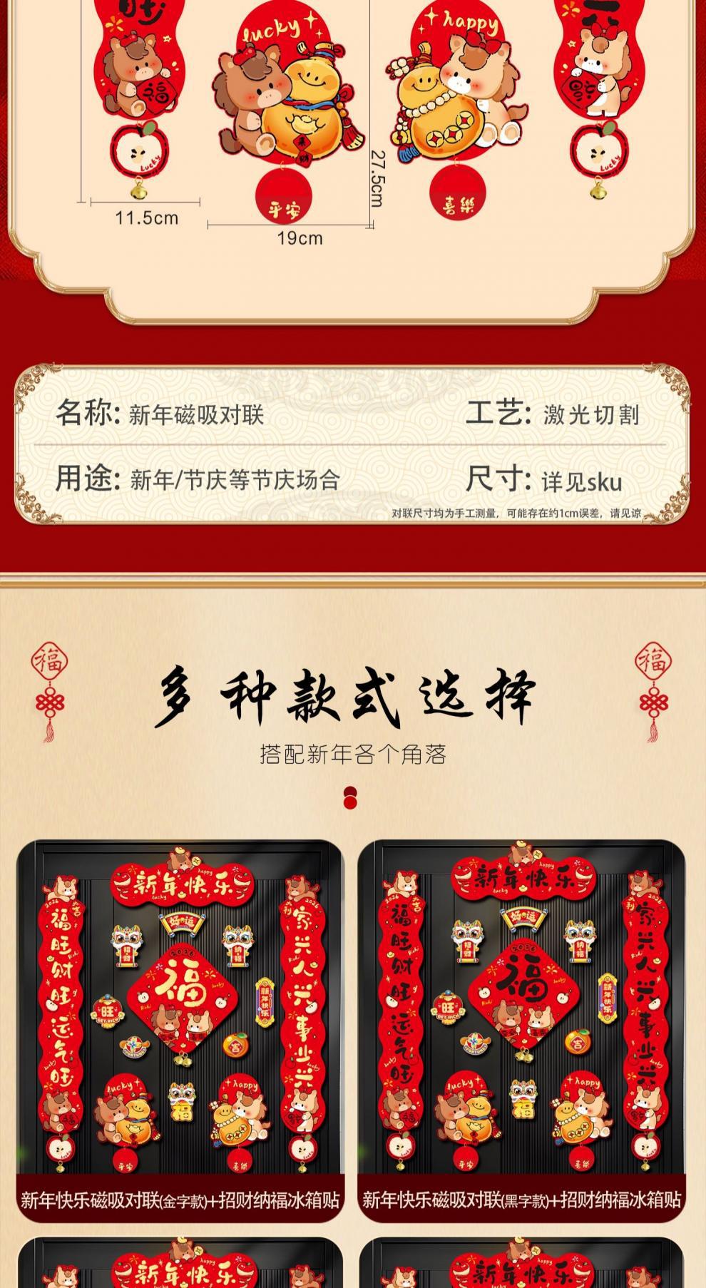 新款磁吸对联卡通门联过年春节新年家用春联福字门贴布置装饰用品