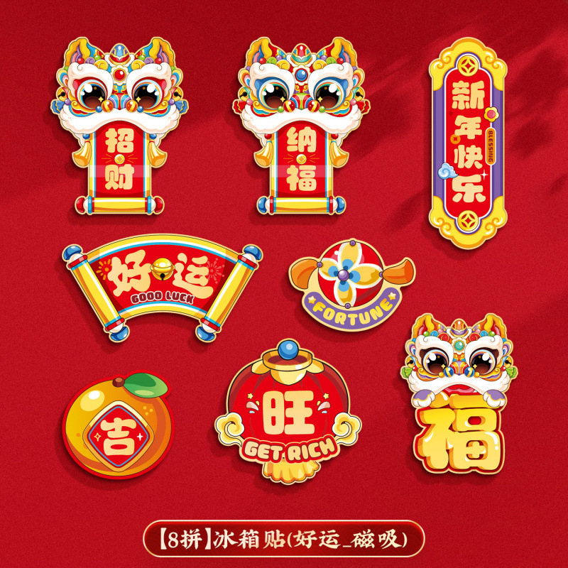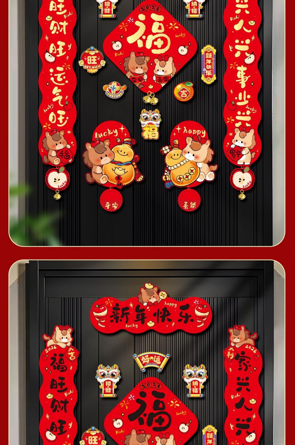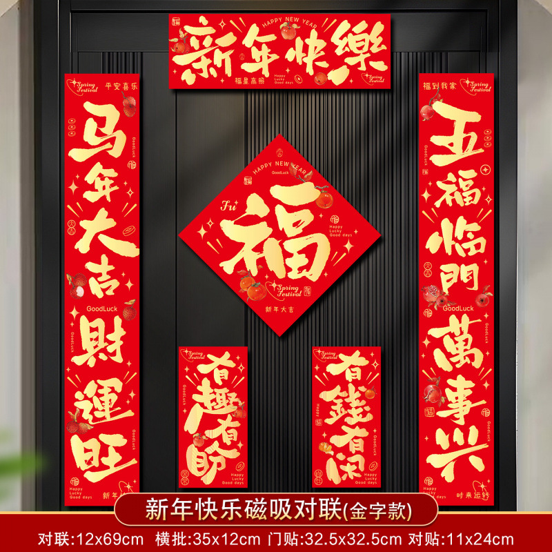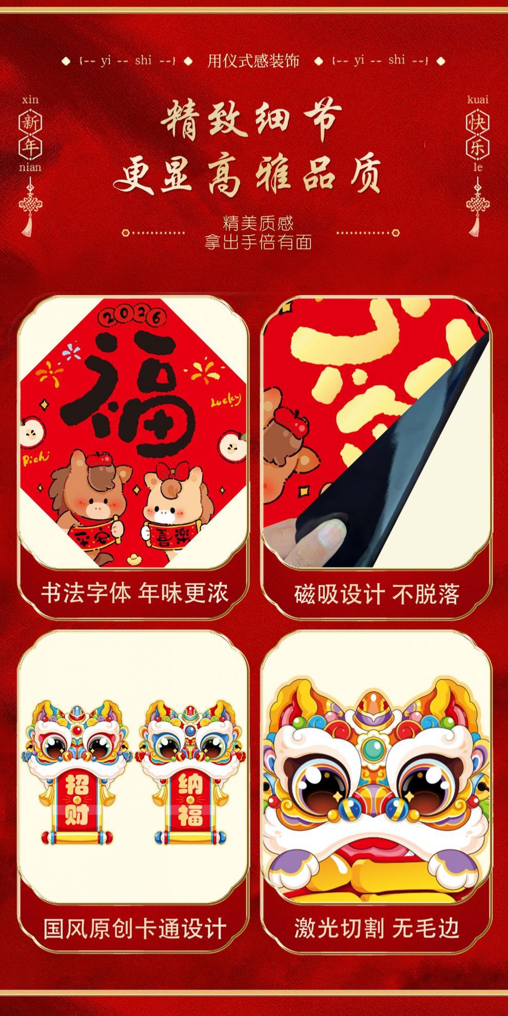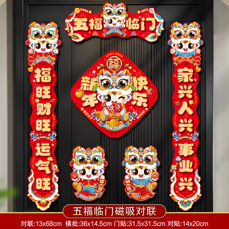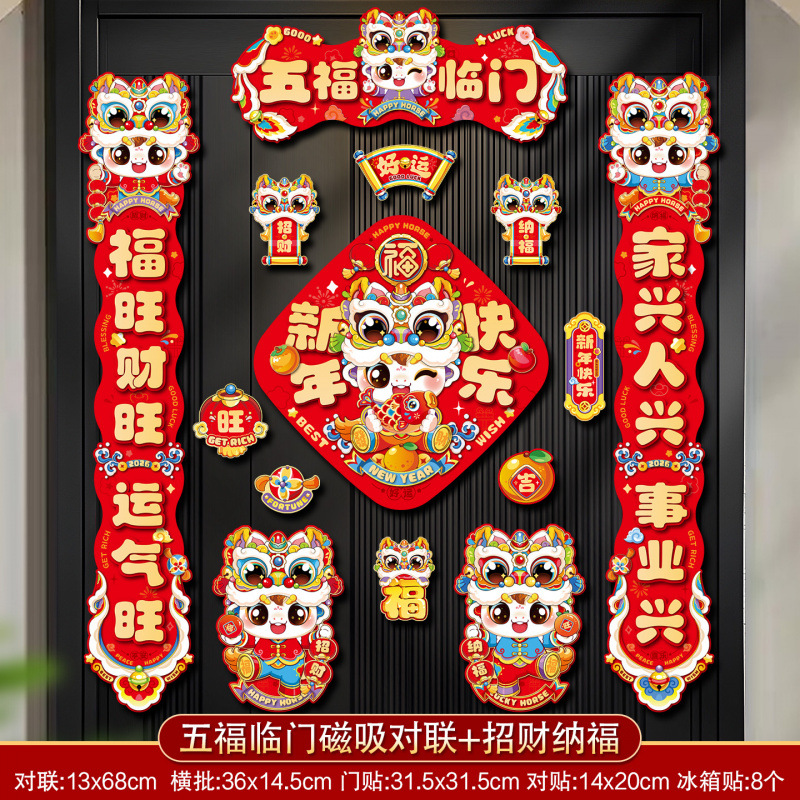 新款磁吸对联卡通门联过年春节新年家用春联福字门贴布置装饰用品