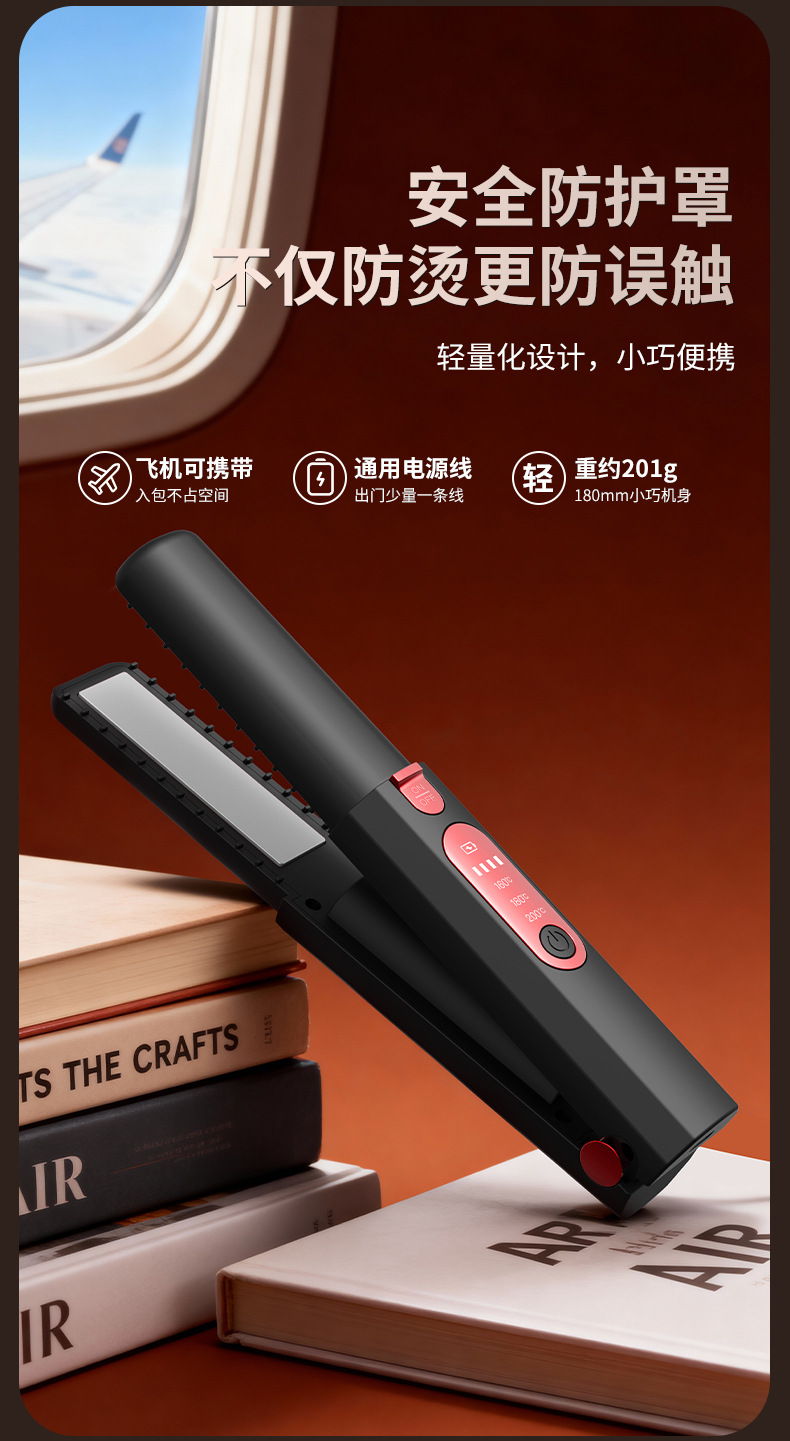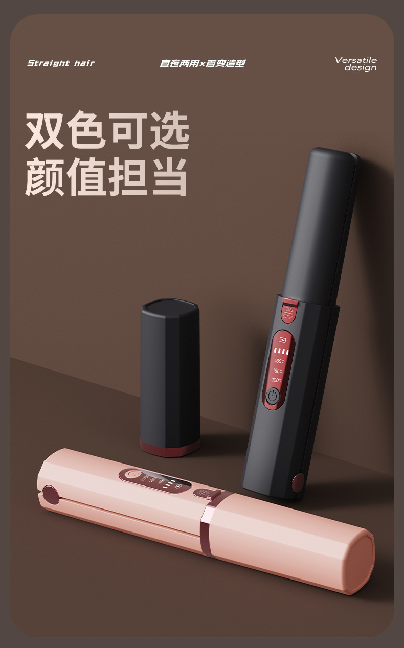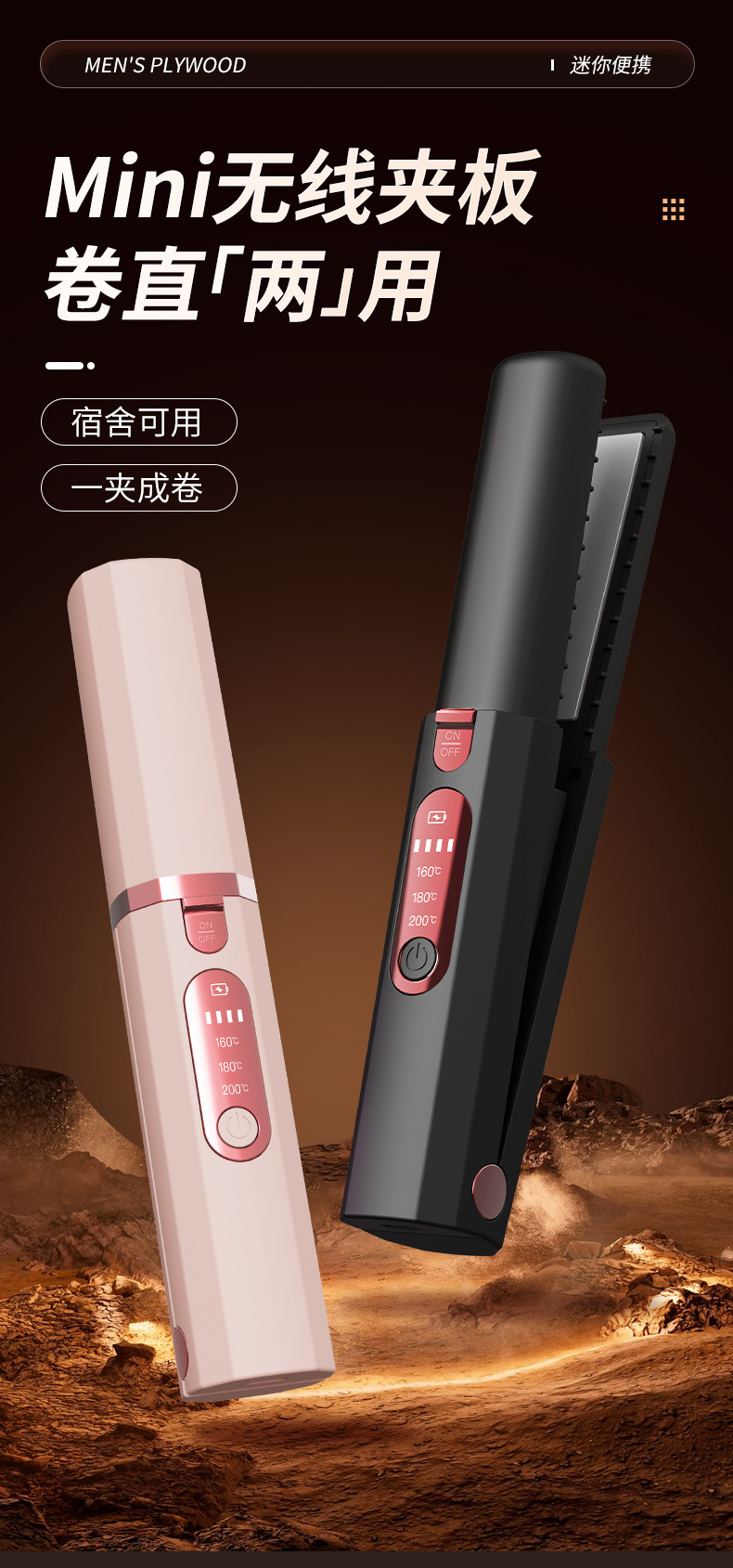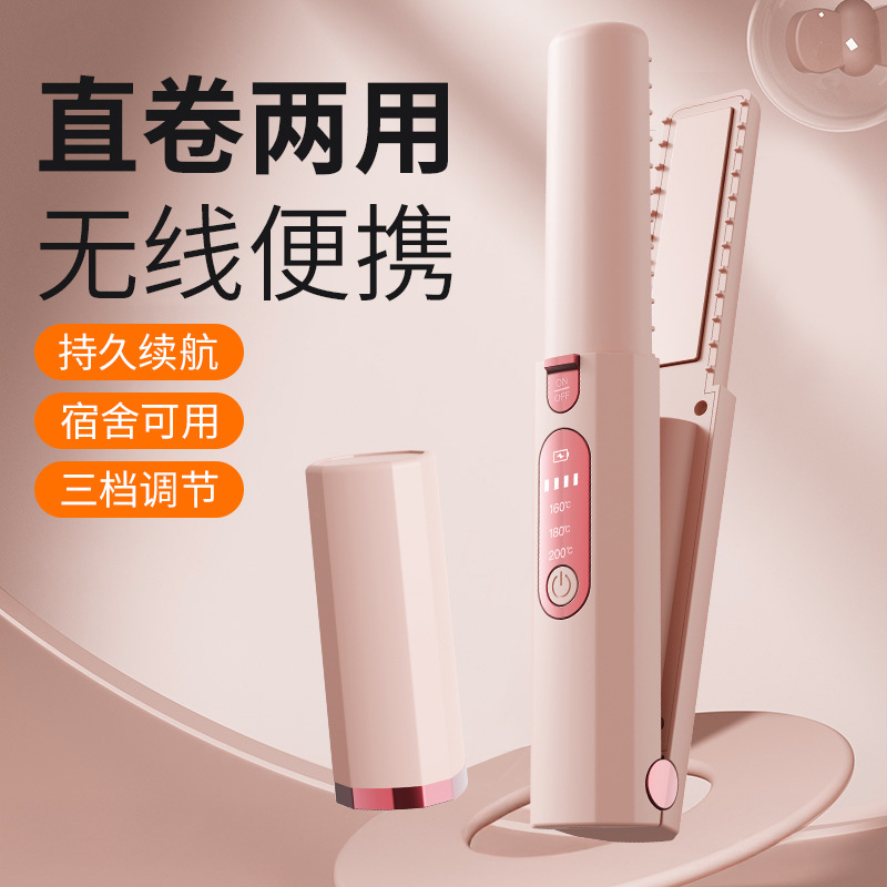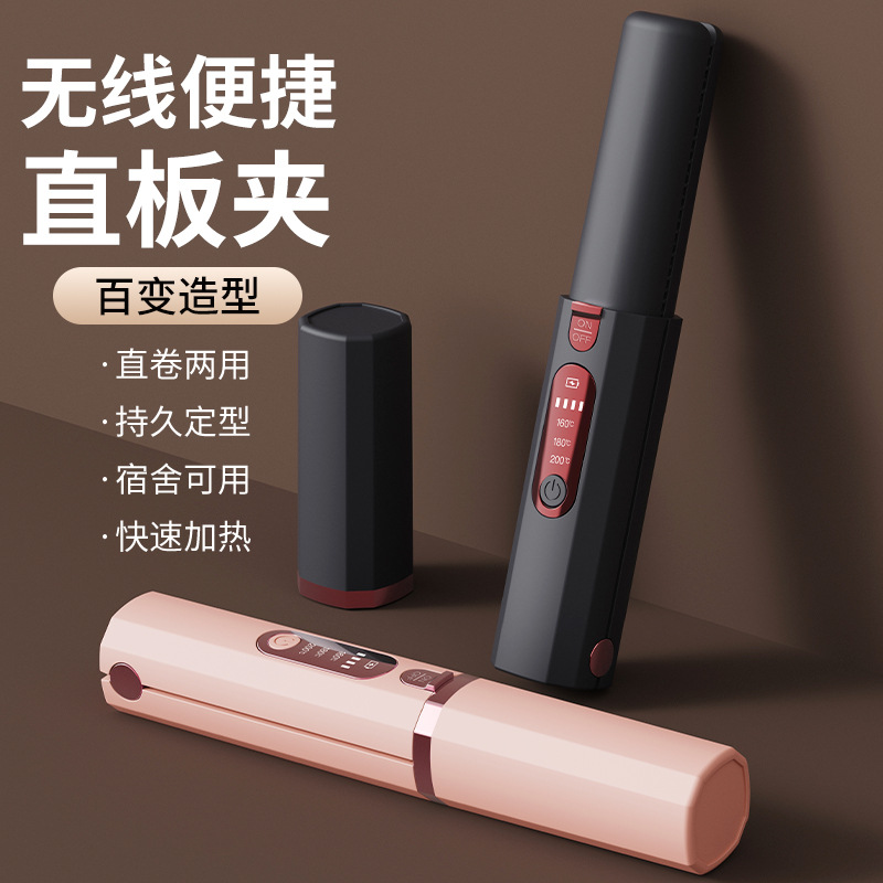 新款无线夹板充电便携式卷直两用液晶负离子家用不伤发直发器跨境