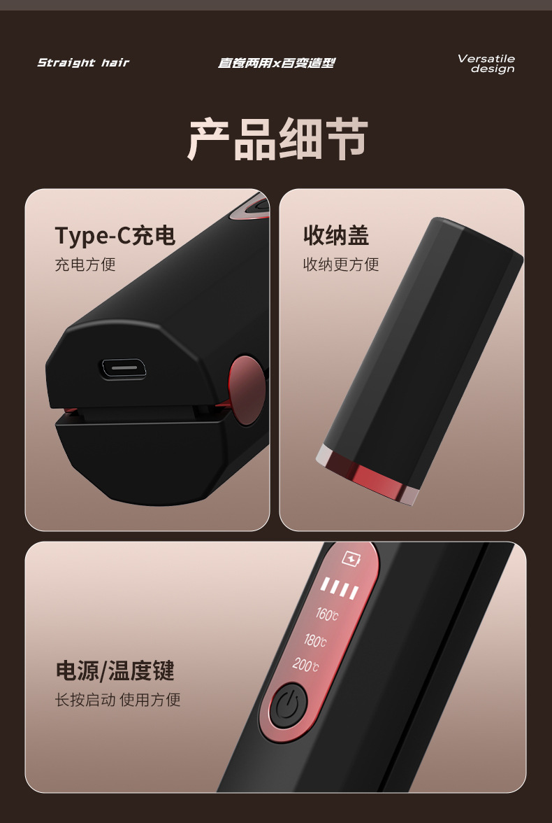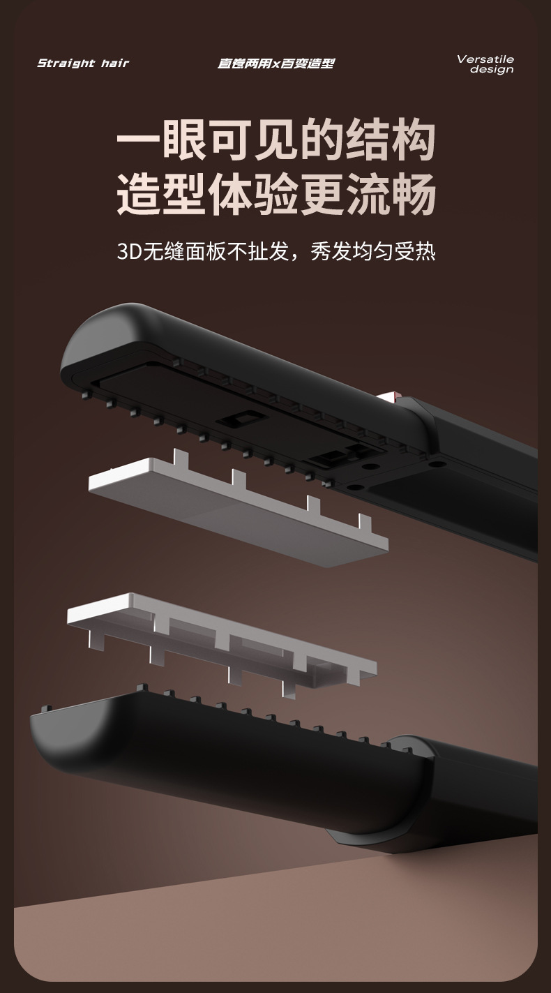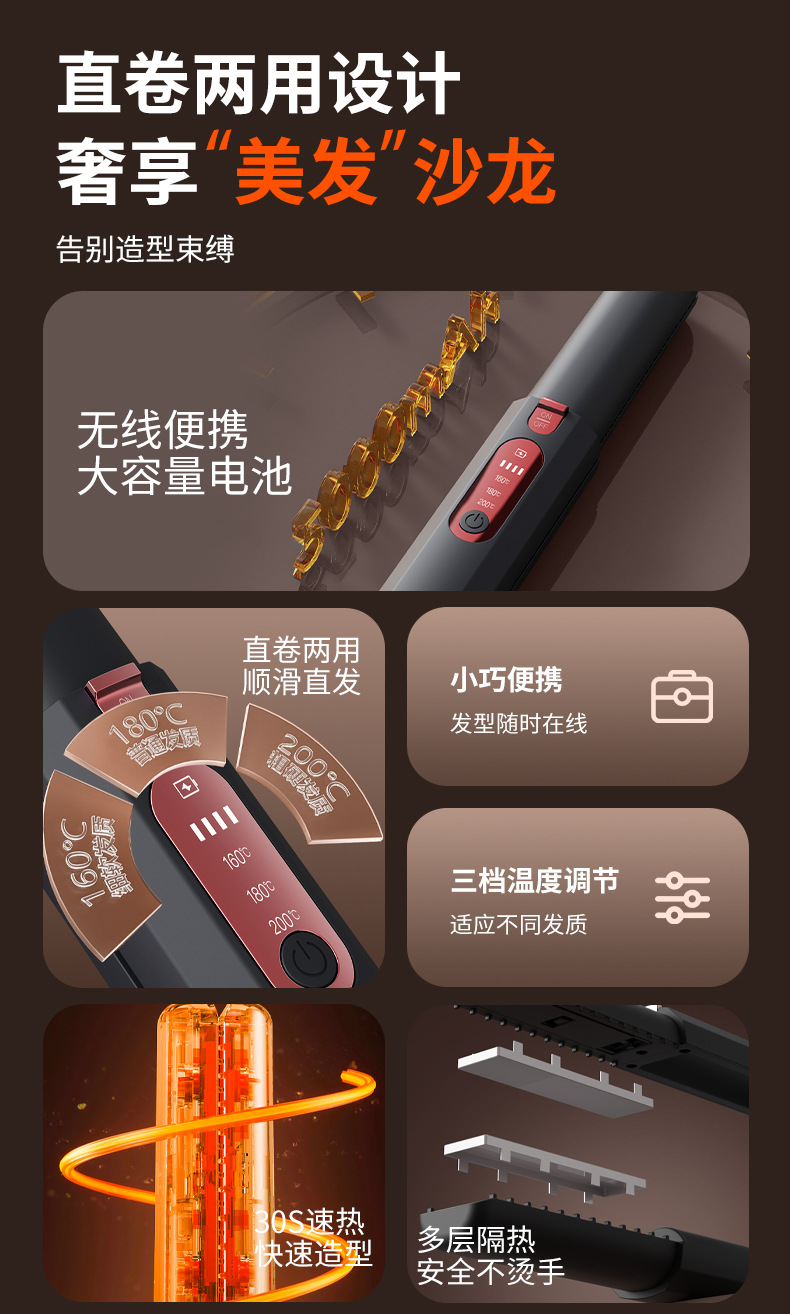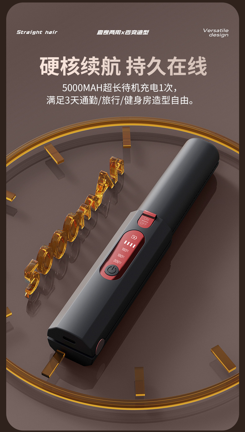 新款无线夹板充电便携式卷直两用液晶负离子家用不伤发直发器跨境