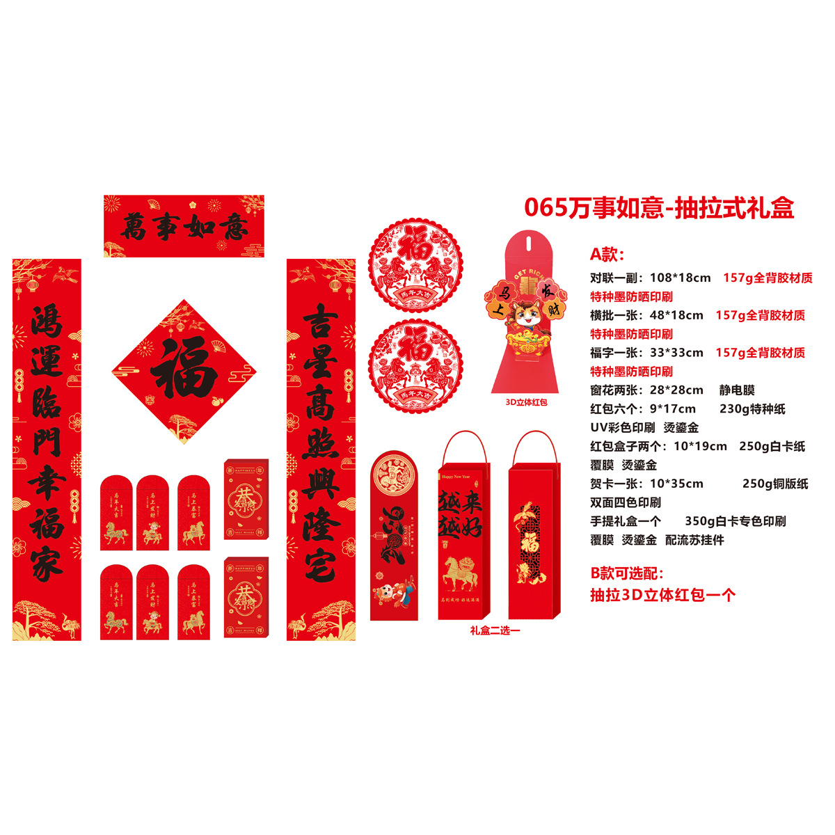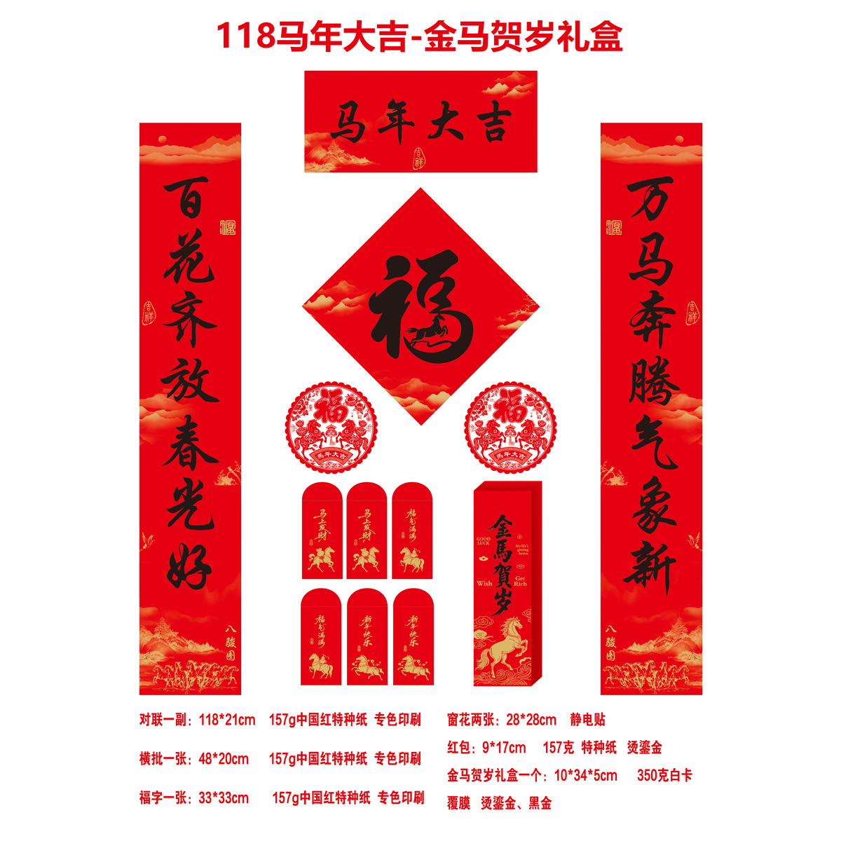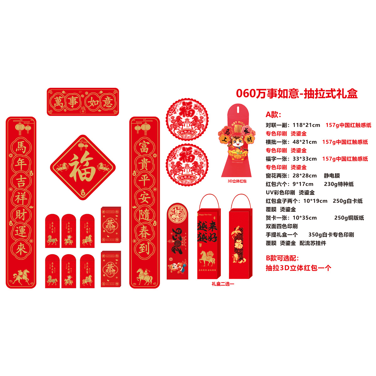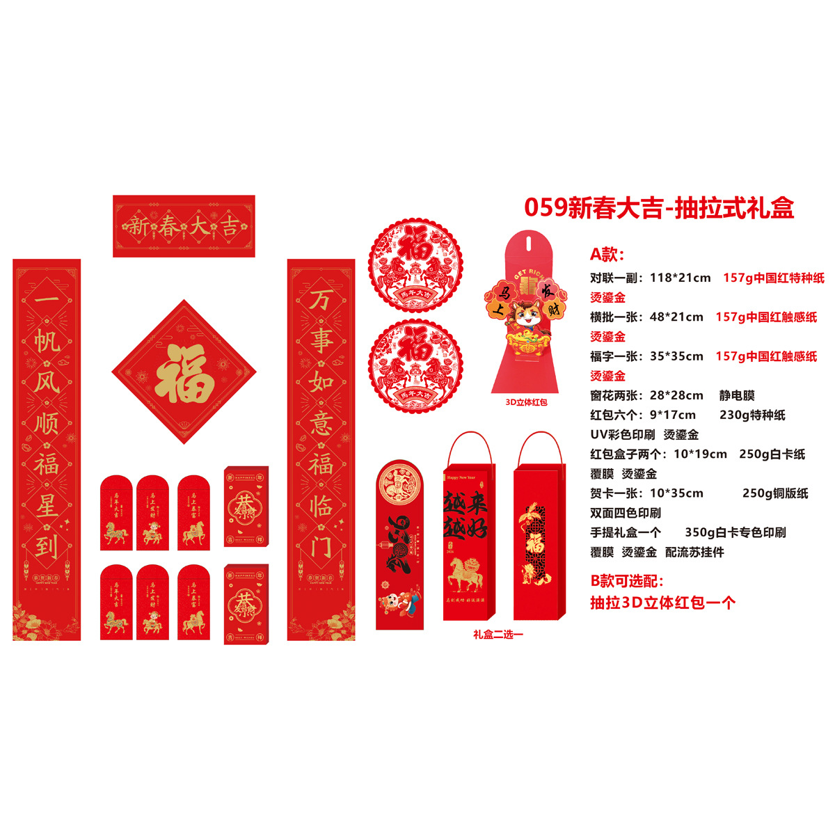 春联定制2026年马年新款春节对联礼盒广告企业logo可做专版抽拉盒