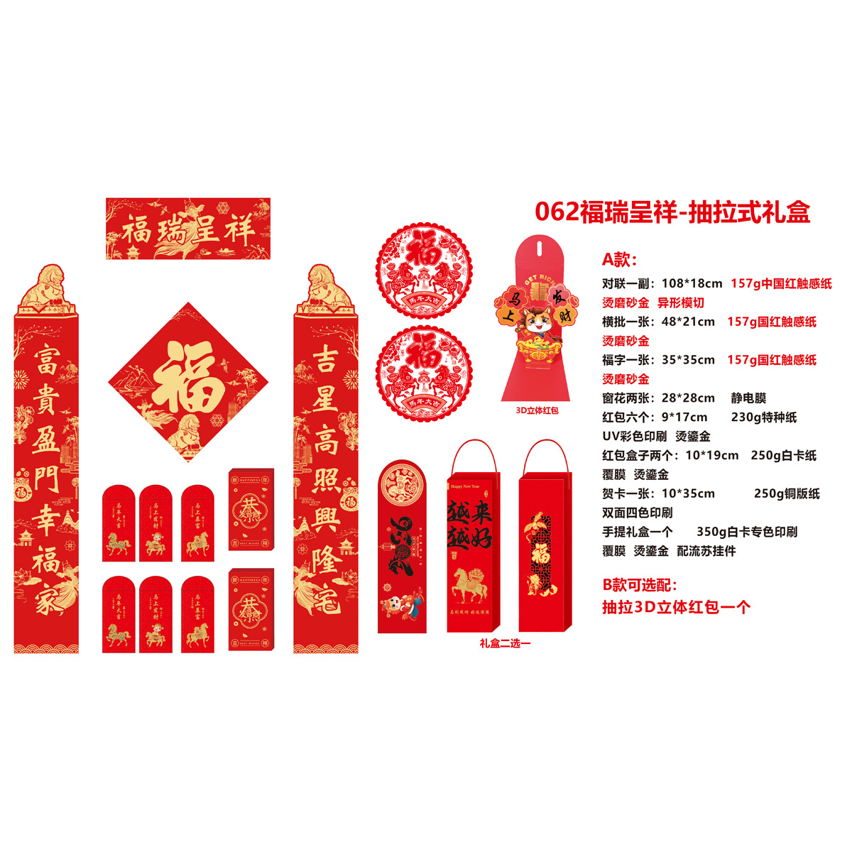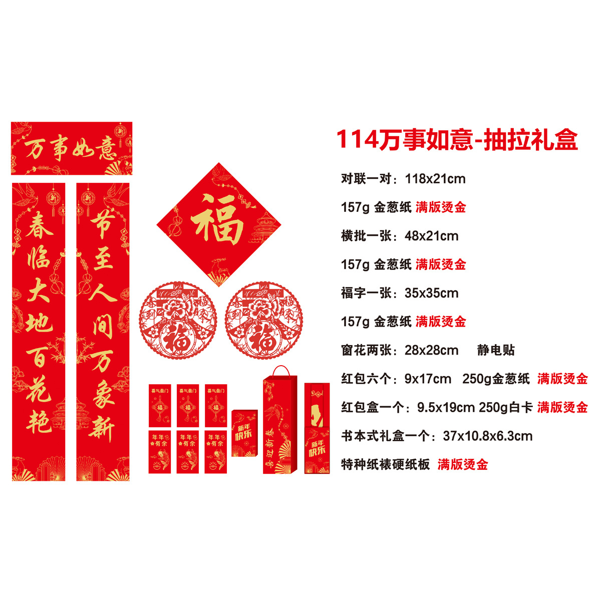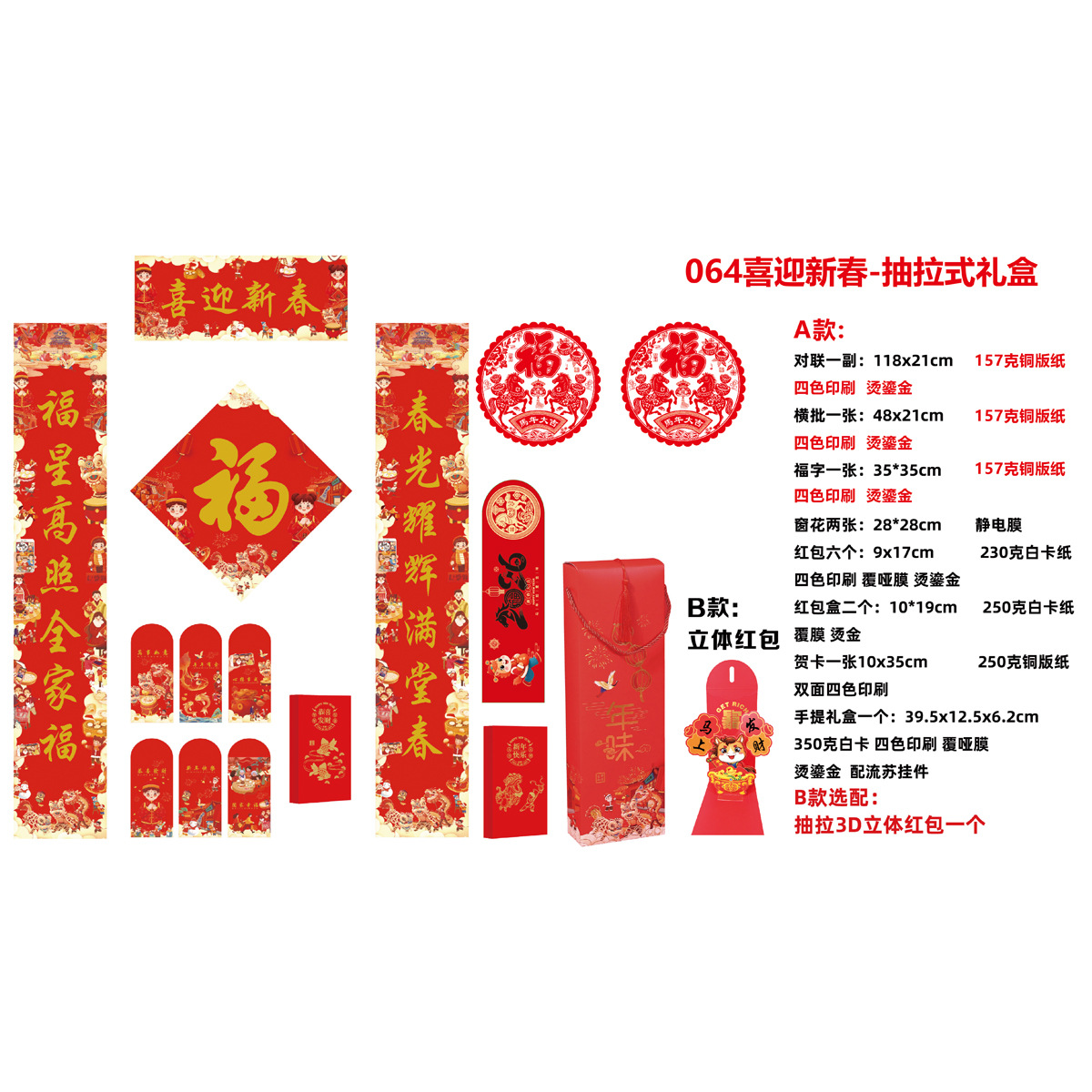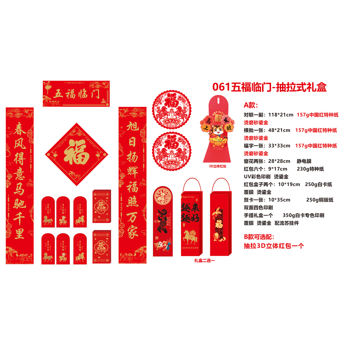 春联定制2026年马年新款春节对联礼盒广告企业logo可做专版抽拉盒