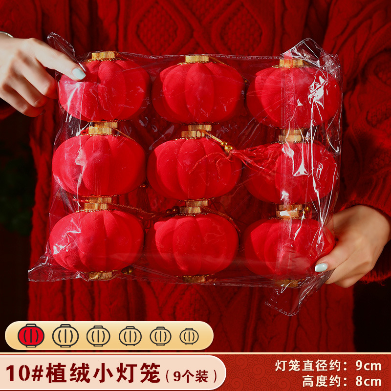 植绒小灯笼2026马年盆景挂饰新年灯笼春节过年装饰喜庆红灯笼摆摊