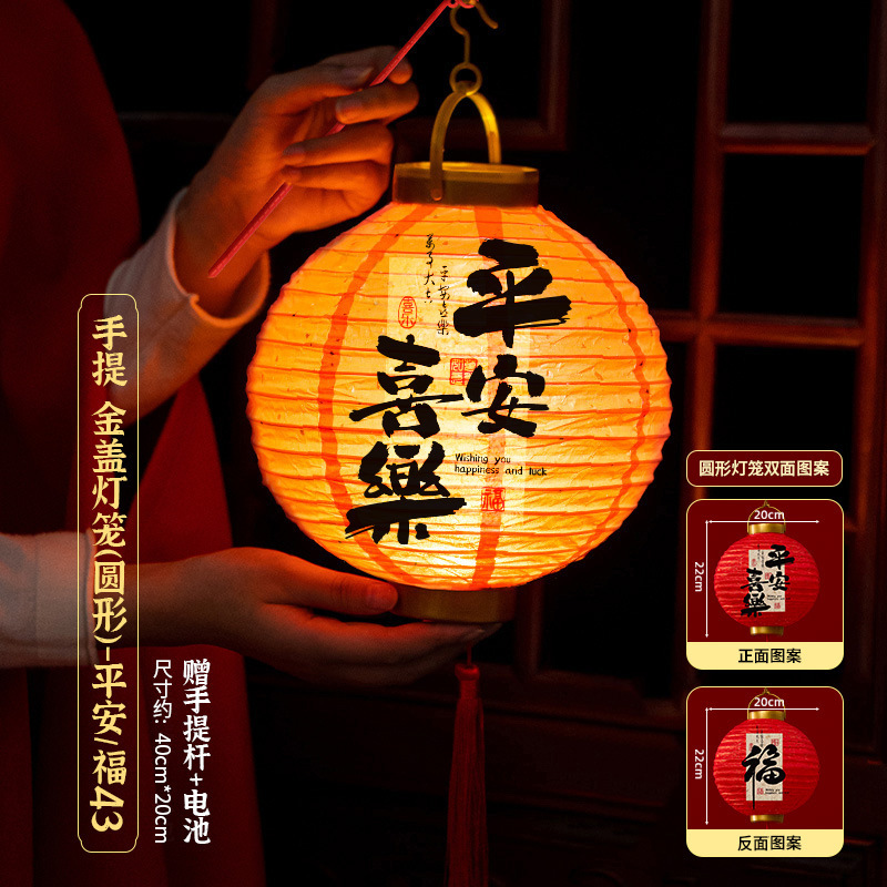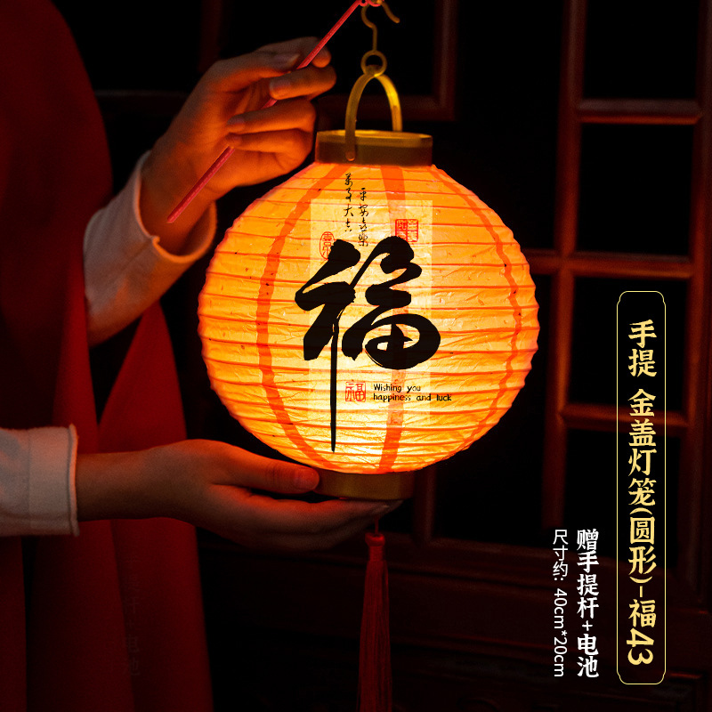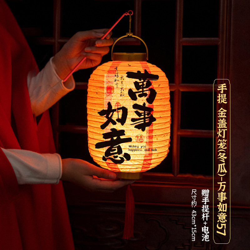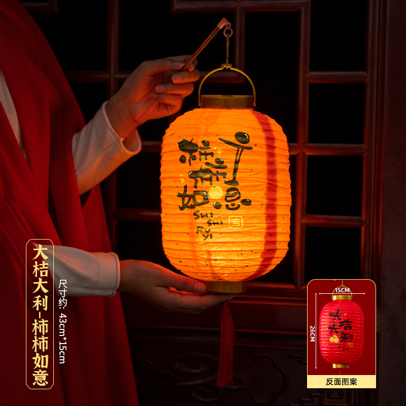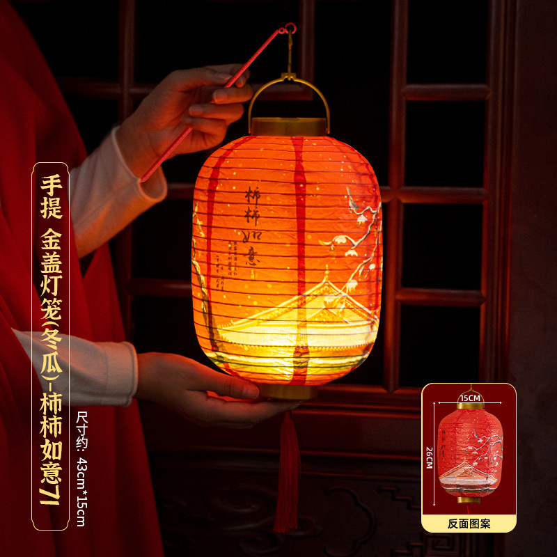 春节氛围挂饰柿柿如意国风金盖灯笼diy中式古风纸灯笼手提发光灯