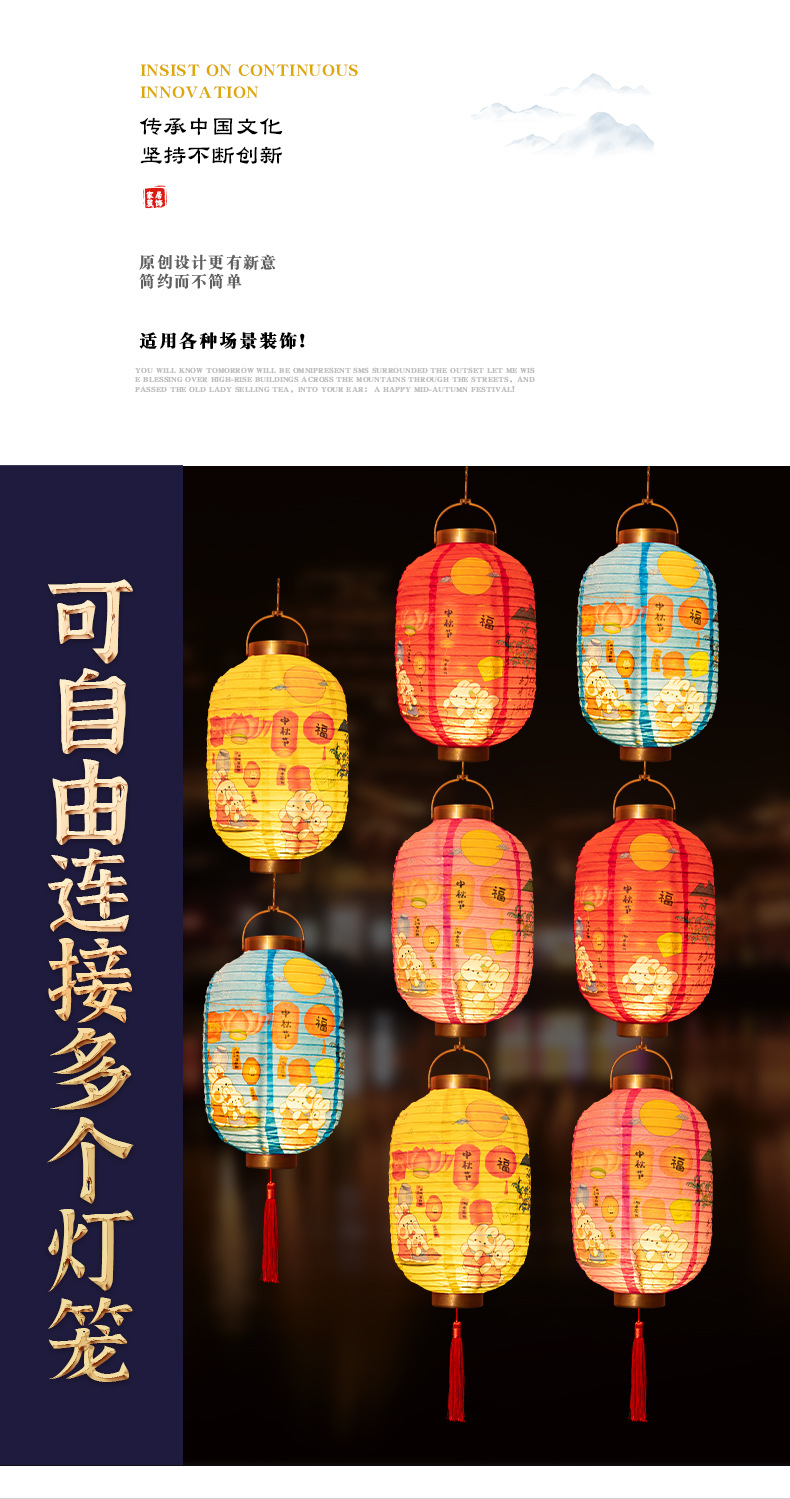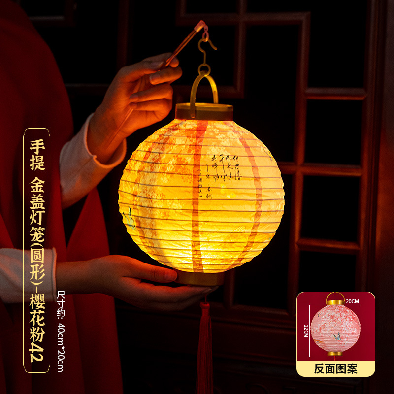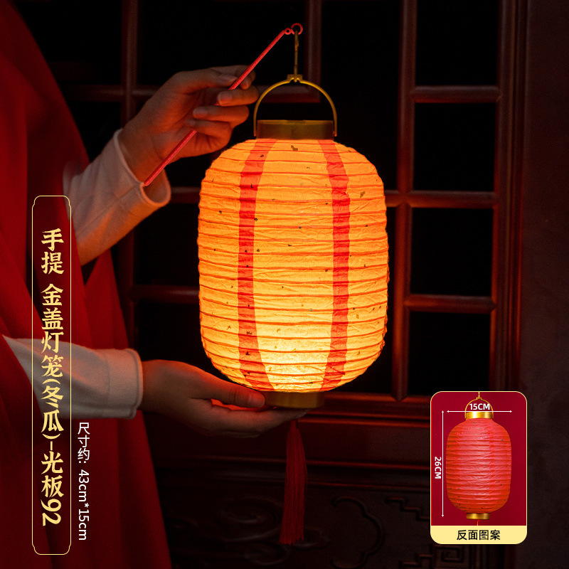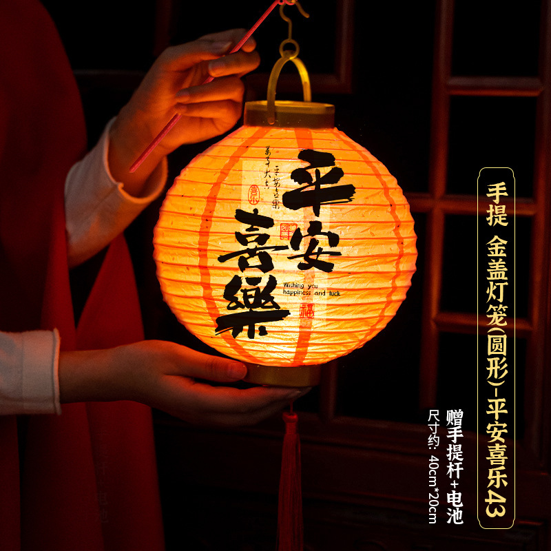 春节氛围挂饰柿柿如意国风金盖灯笼diy中式古风纸灯笼手提发光灯