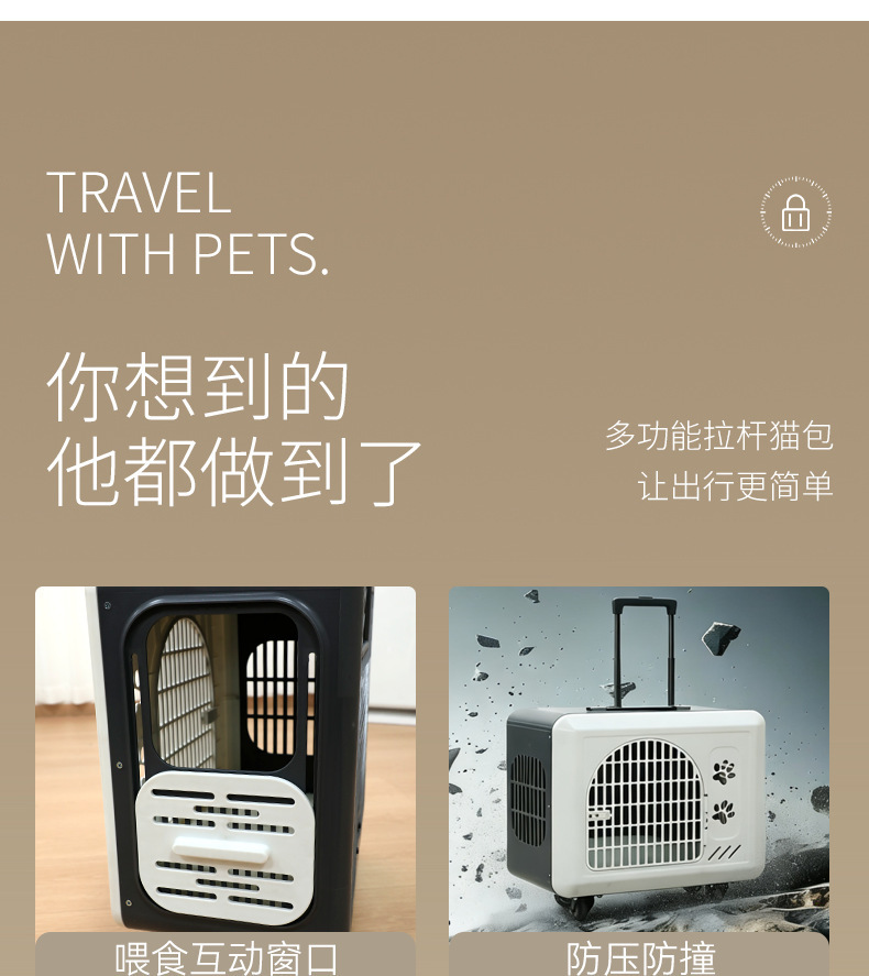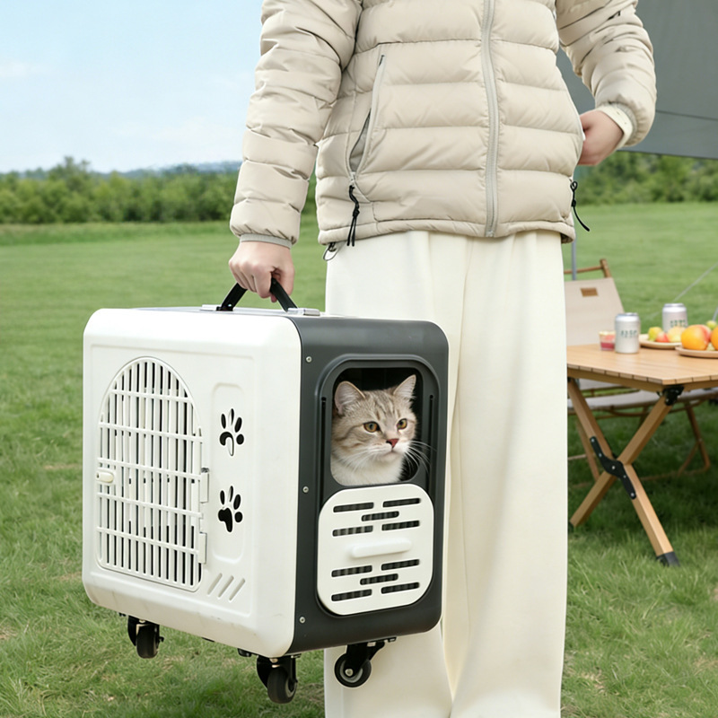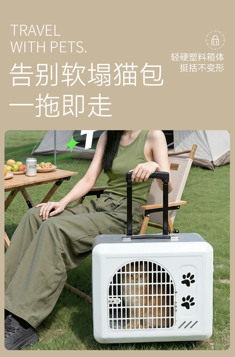 户外旅行宠物透气猫笼航空箱可折叠带轮拉杆箱便携手拉箱新品