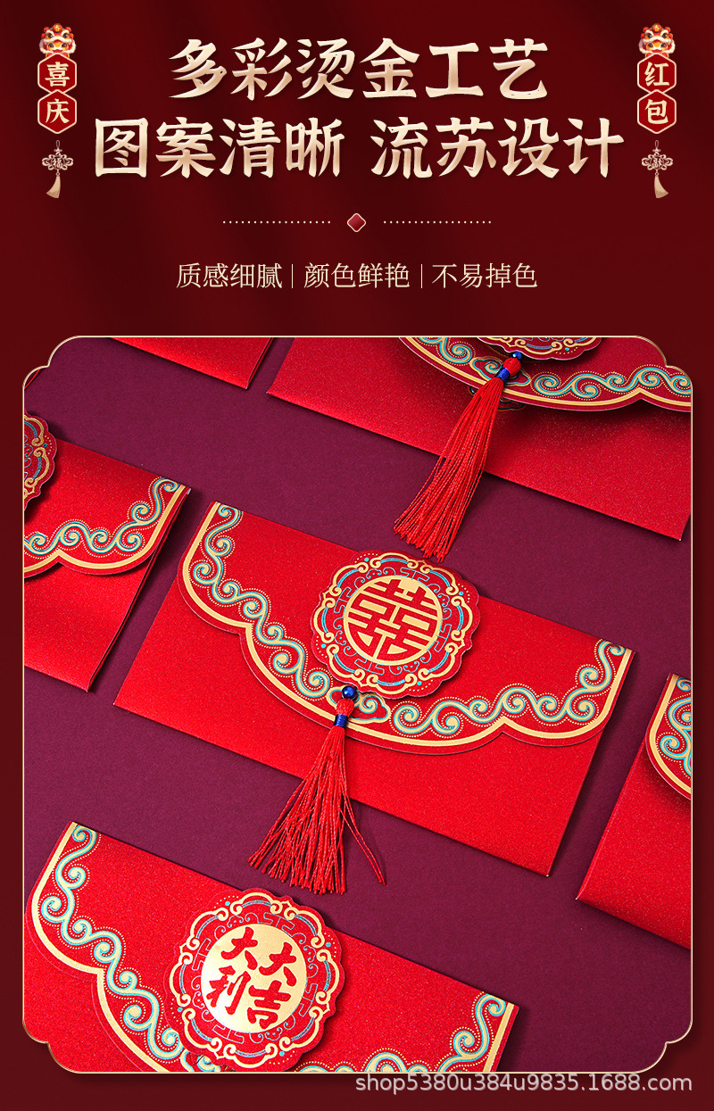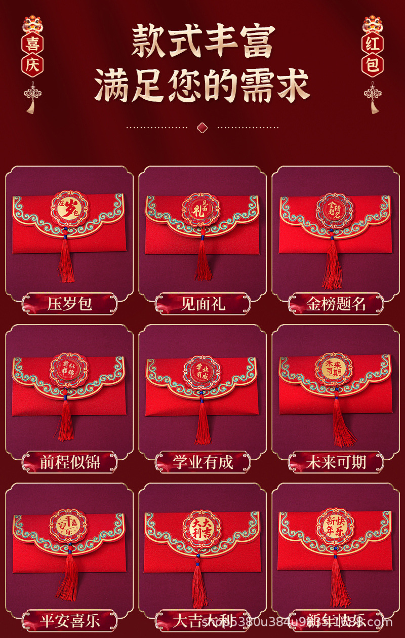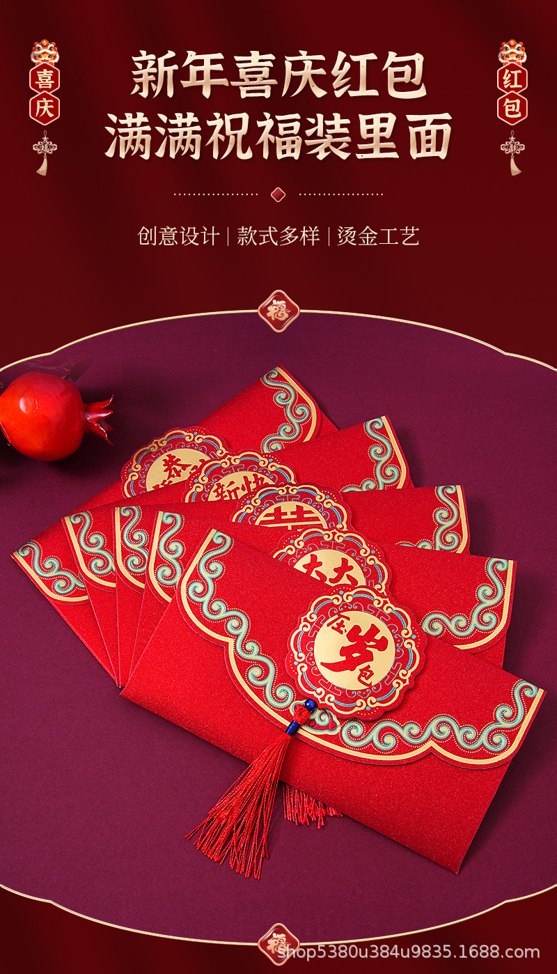 新年流苏2024新款万元红包批货婚庆结婚利是封春节压岁钱红包袋