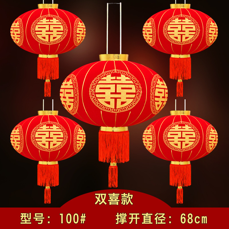 大红灯笼新款植绒长杆发泡K金灯笼春节新年灯笼装饰结婚喜子广告
