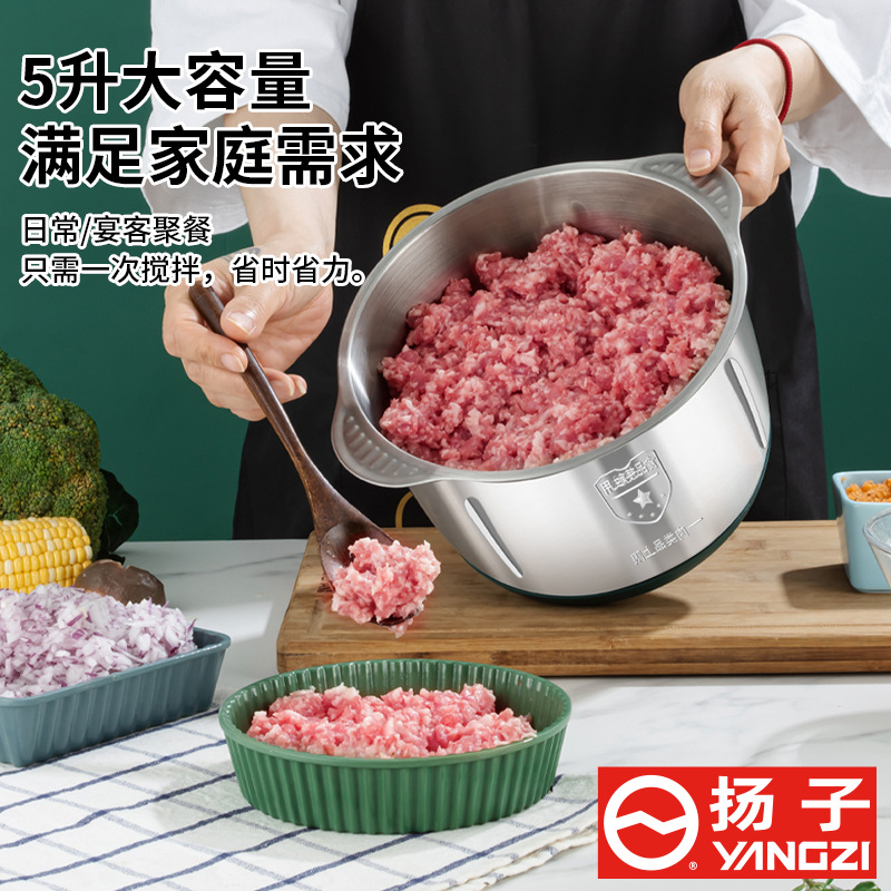 X扬子5升5档家用可和面绞菜一体料理机不锈钢大功率多用途绞肉机