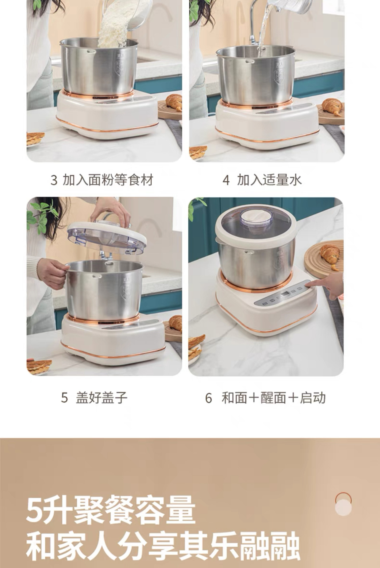 扬子5升和面机电动家用全自动揉面机大容量打面发面醒面和面机