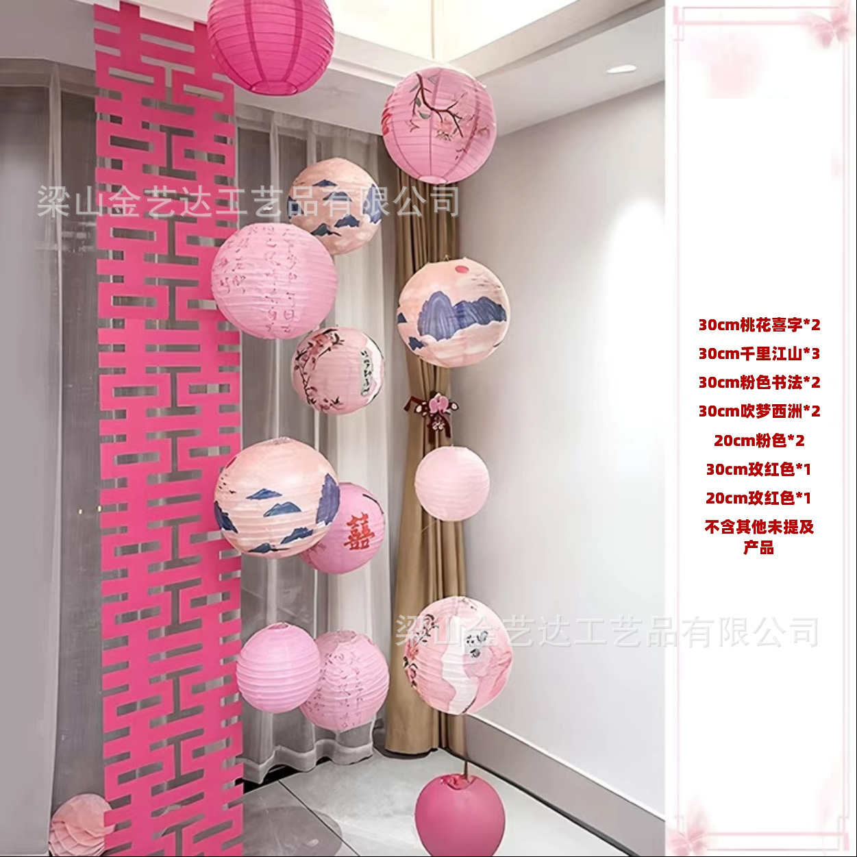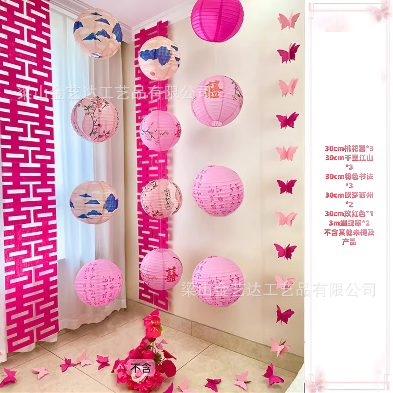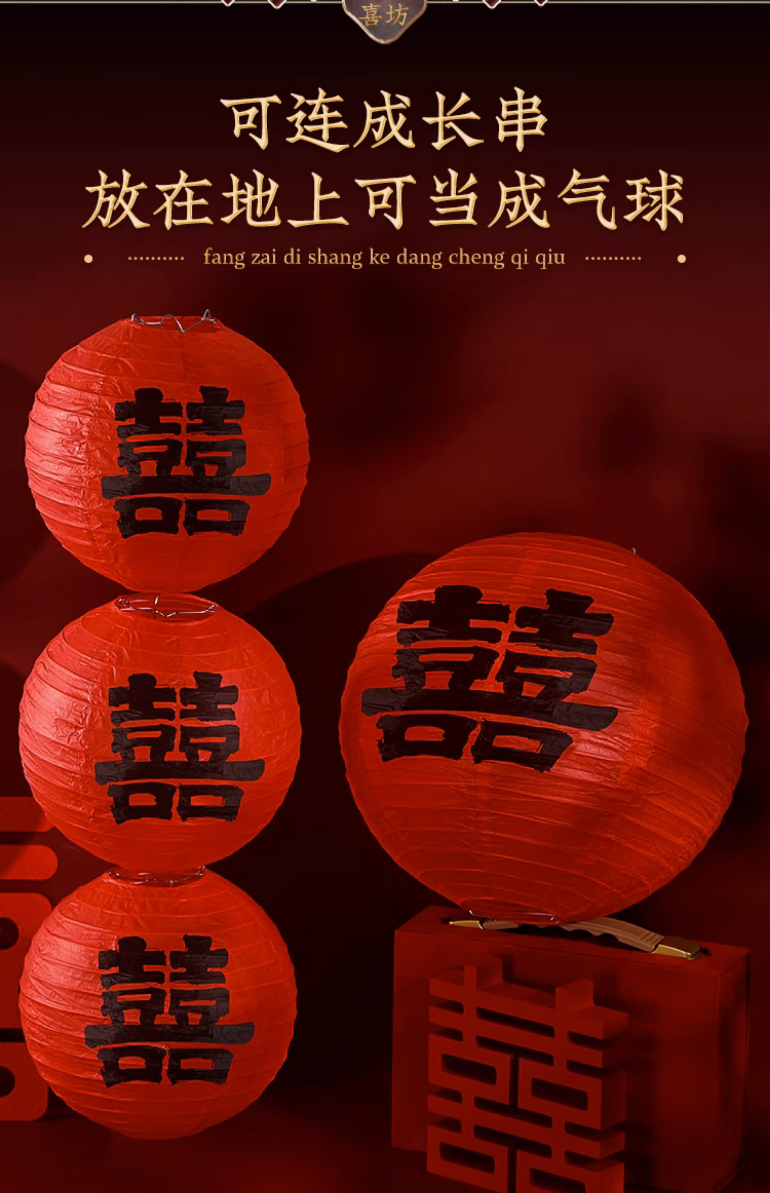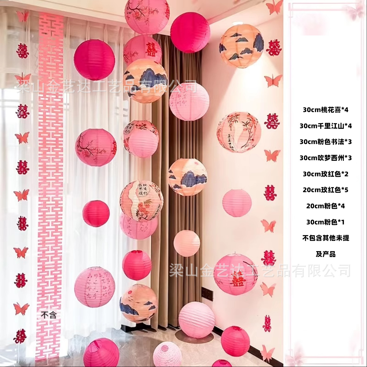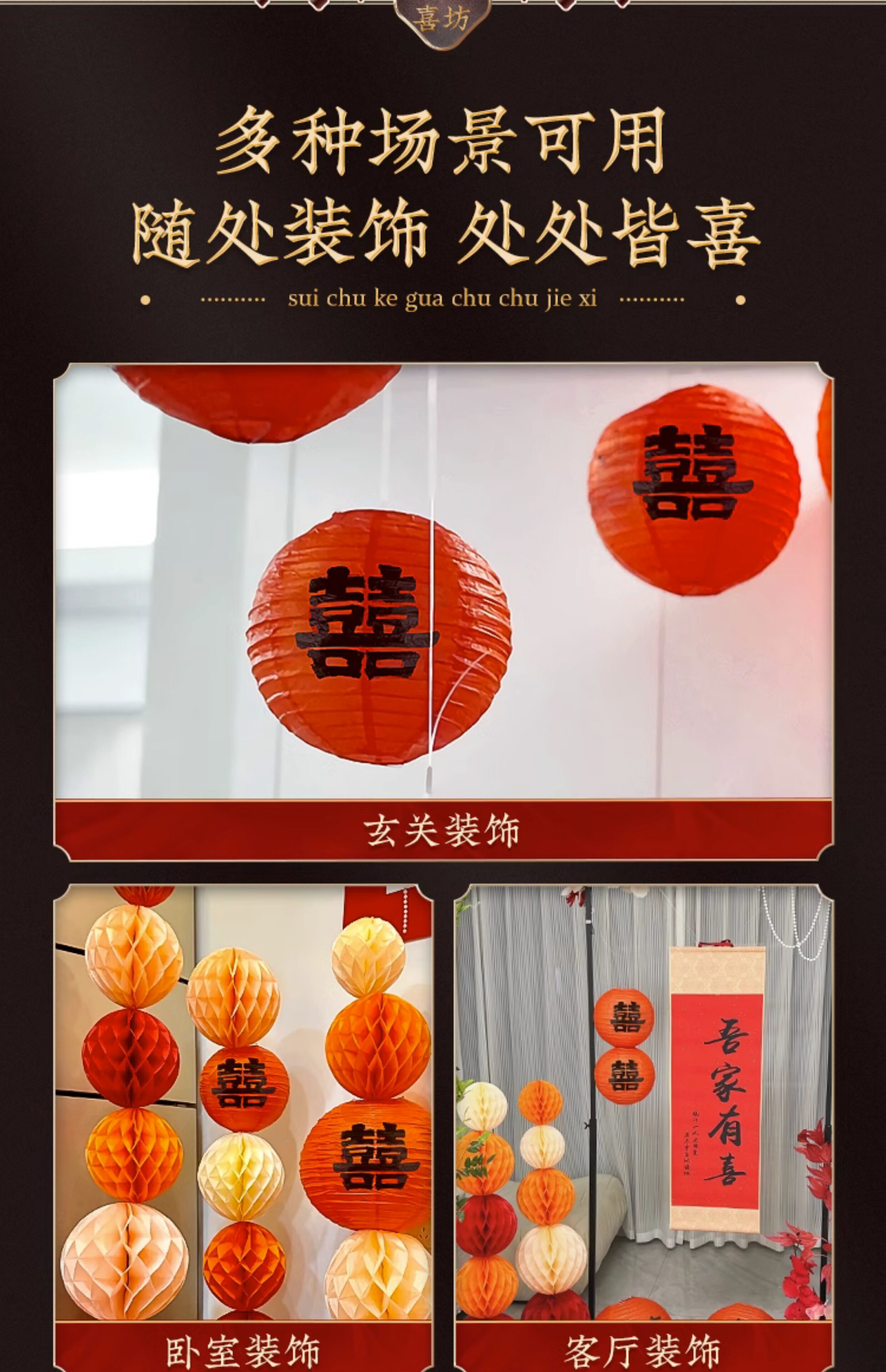婚房布置喜字纸灯笼挂饰楼梯结婚装饰蜂窝球结婚灯笼订婚礼装饰品