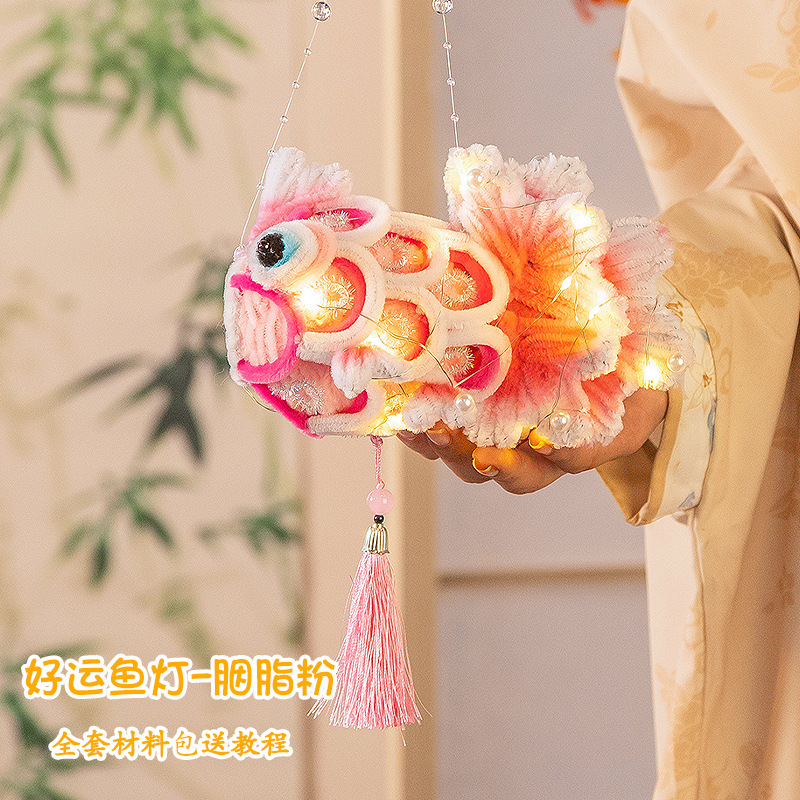 新年灯笼国潮金鱼灯手工diy材料过年手提发光锦鲤花灯马年纸灯笼