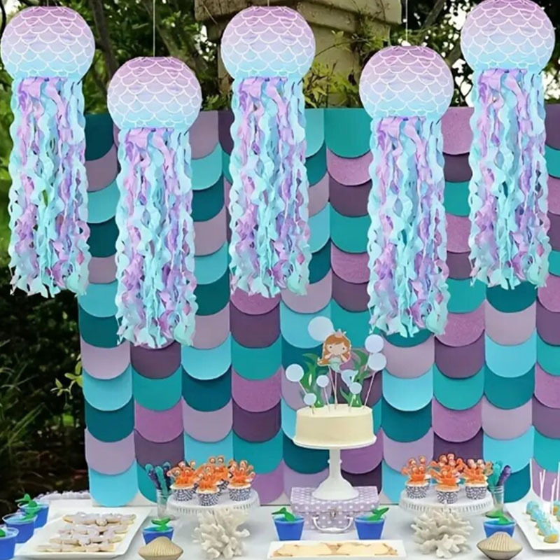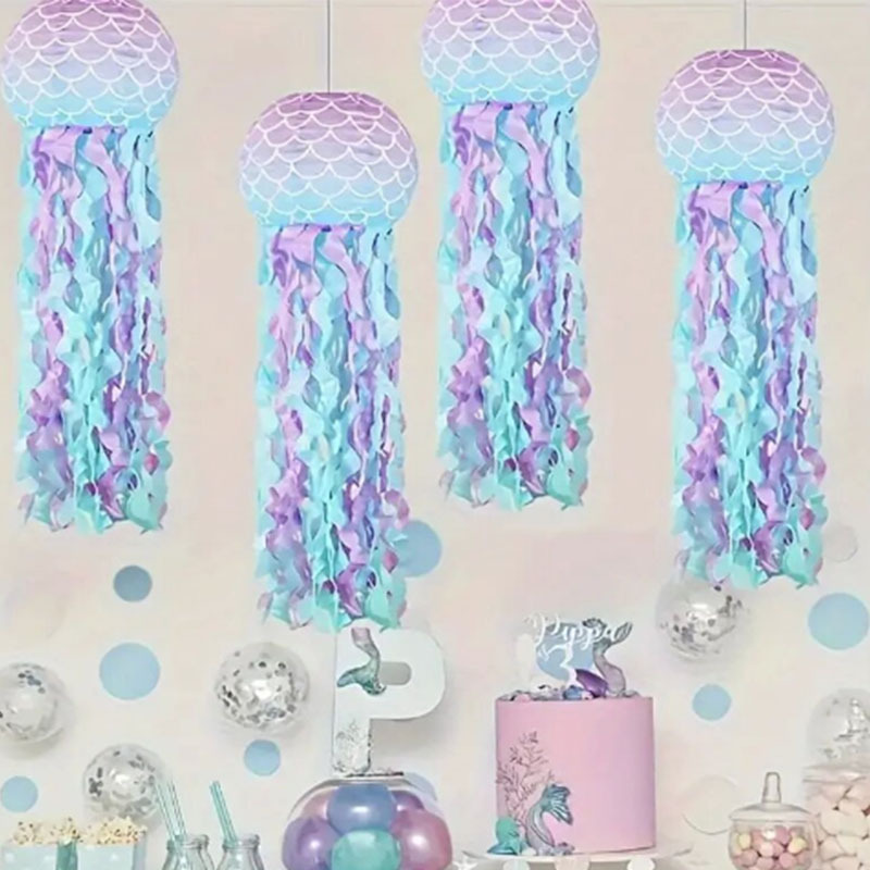 跨境专供儿童创意悬挂美人鱼水母灯笼 生日派对场景布置房间装饰