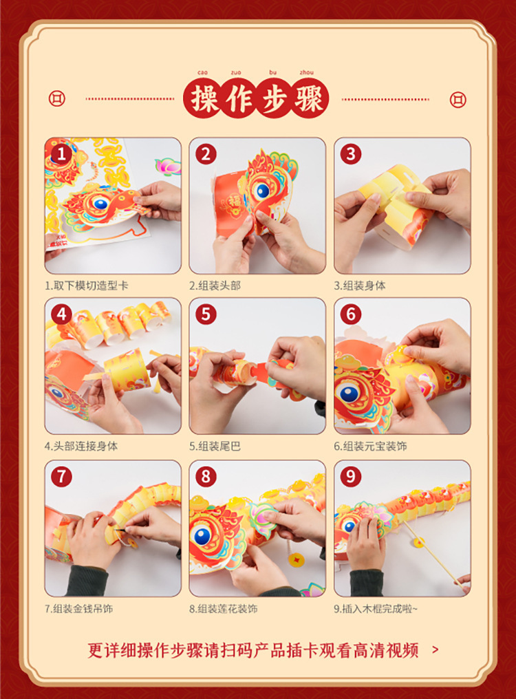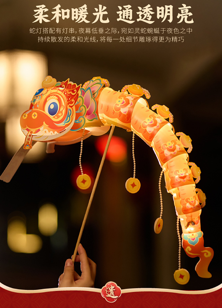 马年新春手工diy吉祥舞蛇灯笼儿童制作材料手提发光国潮花灯批发