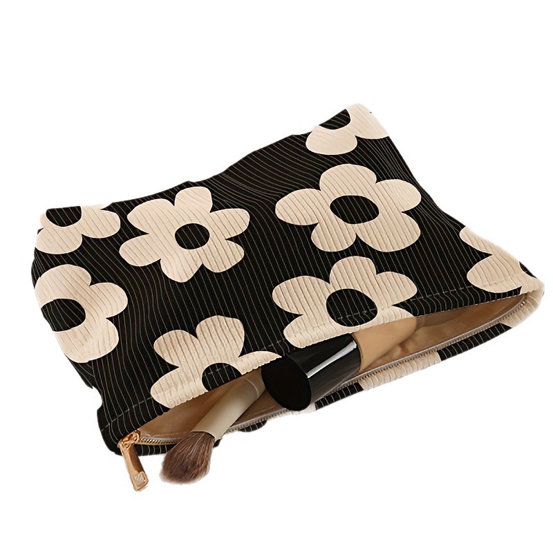 化妆包 绒布黑菊手提丝印化妆收纳包复古气质便携女士手拿包