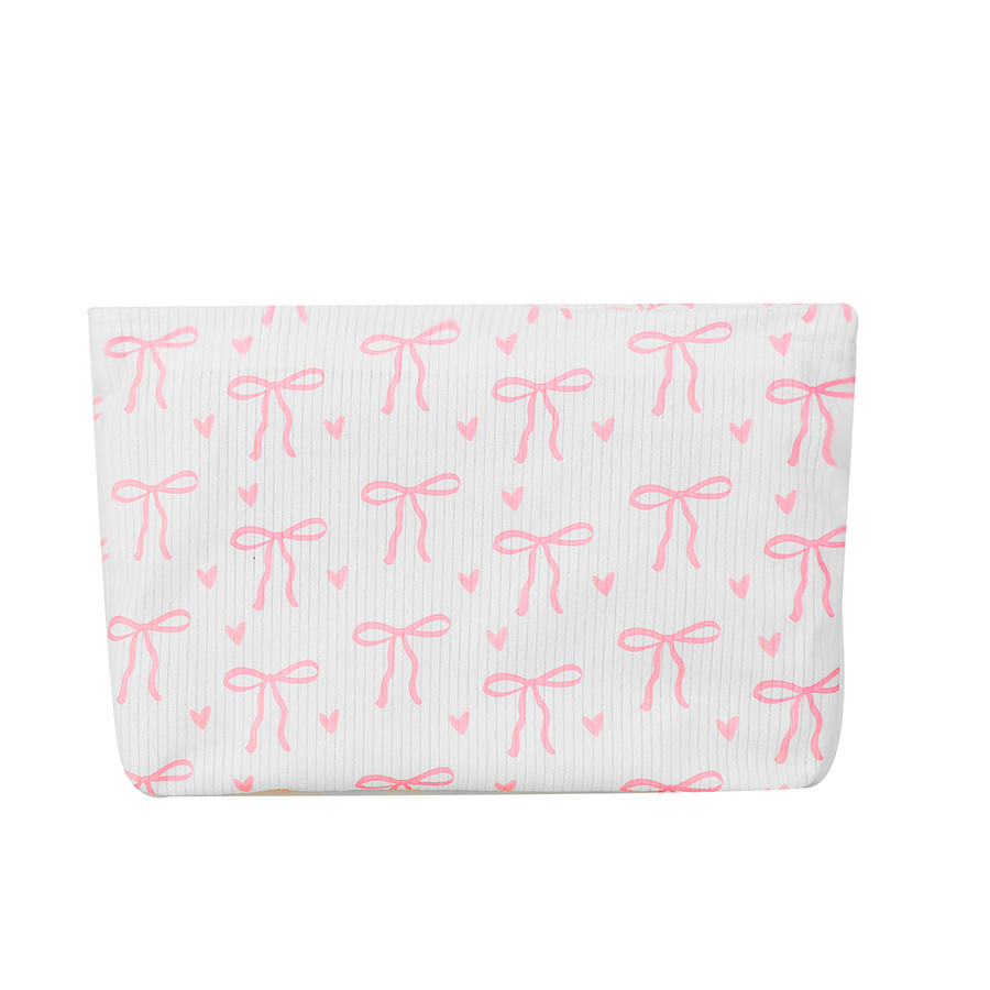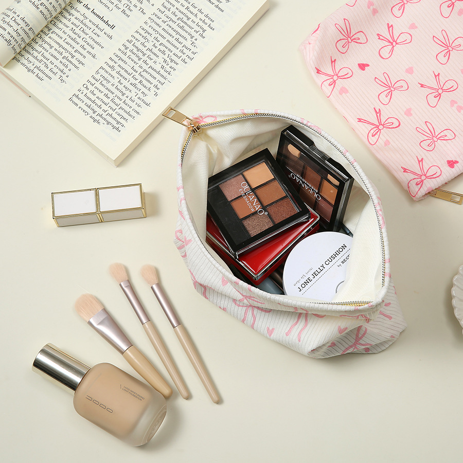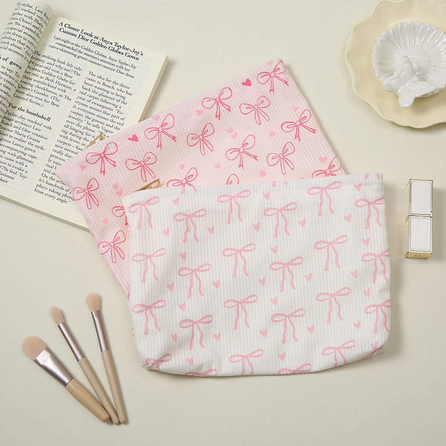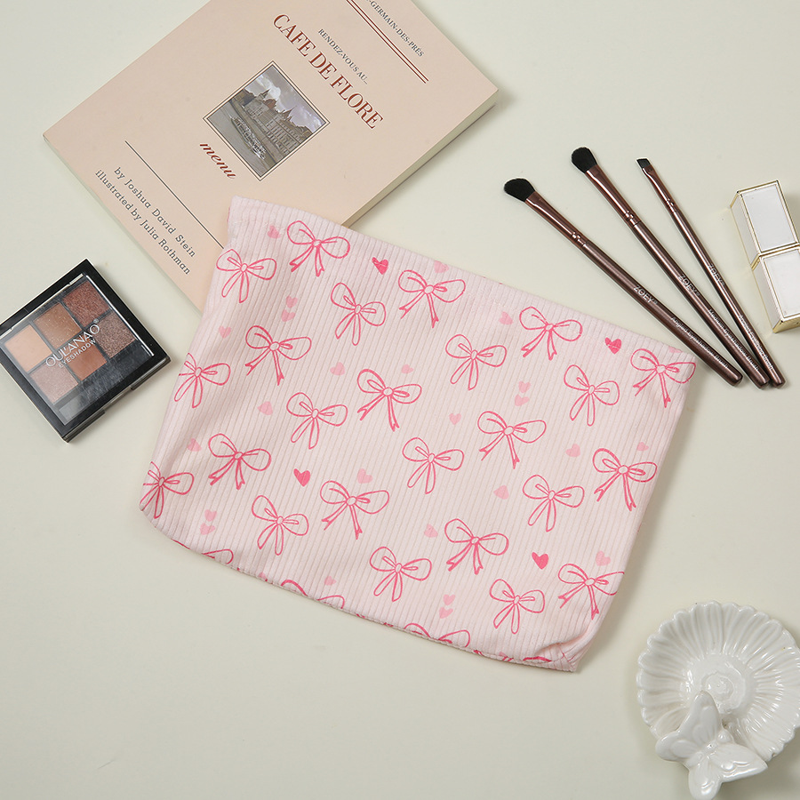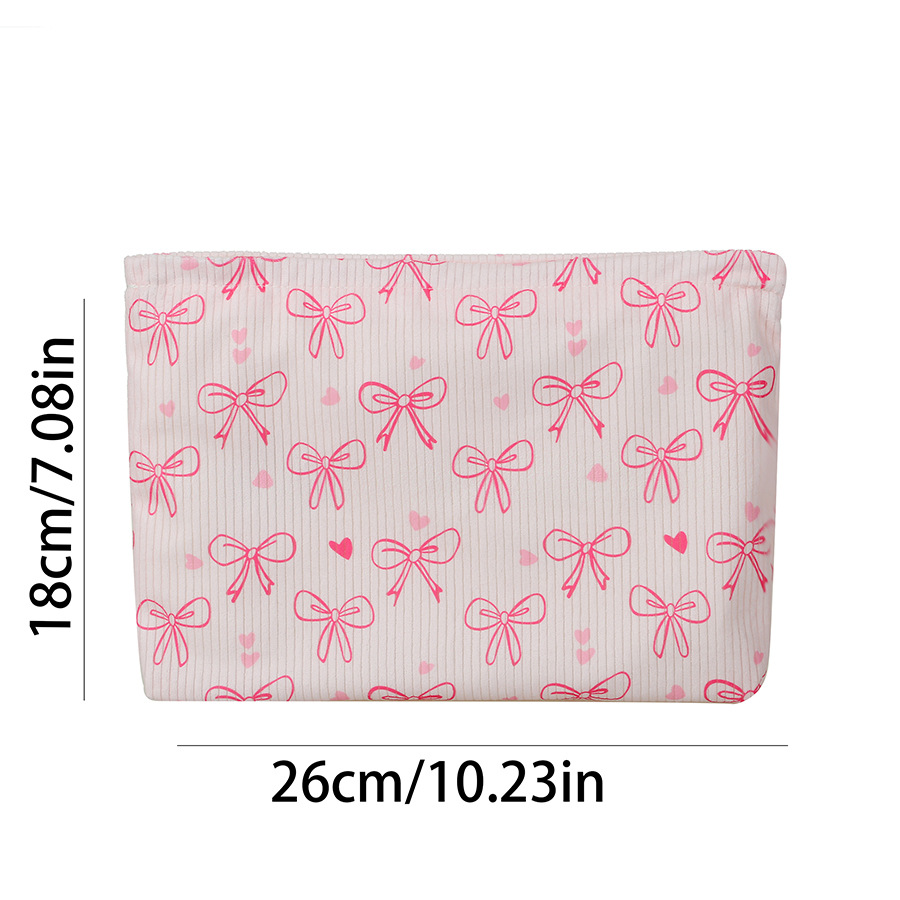 彩色大蝴蝶结印花图灯芯绒拉链收纳袋轻便化妆包文艺日系透气