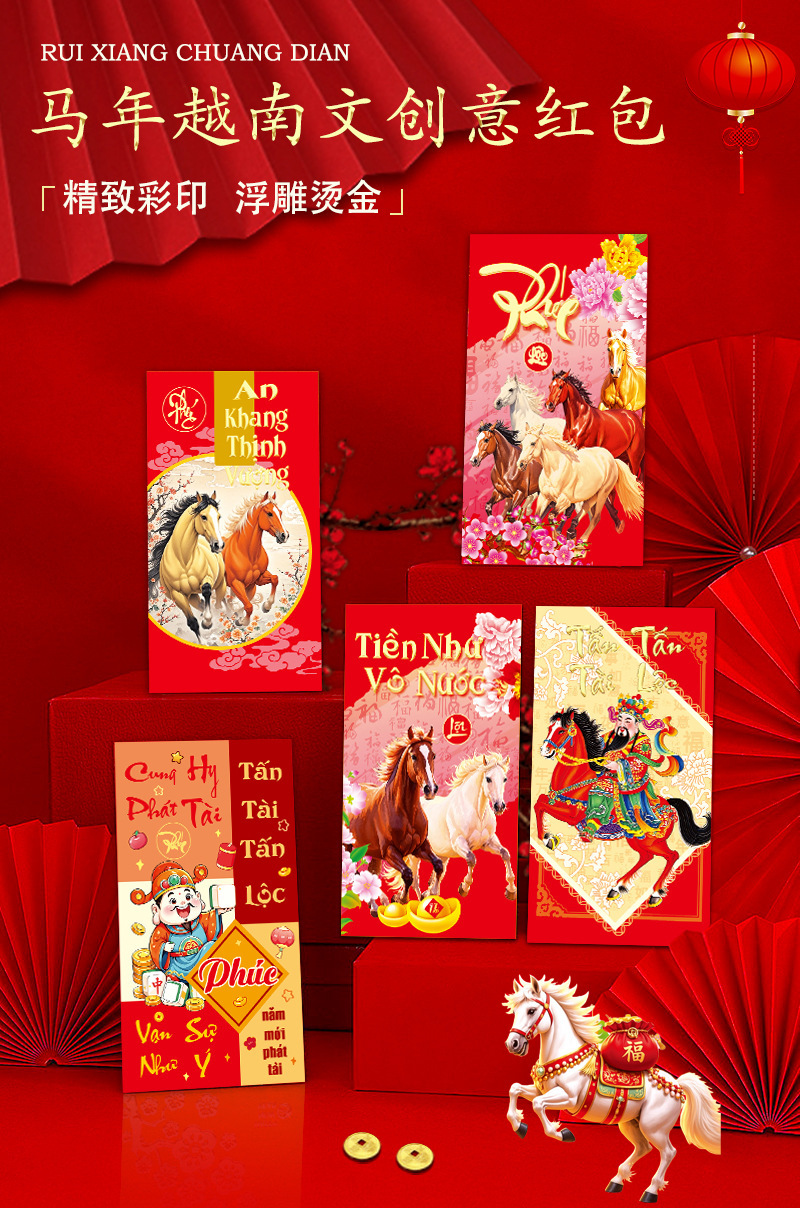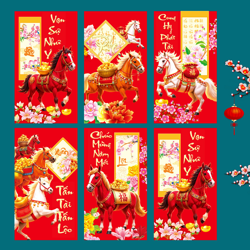 臻婷厂家2026马年越南文红包新款创意卡通利是封马生肖新年红包袋