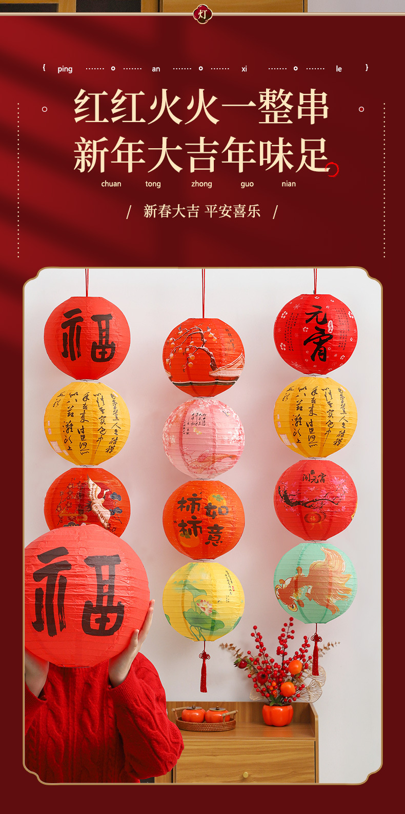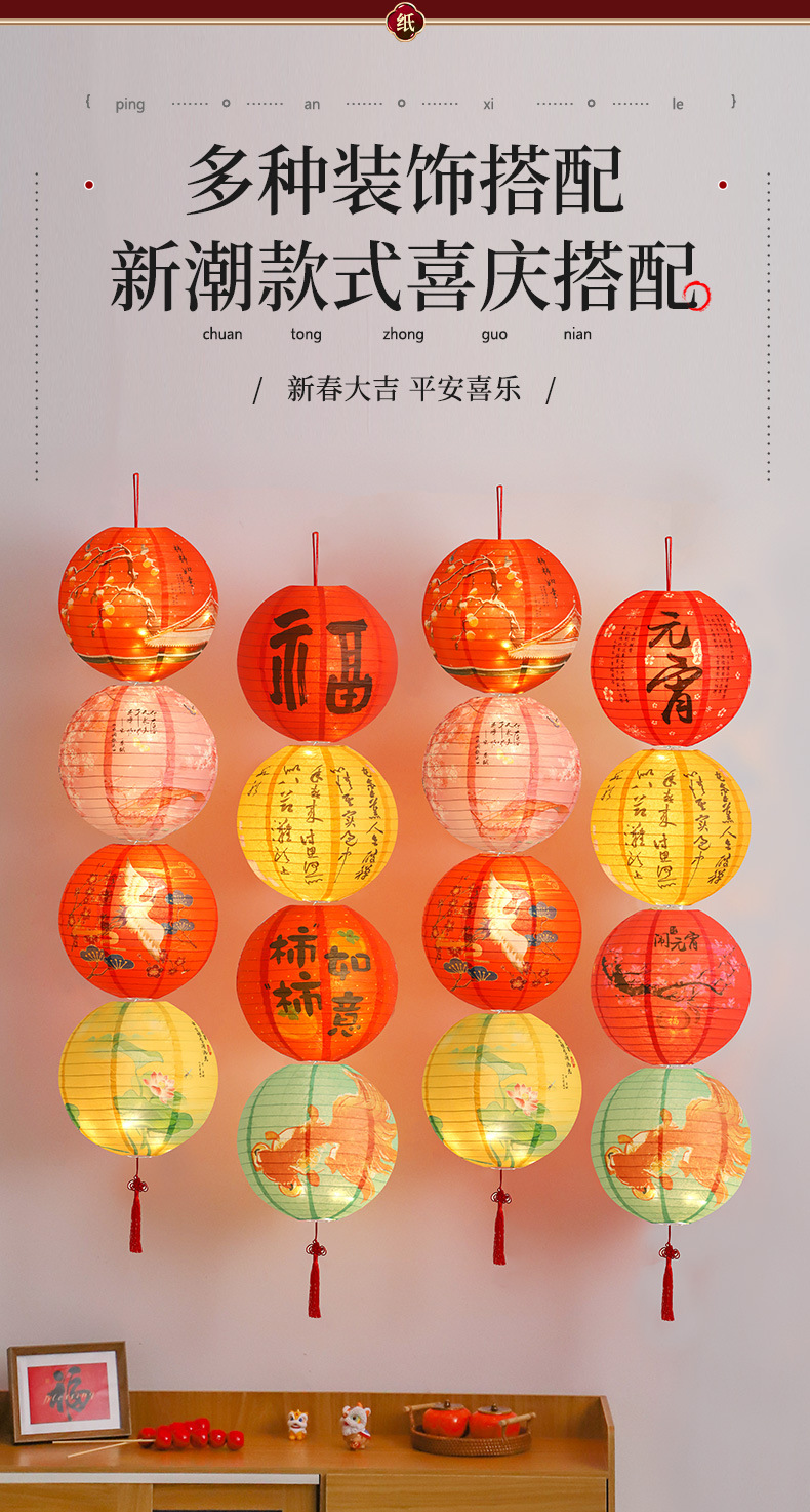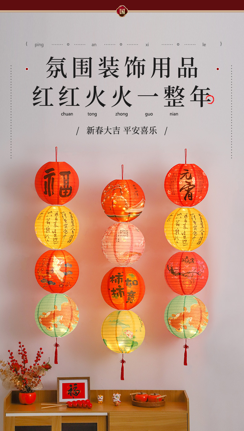 工厂批发春节灯笼12寸氛围感挂饰猜灯谜道具装饰商场景区布置灯笼