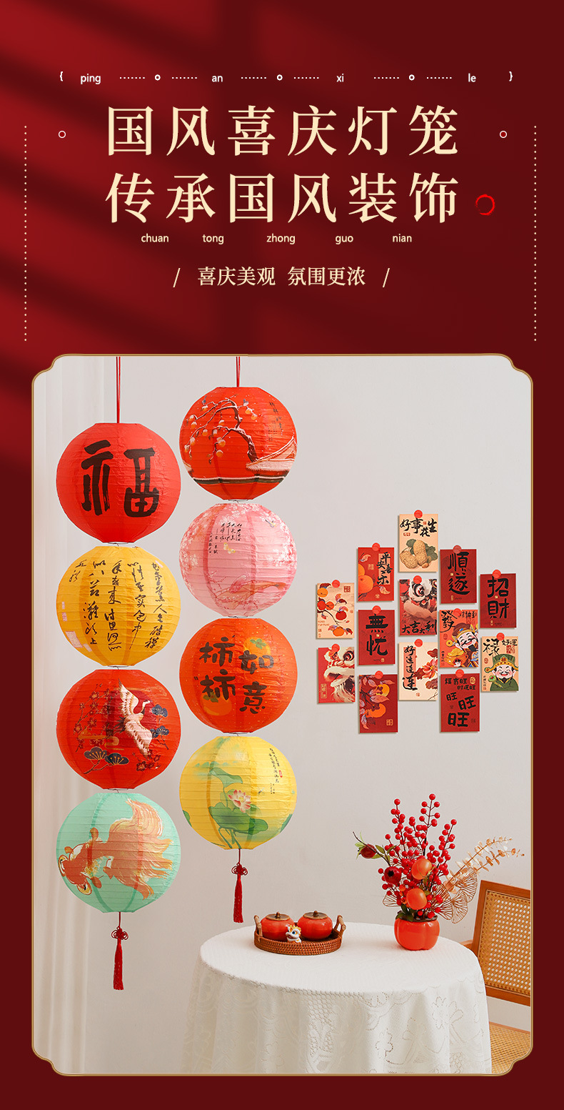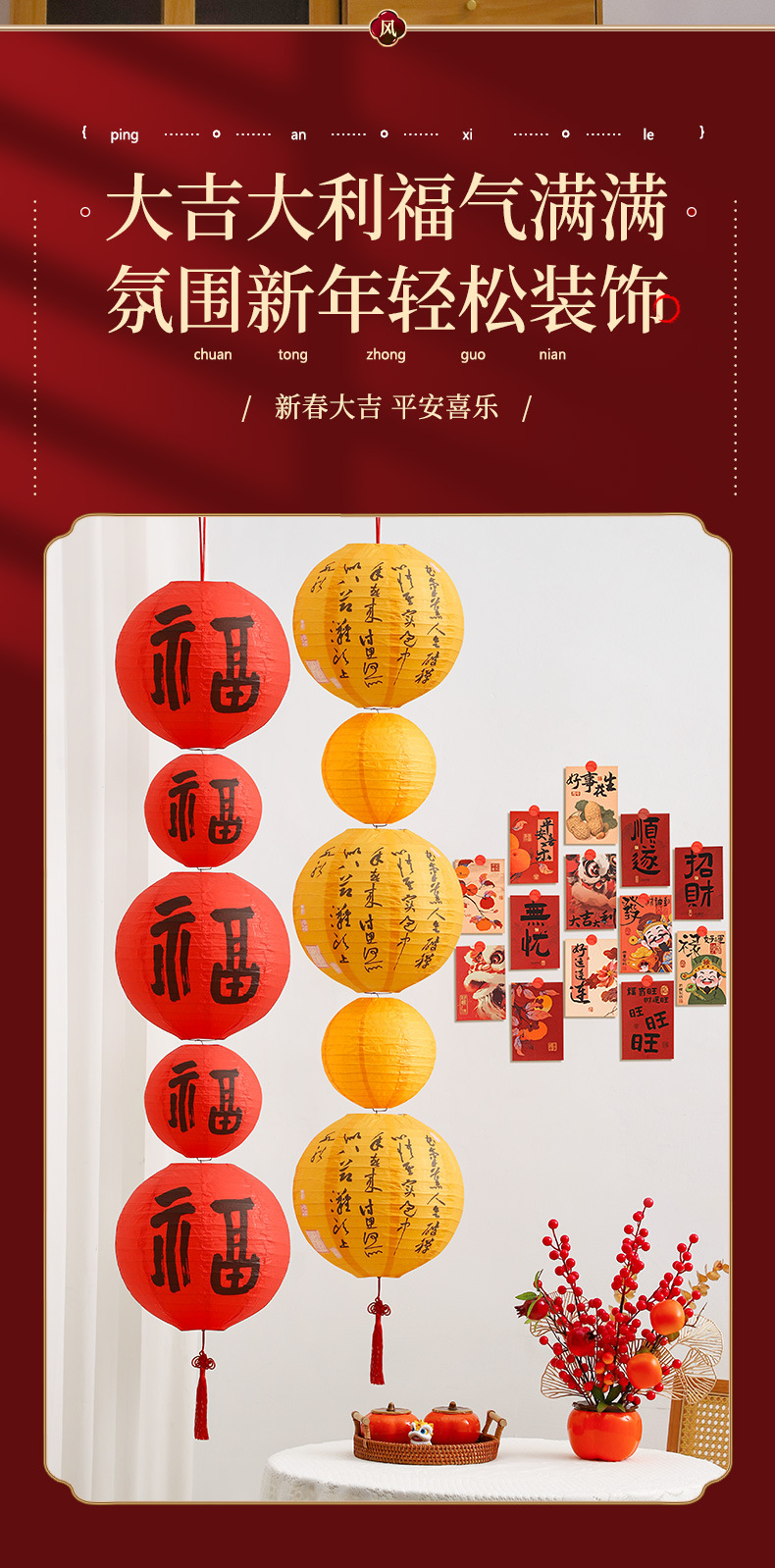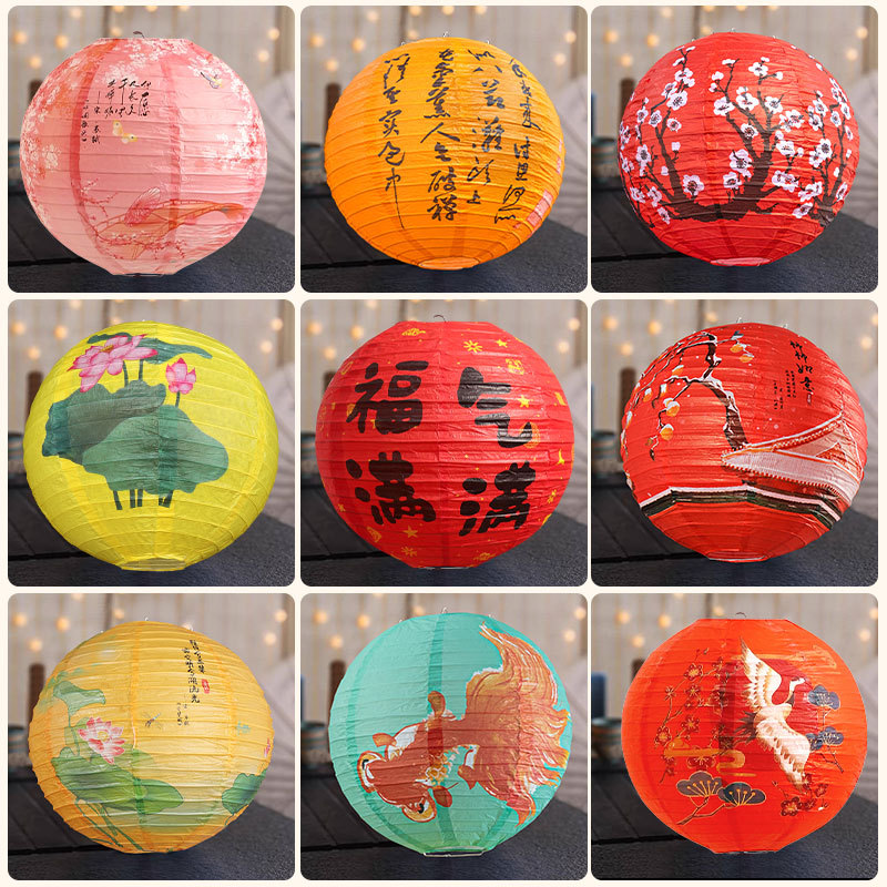 工厂批发春节灯笼12寸氛围感挂饰猜灯谜道具装饰商场景区布置灯笼