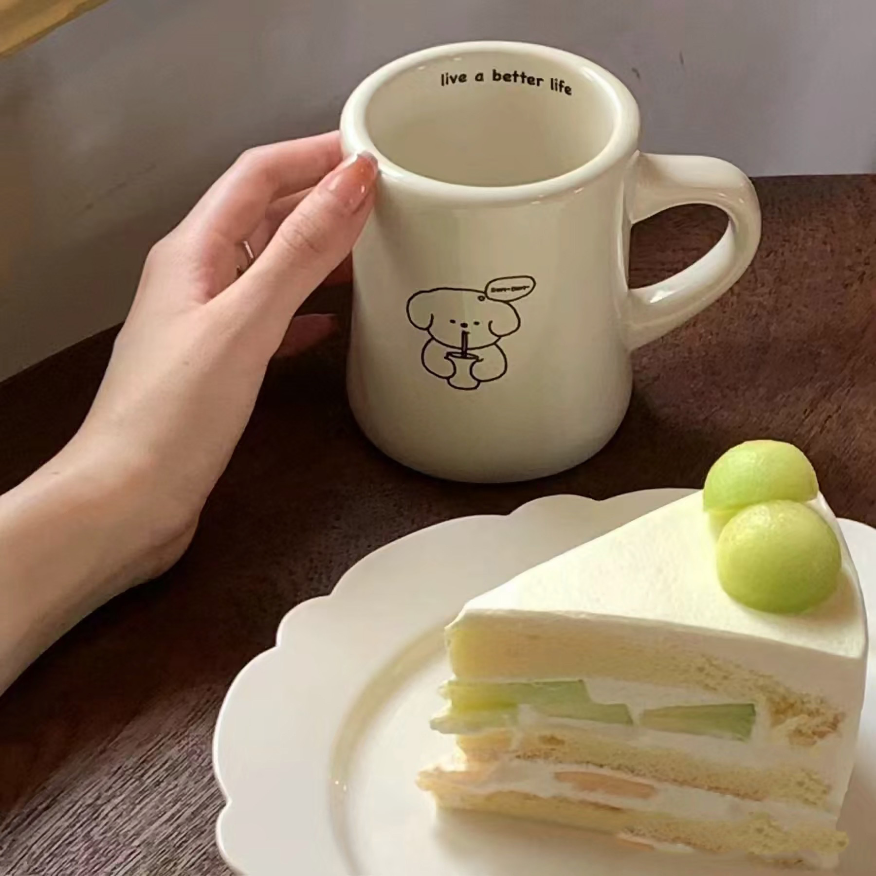 米色收腰马克杯定 制LOGO网红陶瓷杯ins咖啡杯卡通广告杯