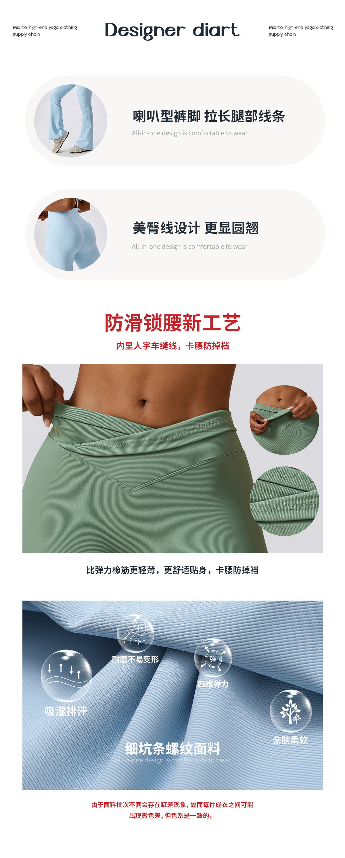 交叉高腰瑜伽喇叭裤女舞蹈运动阔腿裤休闲提臀健身微喇裤