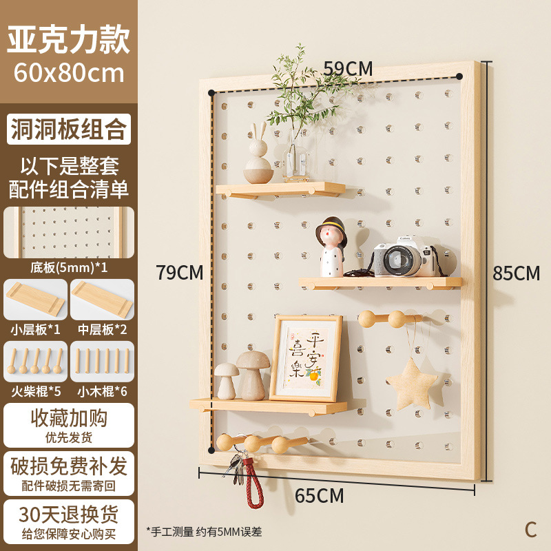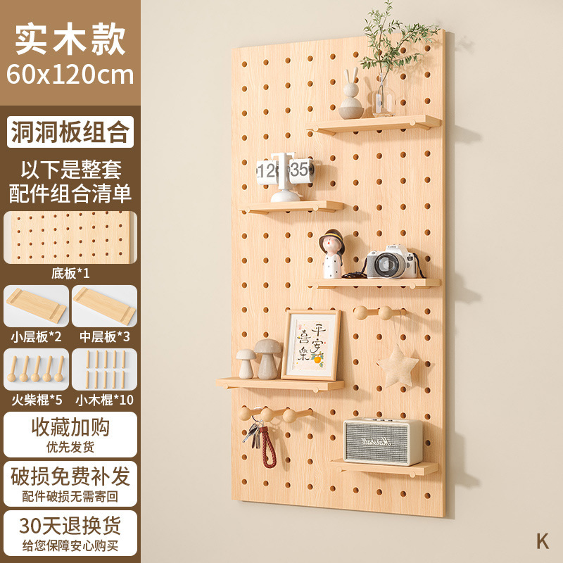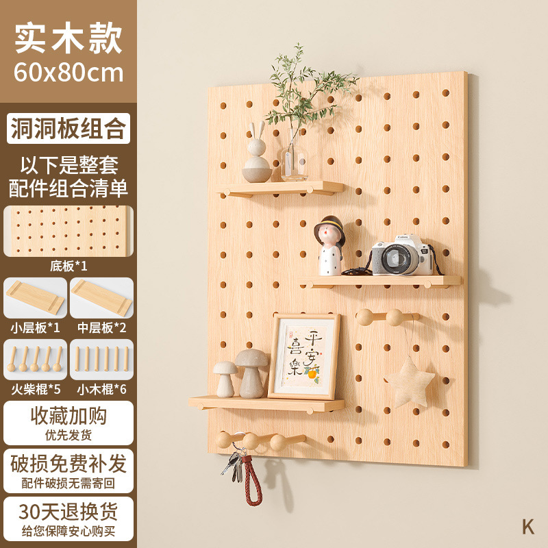 实木墙上洞洞板组合挂钩置物架卧室墙面收纳架玄关装饰展示架挂板