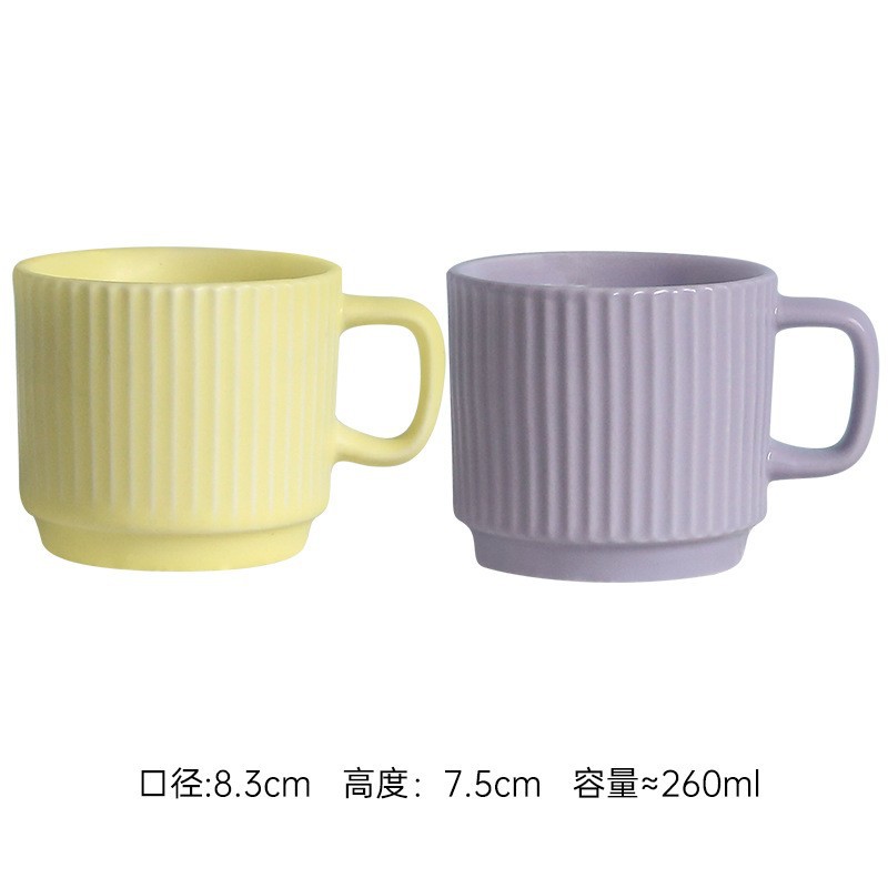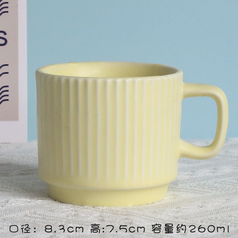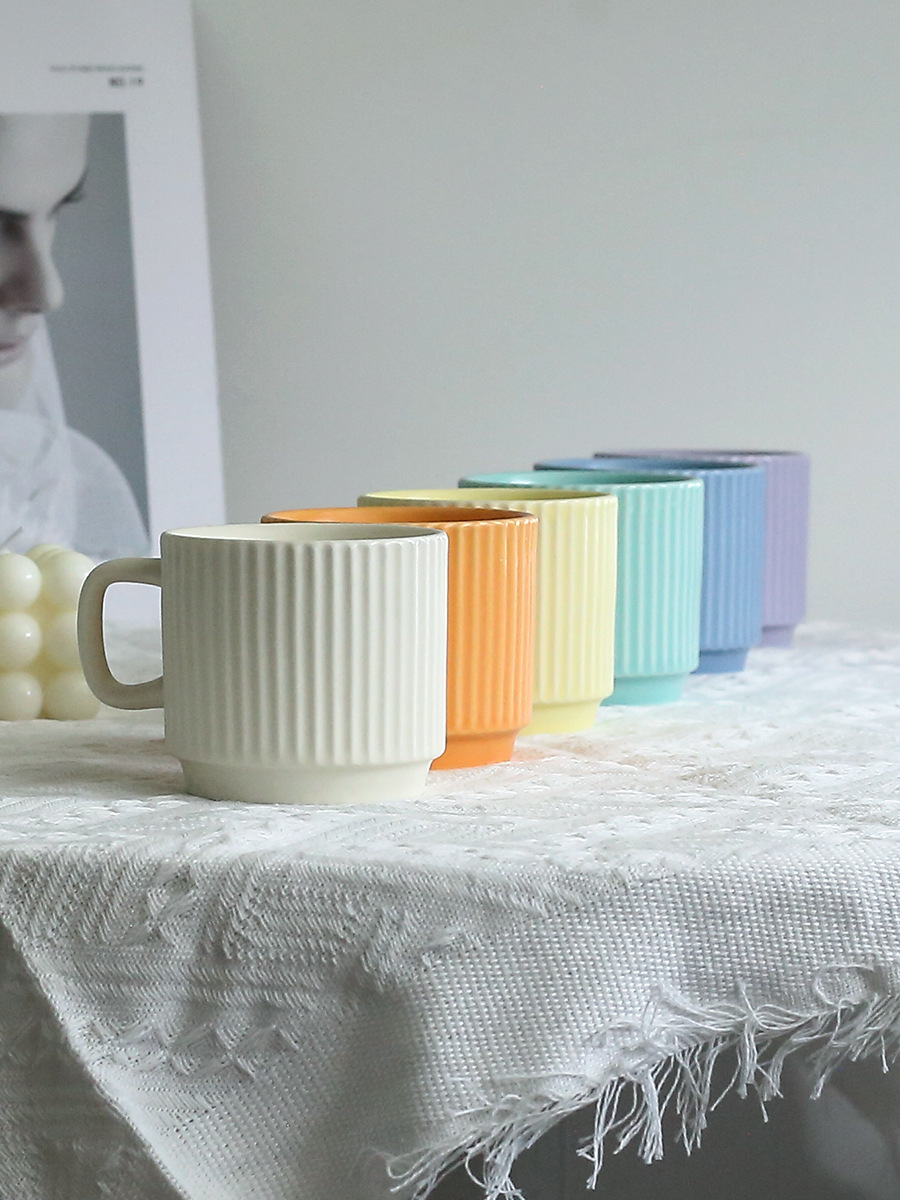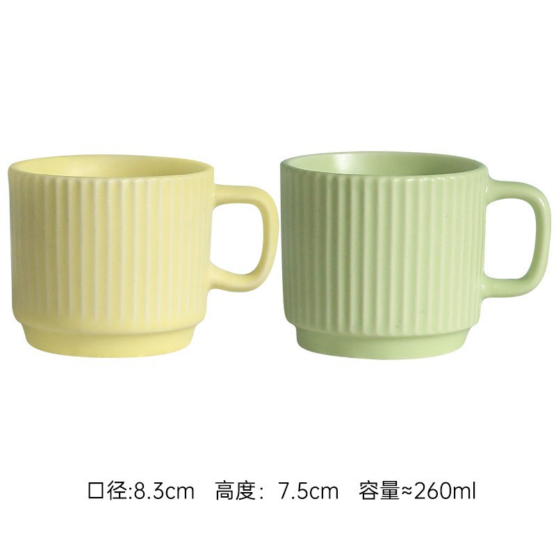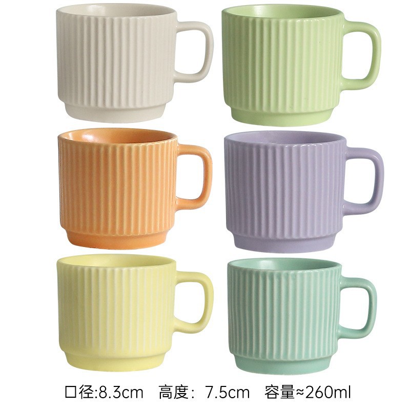 简约马克杯创意女生陶瓷杯学生咖啡杯早餐牛奶杯马卡龙色条纹杯子