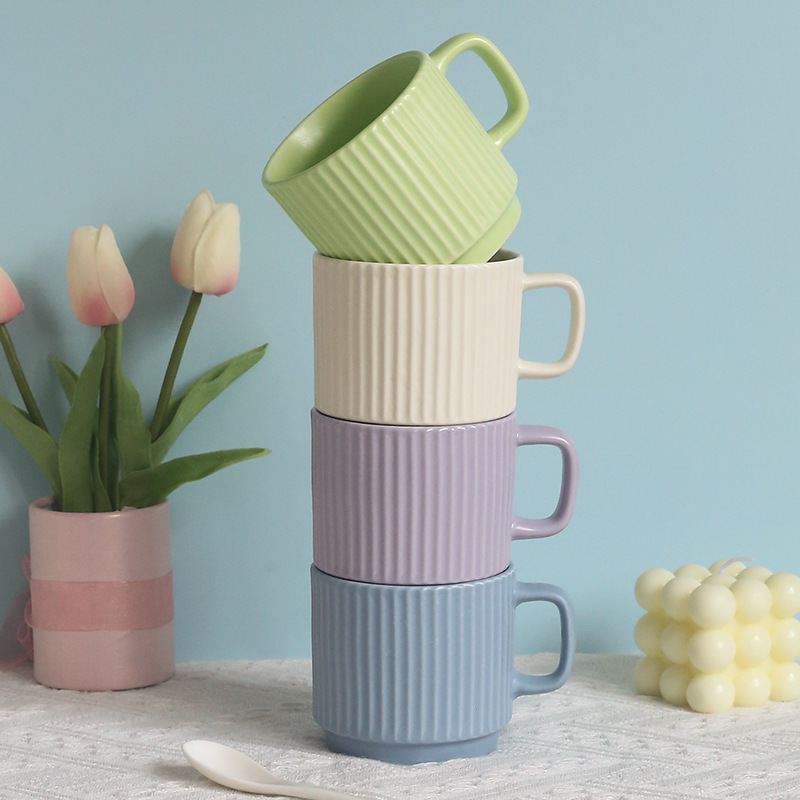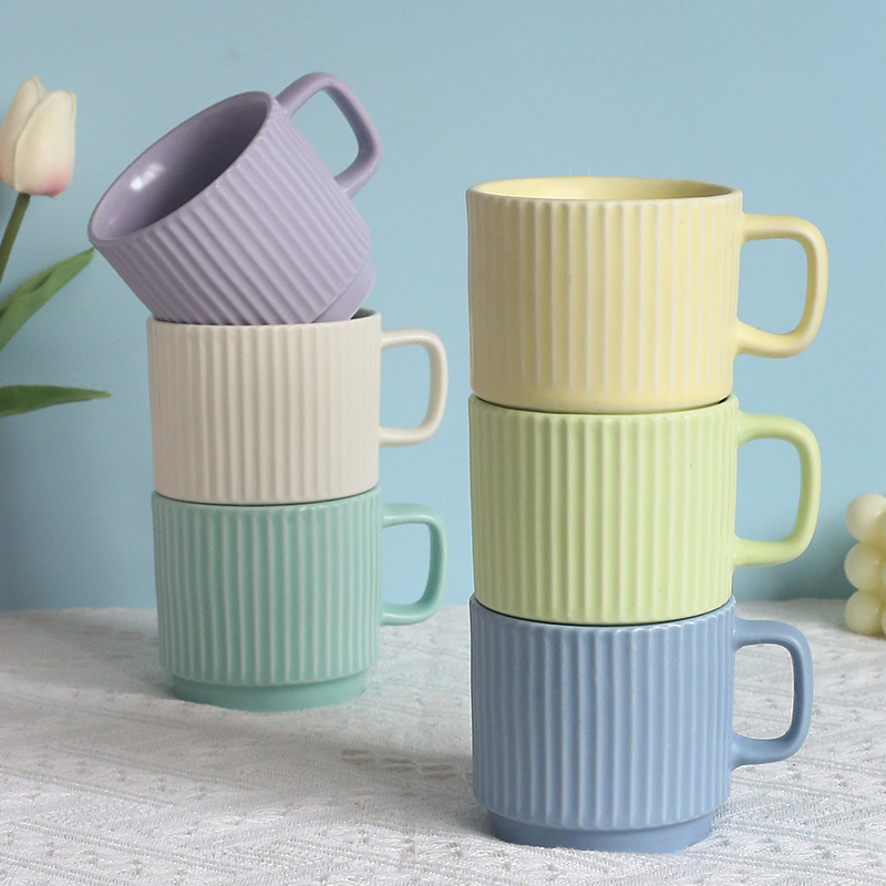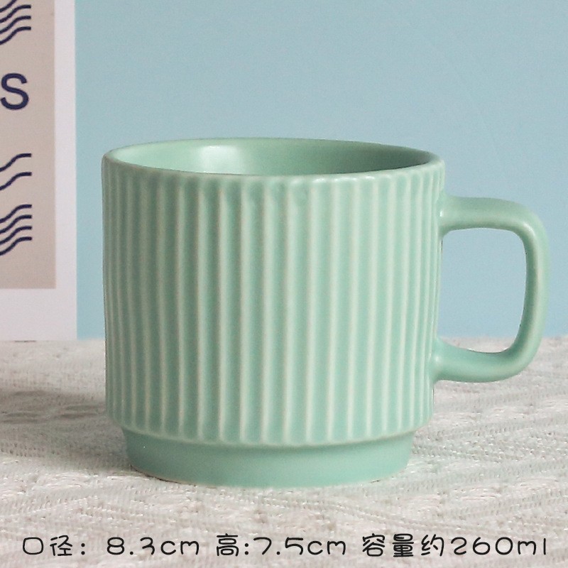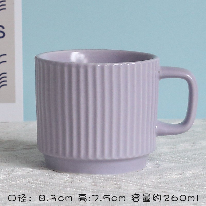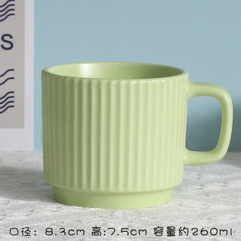 简约马克杯创意女生陶瓷杯学生咖啡杯早餐牛奶杯马卡龙色条纹杯子