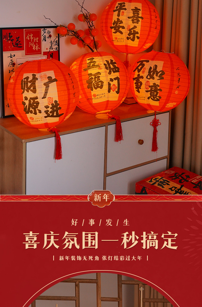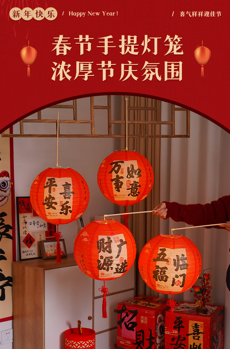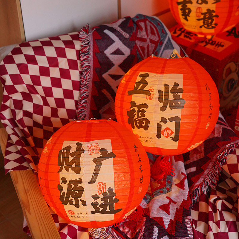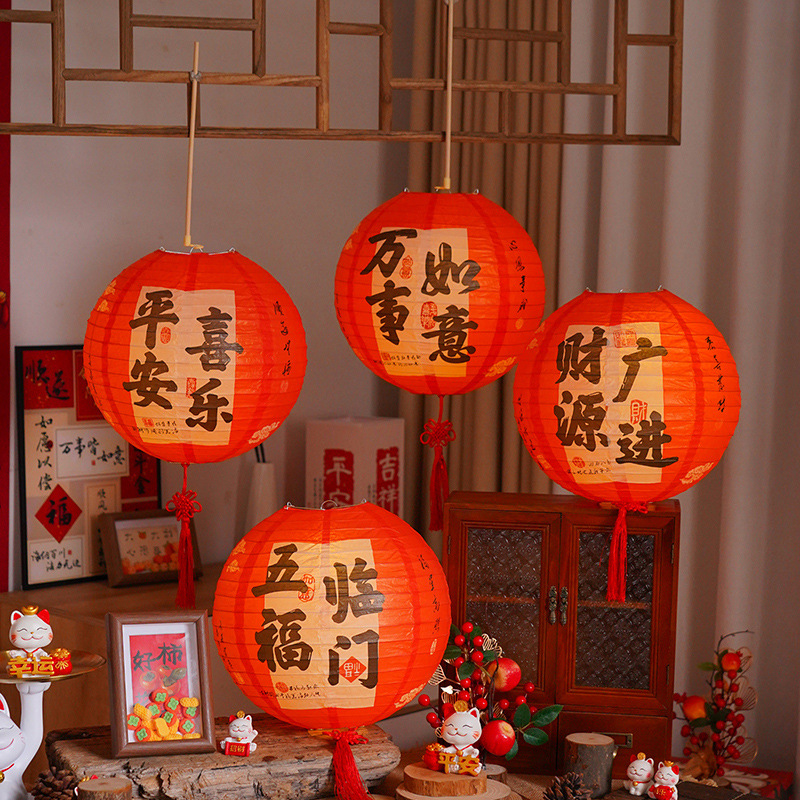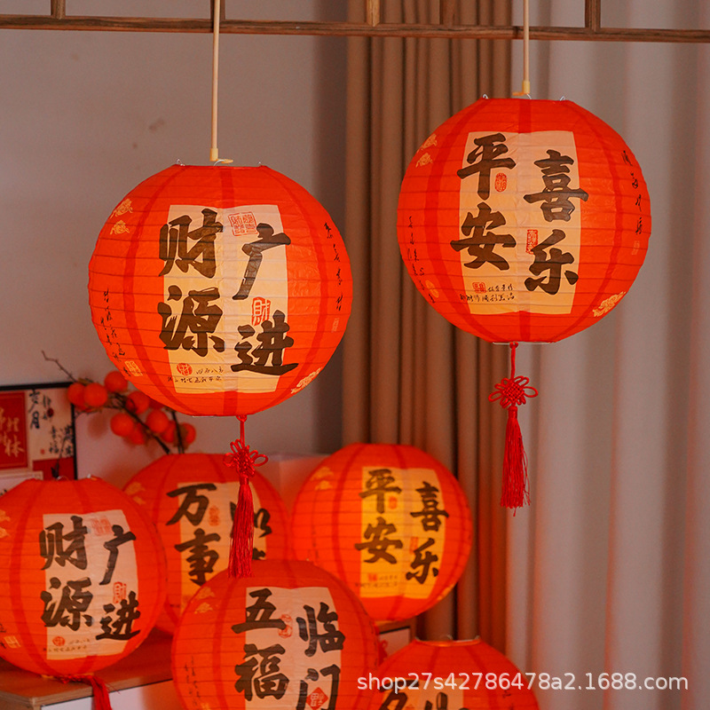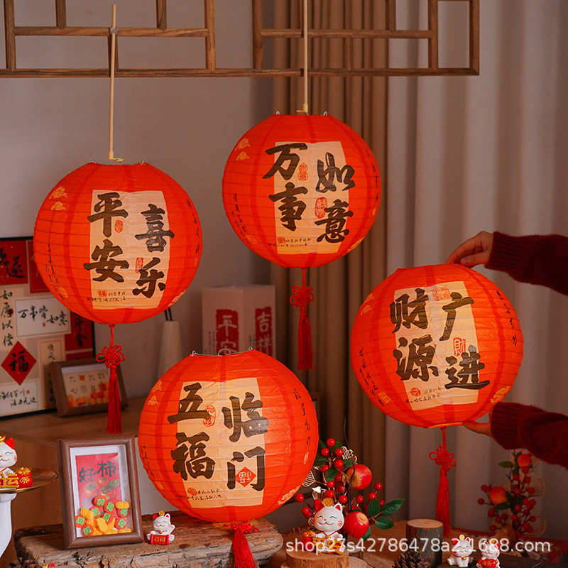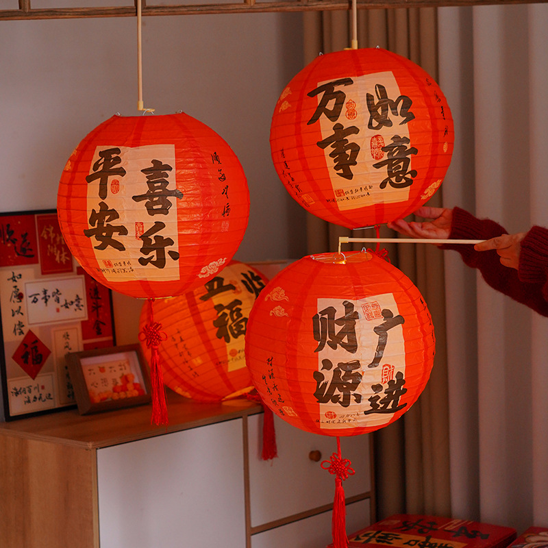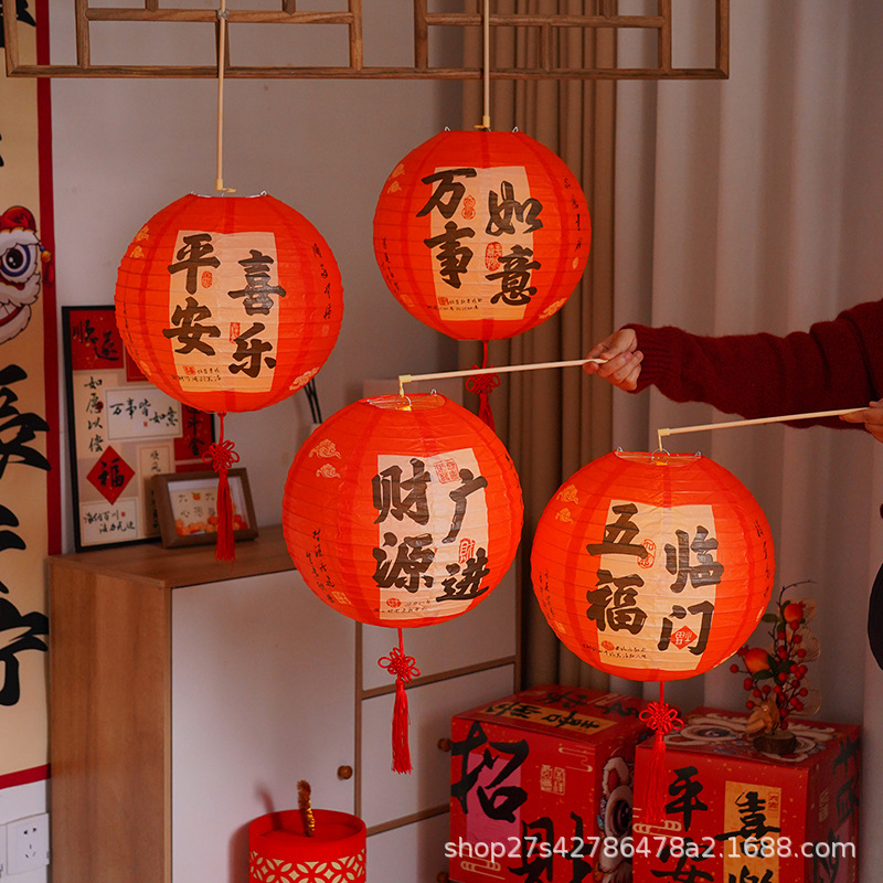 2026新款马年古风氛围发光纸灯笼汉服拍照道具新年装饰灯笼喜庆灯