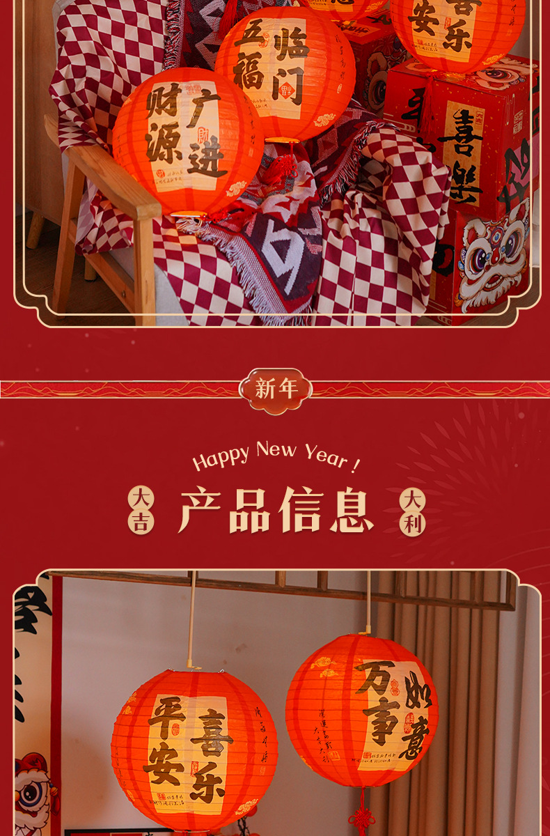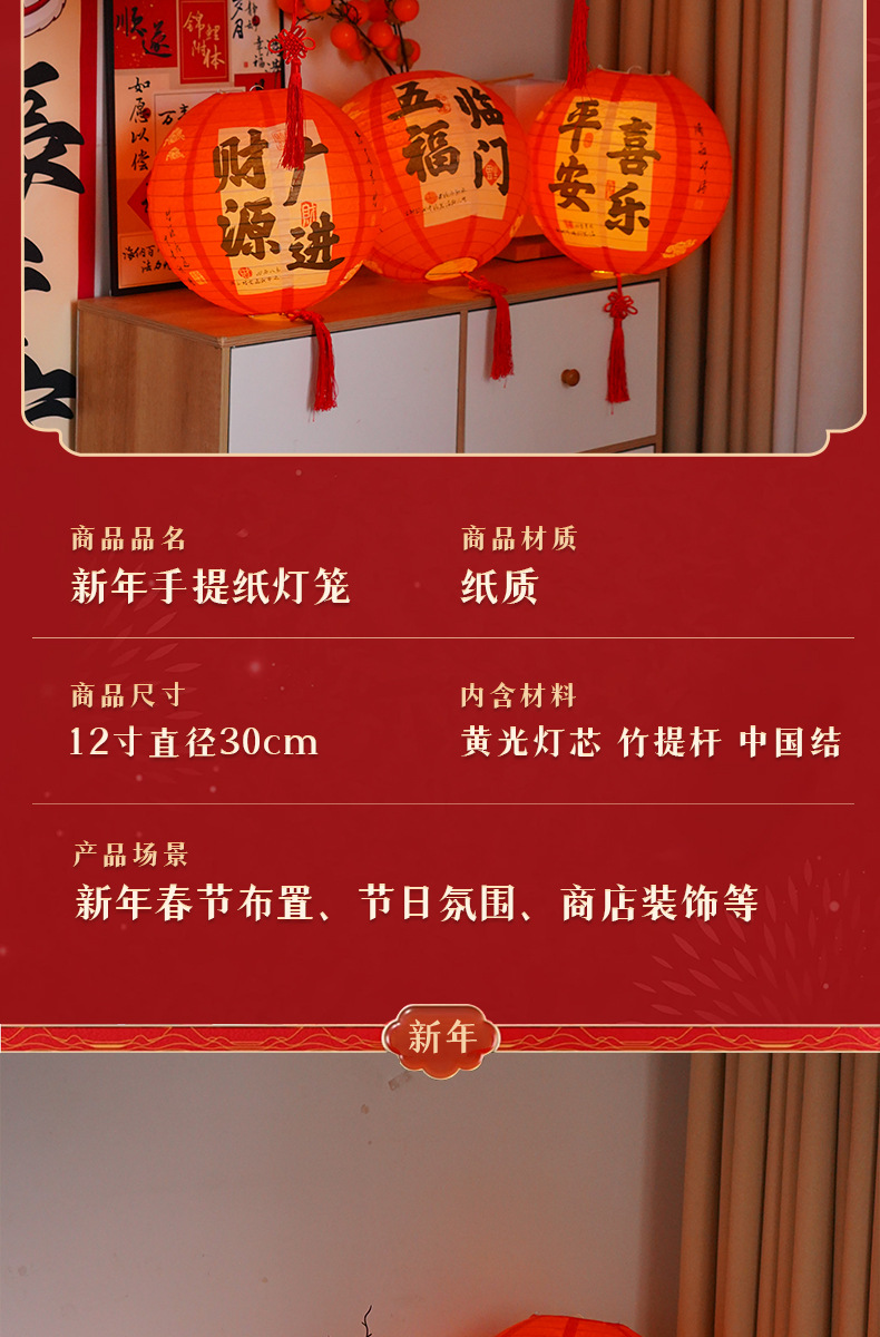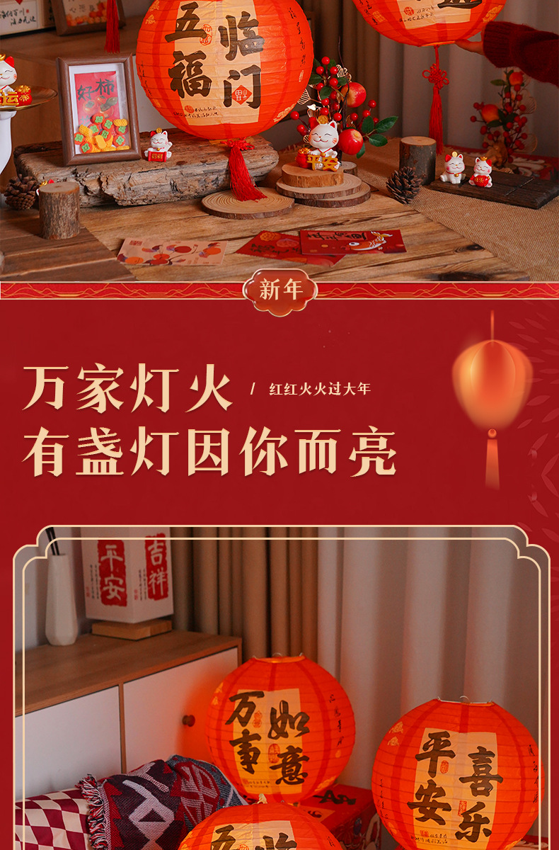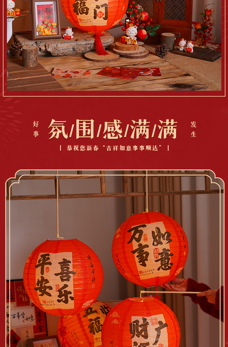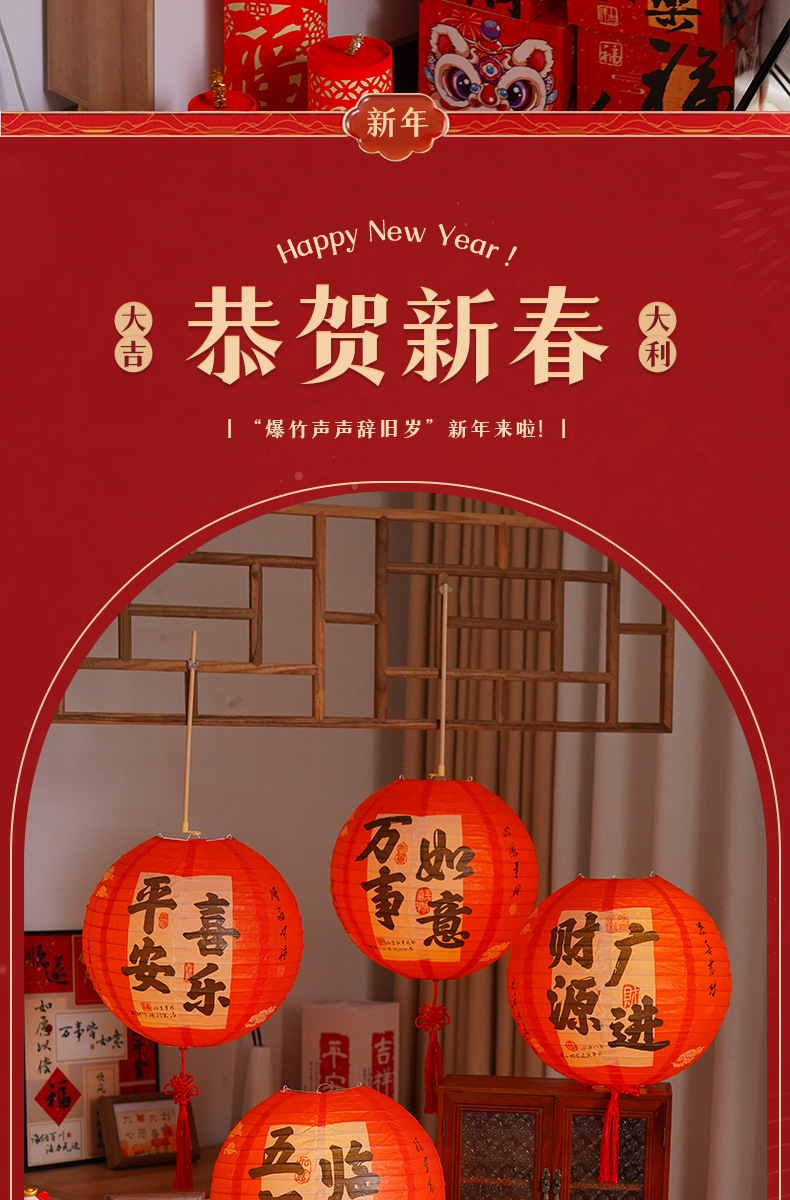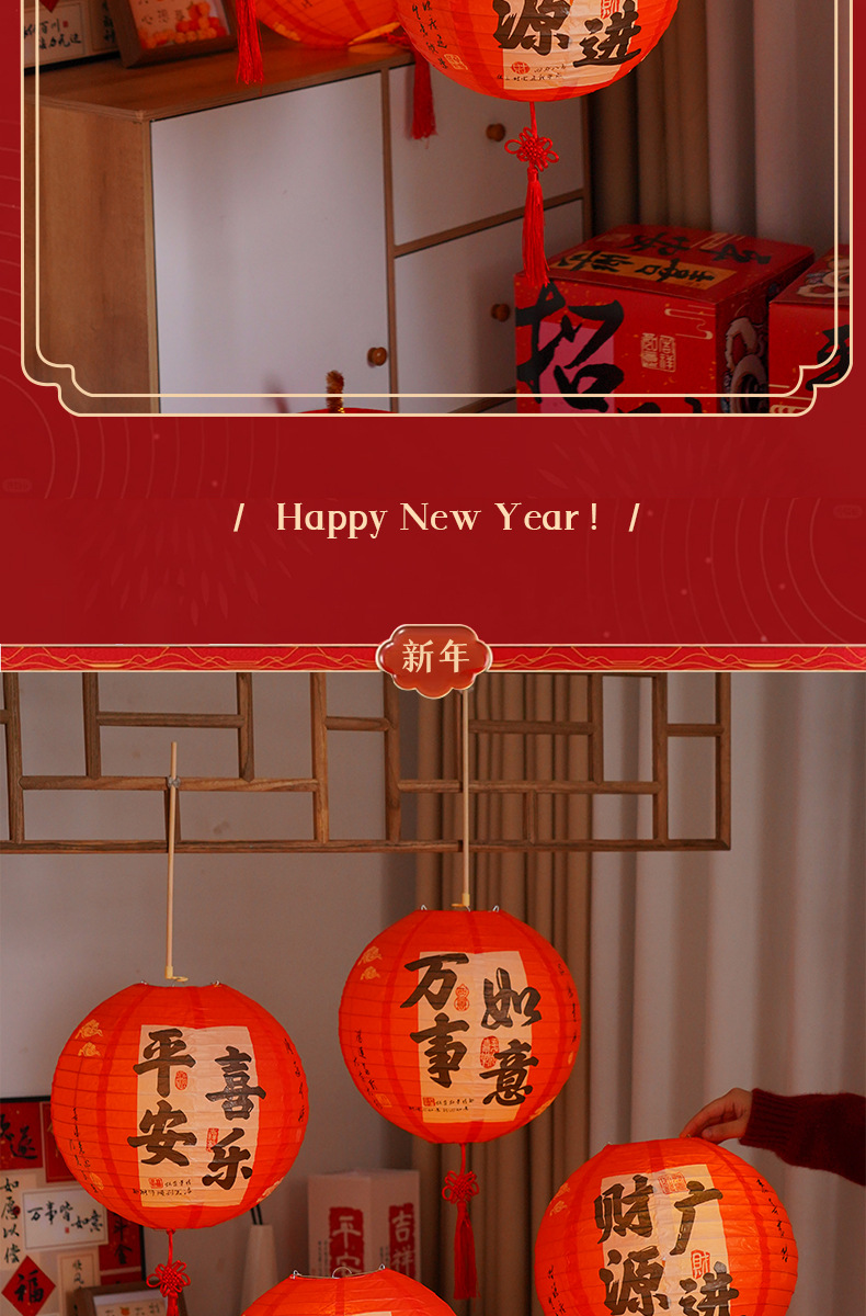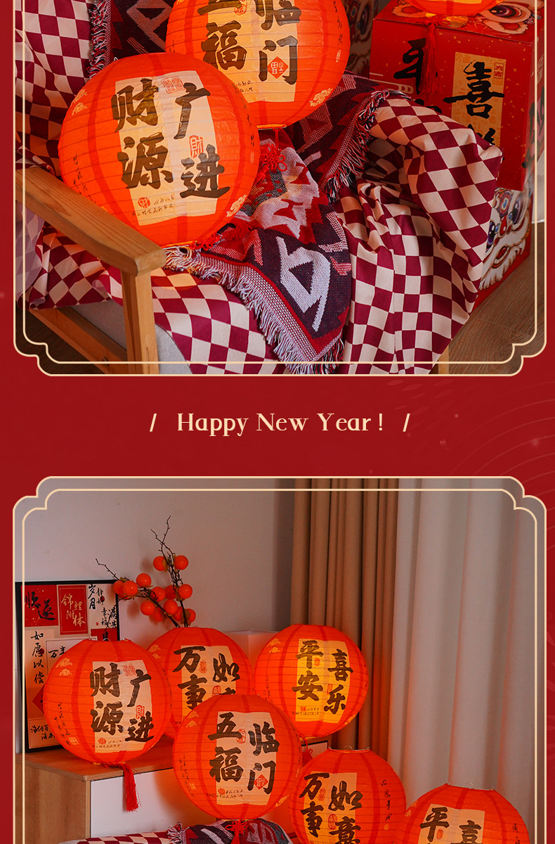 2026新款马年古风氛围发光纸灯笼汉服拍照道具新年装饰灯笼喜庆灯
