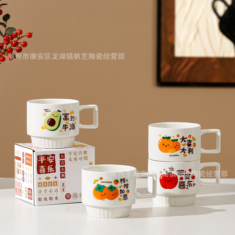 喜乐伴手礼马克杯高颜值水杯伴娘满月周岁结婚店庆回礼陶瓷咖啡杯