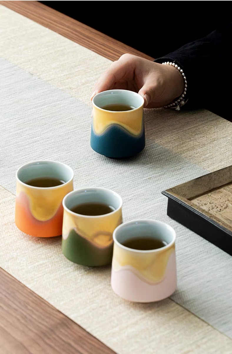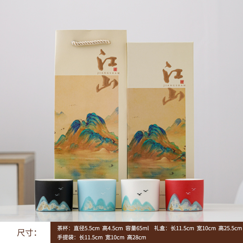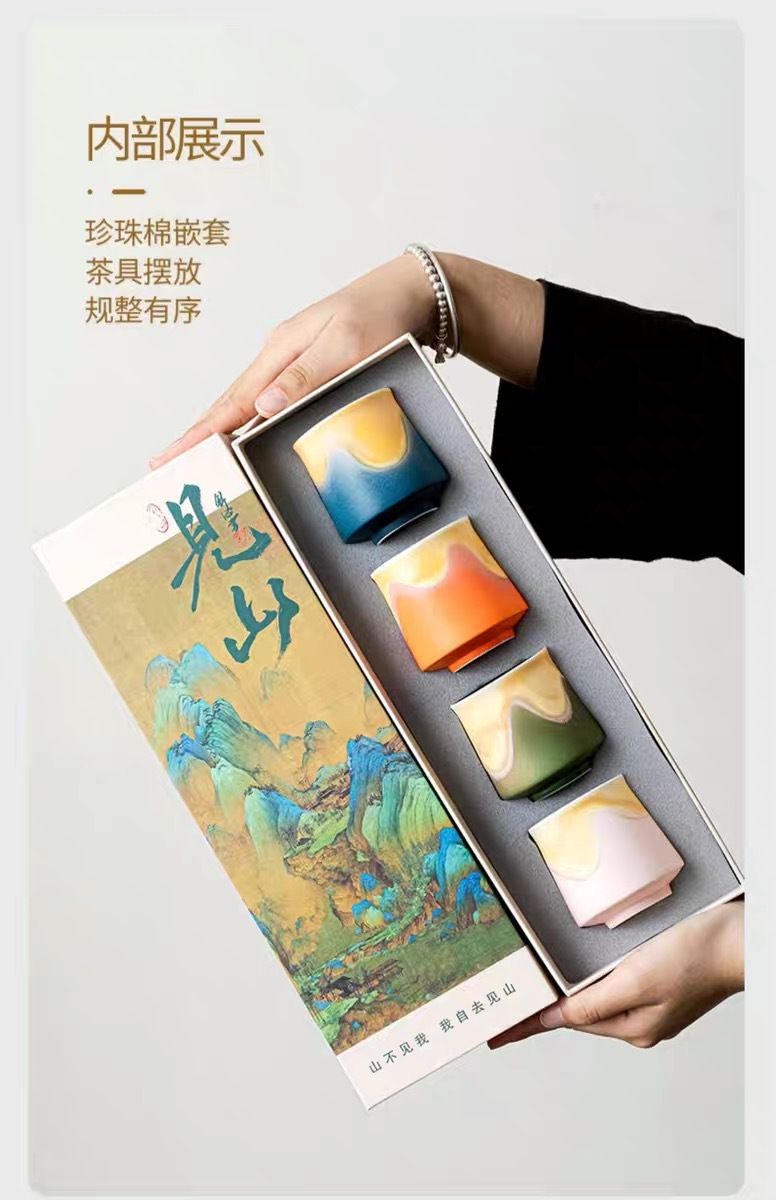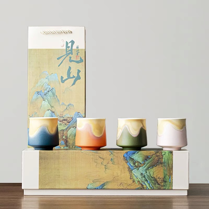 文创陶瓷茶杯套装窑变四色茶杯主人杯商务公司年会节日伴手礼工厂