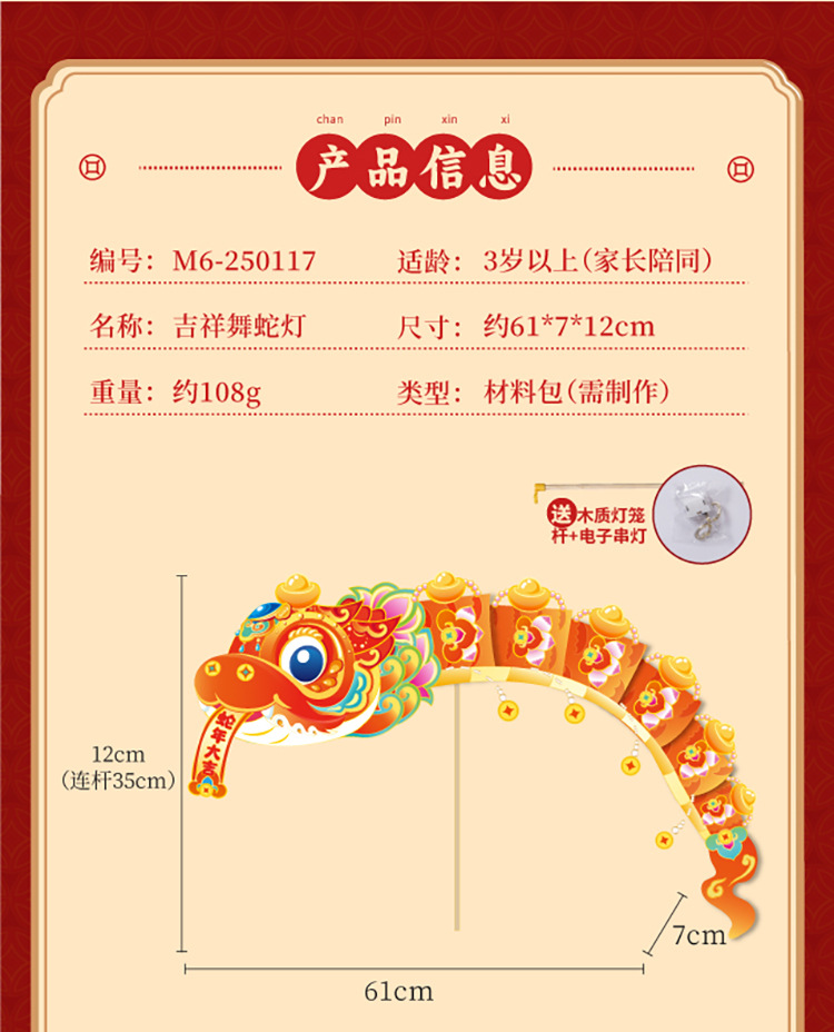 马年新春吉祥舞蛇灯笼手工diy儿童制作材料手提发光国潮花灯批发