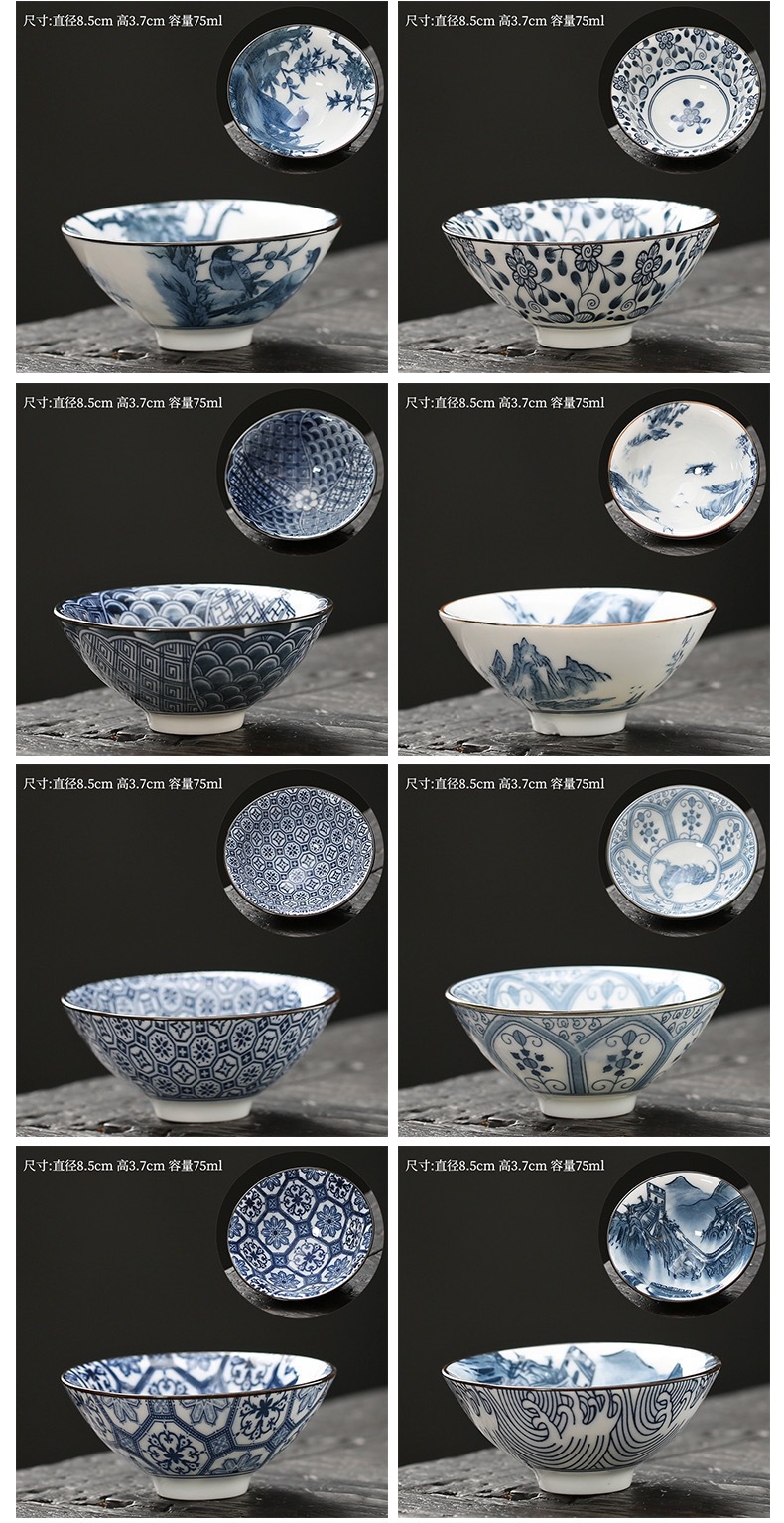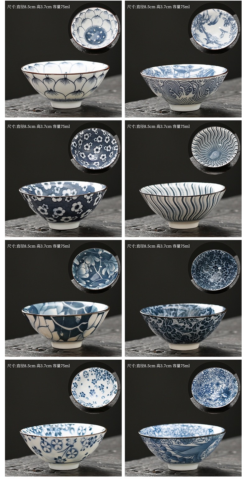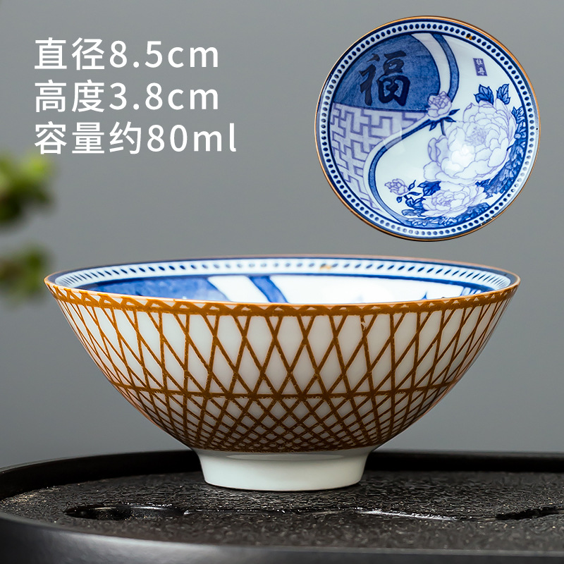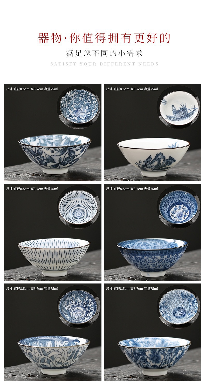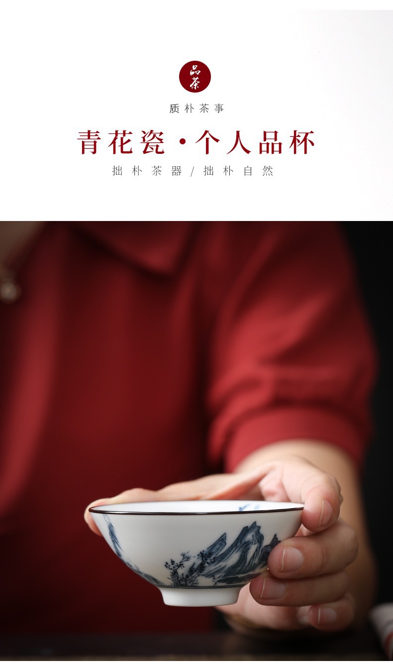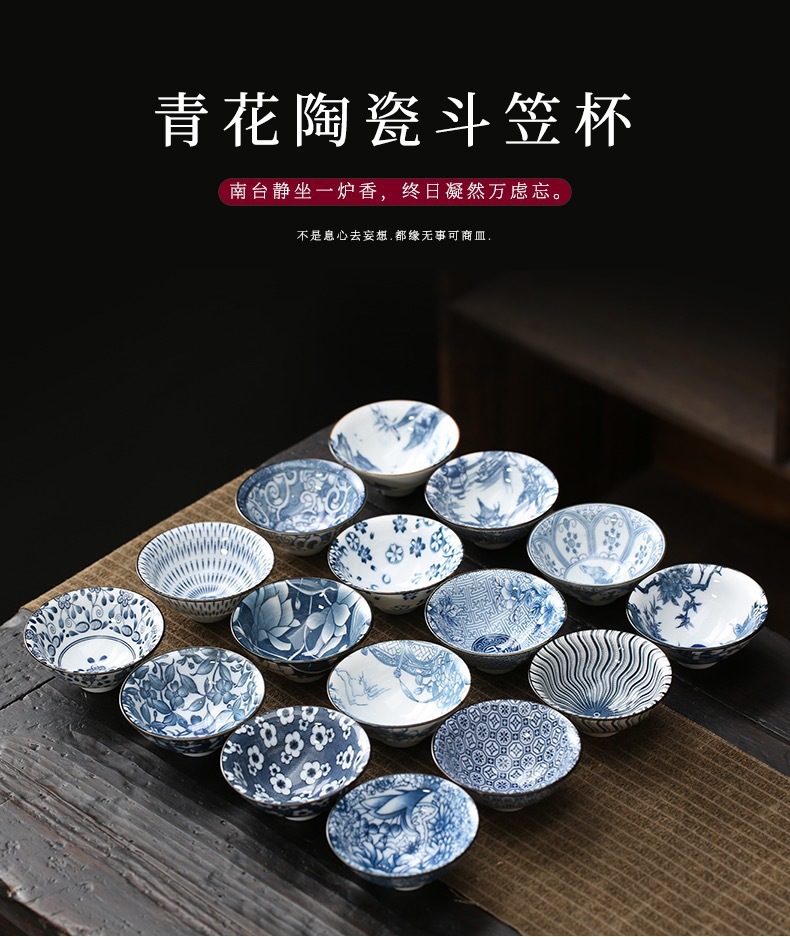 德化陶瓷青花斗笠杯茶室品茗茶杯家用功夫茶杯青花瓷个人茶盏