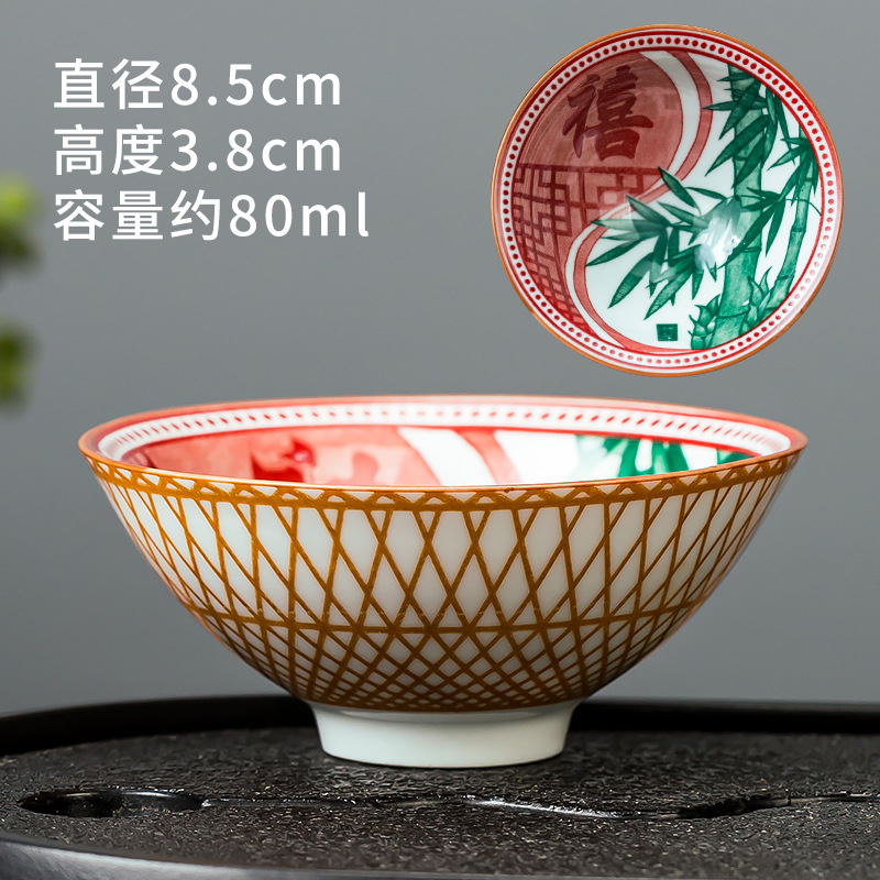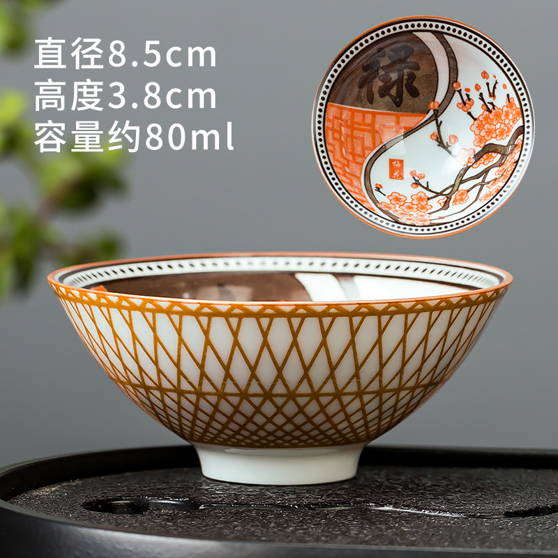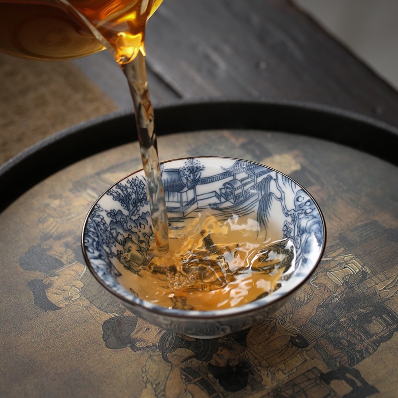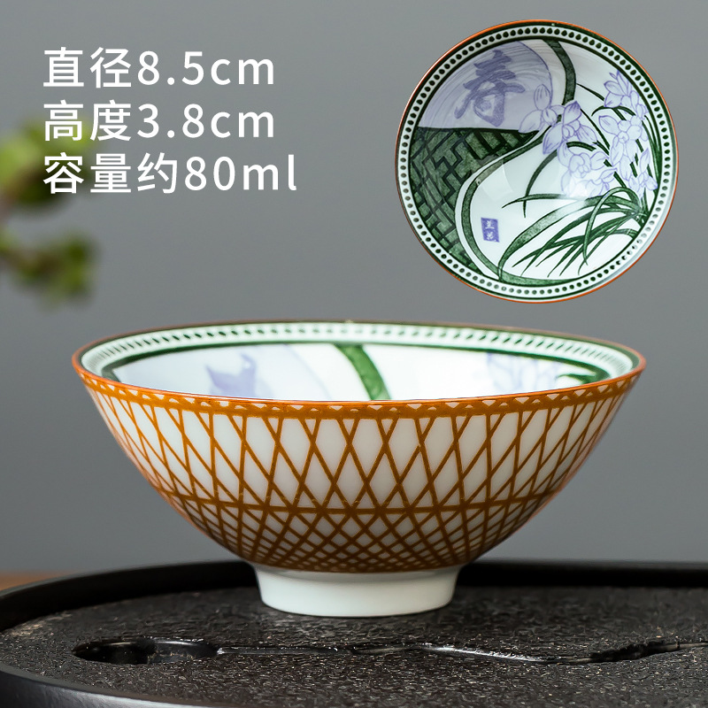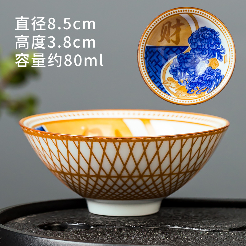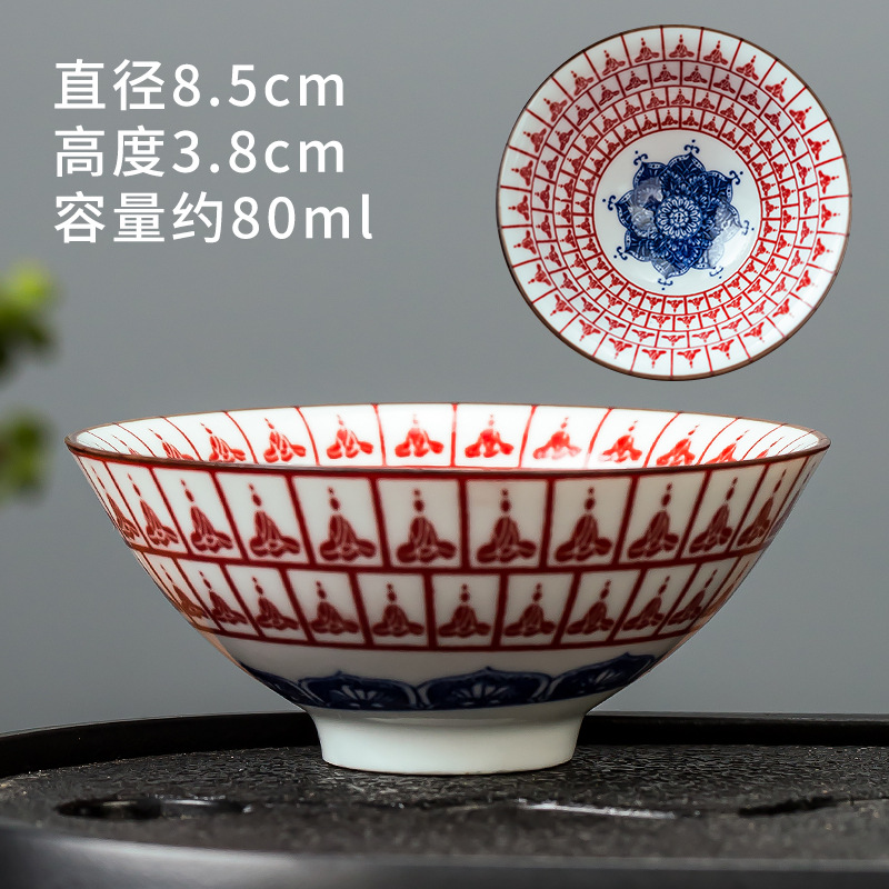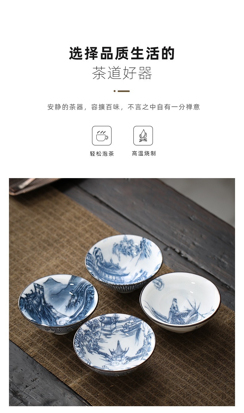 德化陶瓷青花斗笠杯茶室品茗茶杯家用功夫茶杯青花瓷个人茶盏